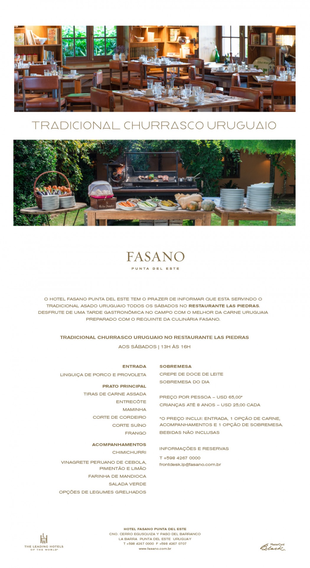 ” Asado Uruguayo” (churrasco típico do Uruguai) no Hotel Fasano, todos os sábados.