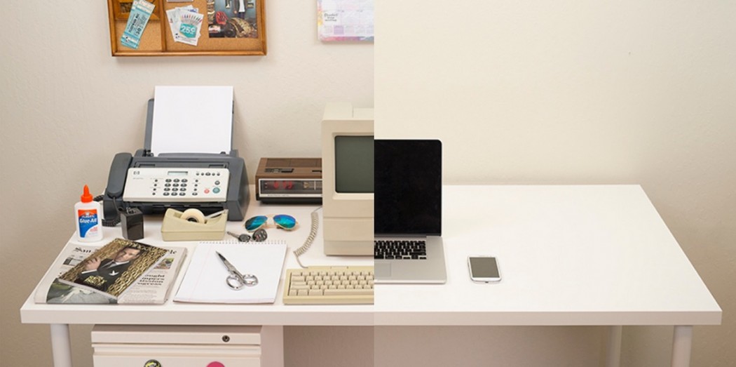 El equipo del laboratorio de innovación de Harvard pudo ilustrar todo esto en su video “La historia del escritorio” de manera muy clara. En el mismo se puede ver cómo todos los objetos que eran comunes en cualquier escritorio en la década de 1970 fueron desapareciendo con los años, hasta terminar en un 2014 con el escritorio vacío.