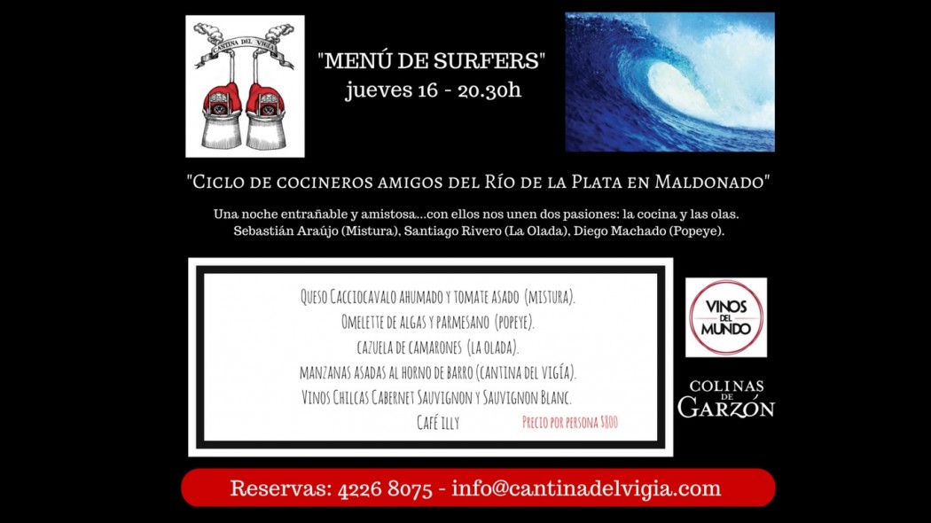 El jueves 16 los esperamos para compartir una noche entrañable entre amigos: “MENÚ DE SURFERS”. El #ciclodecocineros continúa!