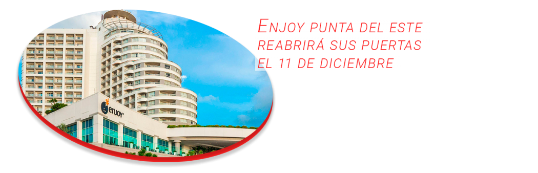 Enjoy Casino & Resort anunció que el próximo viernes 11 de diciembre reabrirá sus puertas luego de 8 meses de inactividad dada la emergencia sanitaria decretada en Uruguay y el mundo.