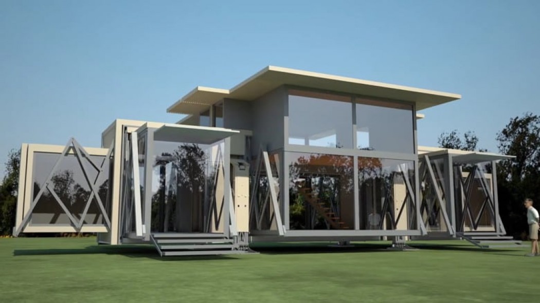 Cada casa plegable se expande —gracias a estos brazos articulados— tres veces su tamaño cuando está desplegada. De esta forma, podremos transportan una casa de 50 metros en un trailer y tener una casa de 150 metros en tan solo unos pocos minutos. Todo son ventajas.