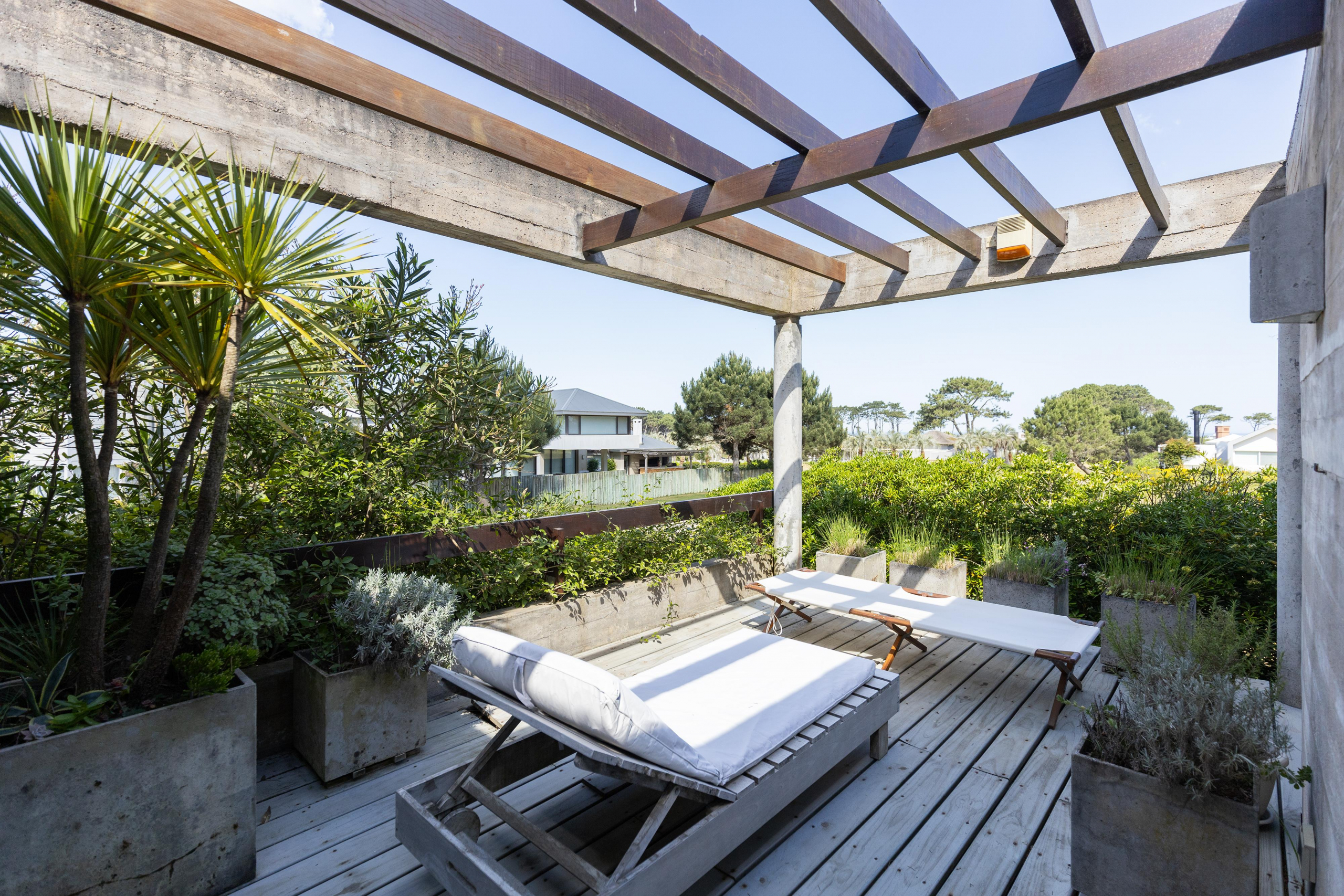 Patio/Jardín exterior con parrillero, más dos suites en dos niveles con acceso independiente. La planta alta cuenta con destacada vista al mar y solarium.