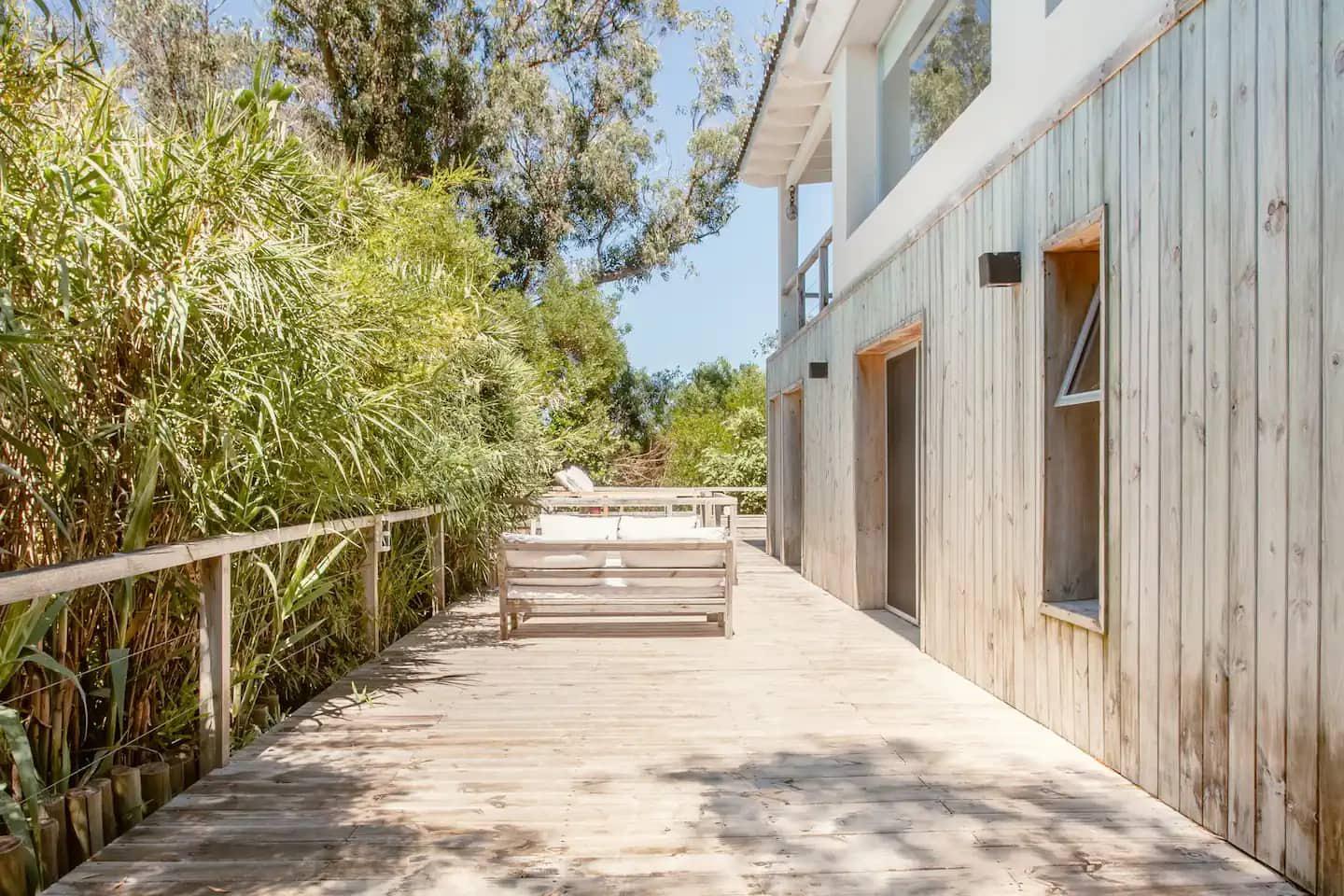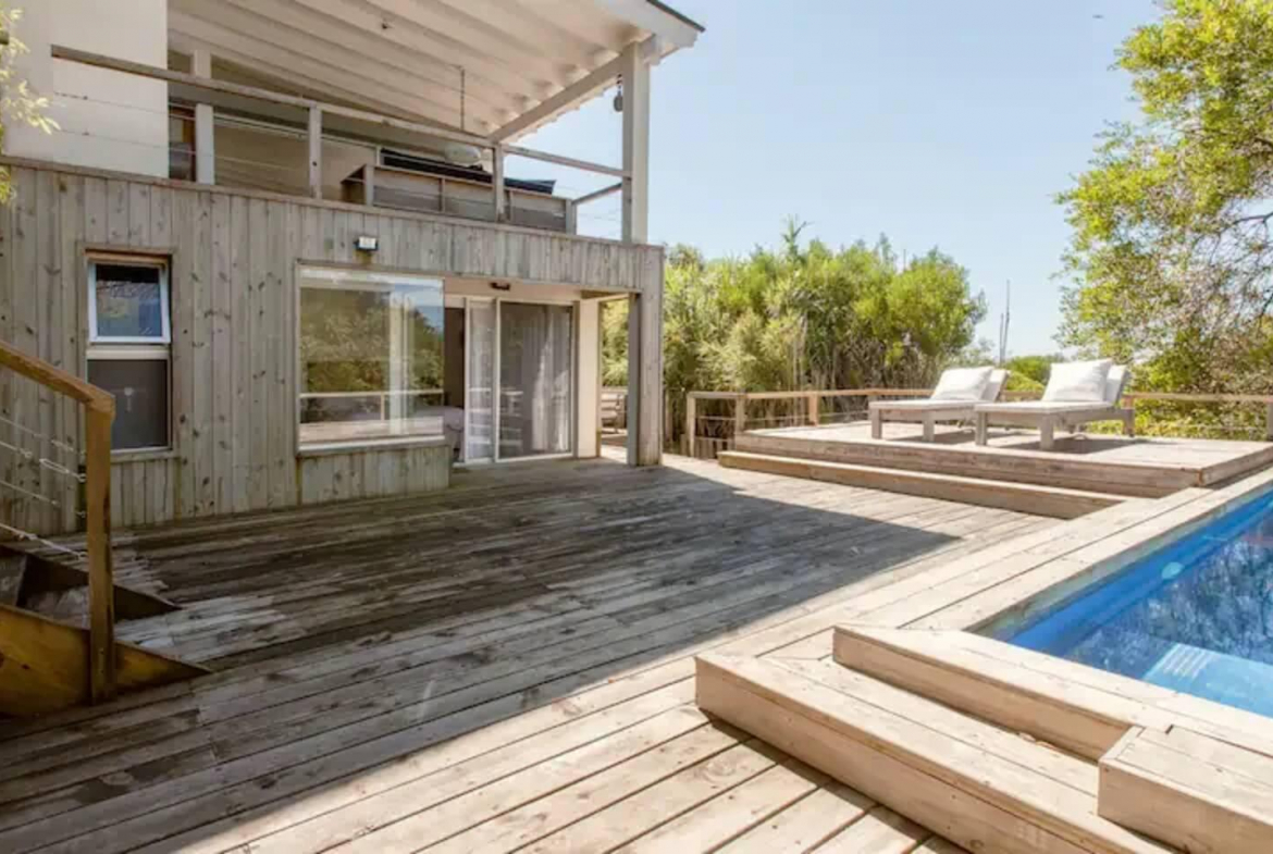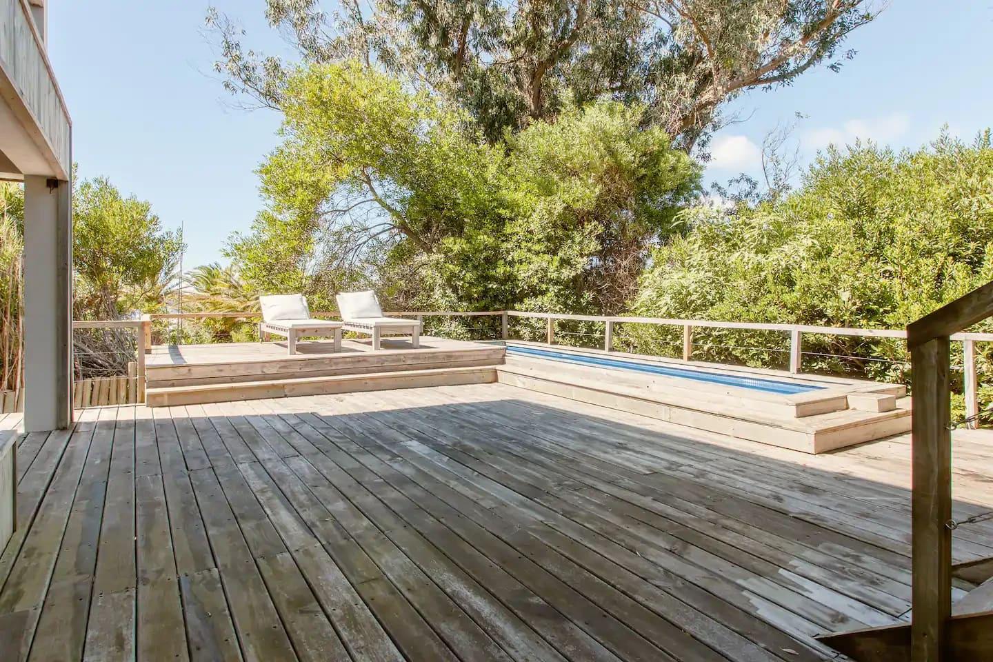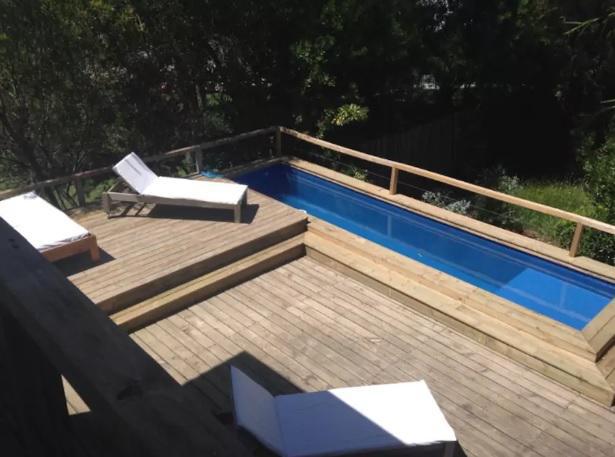 Amplio deck con zona de solarium junto a la piscina, dependencia de servicio con baño completo.