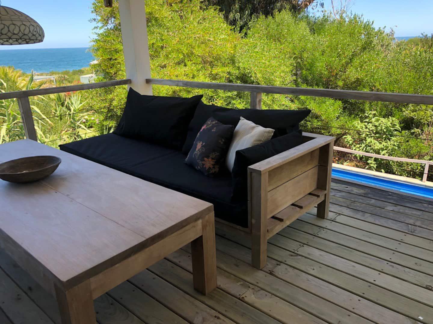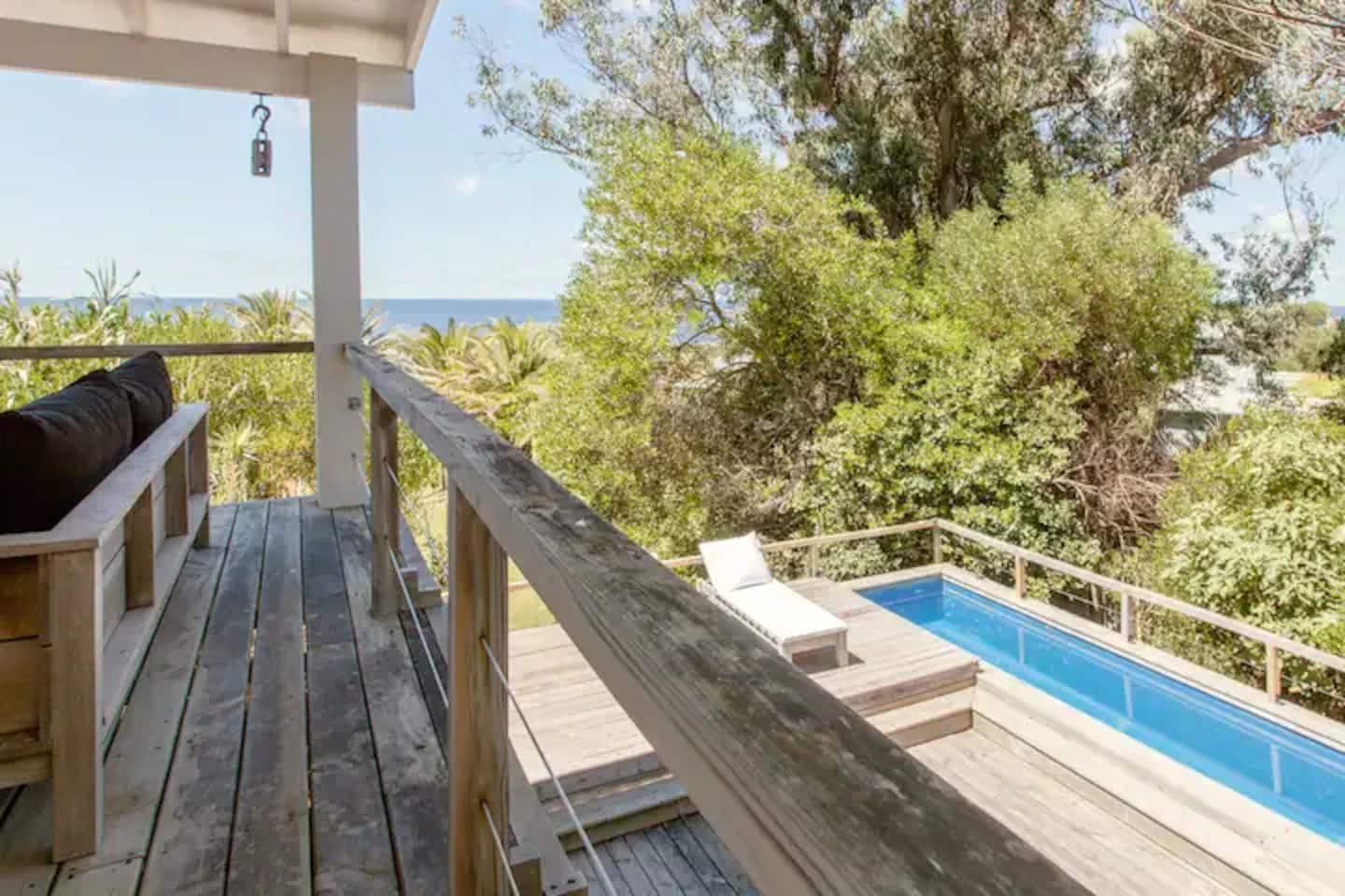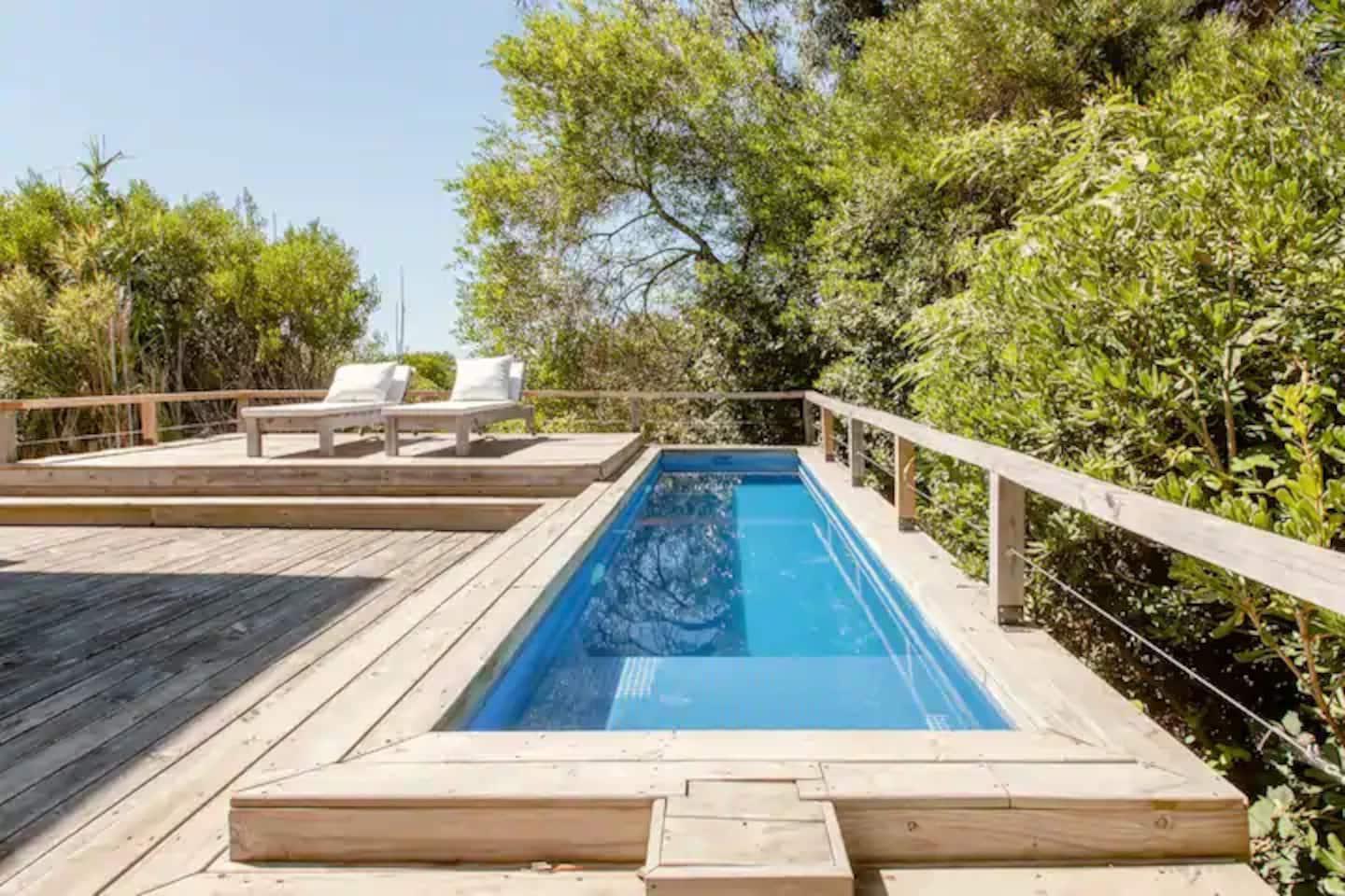 Amplio deck con zona de solarium junto a la piscina, dependencia de servicio con baño completo.