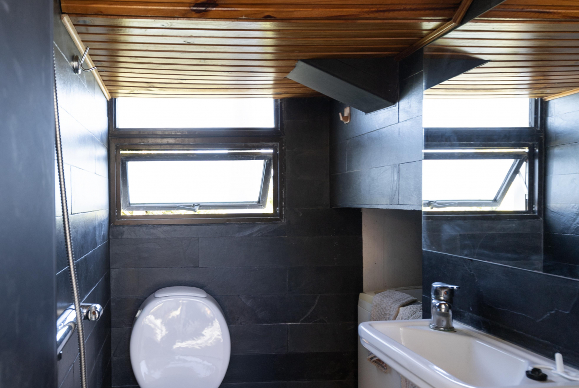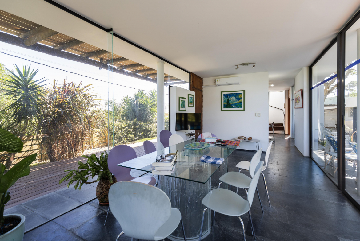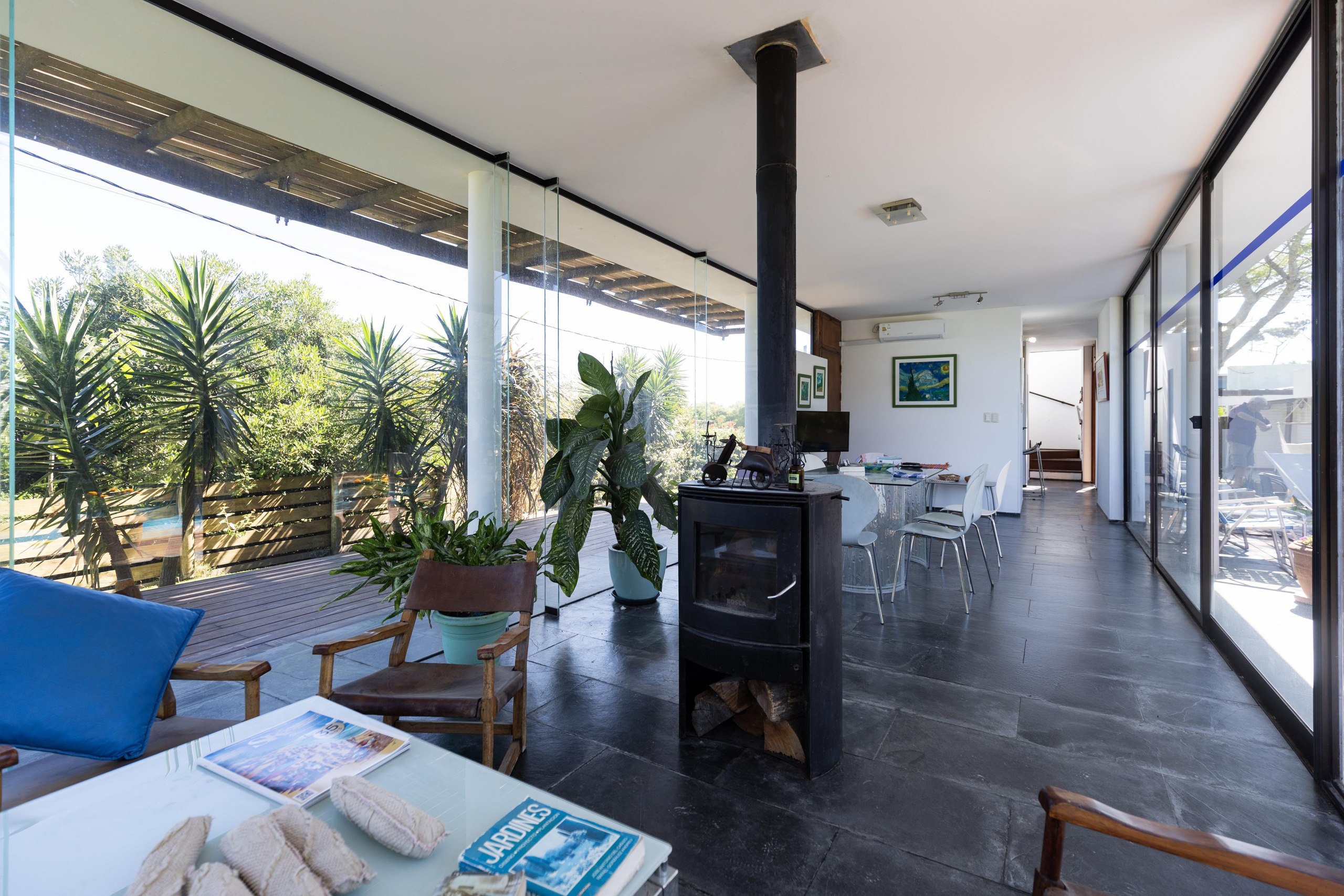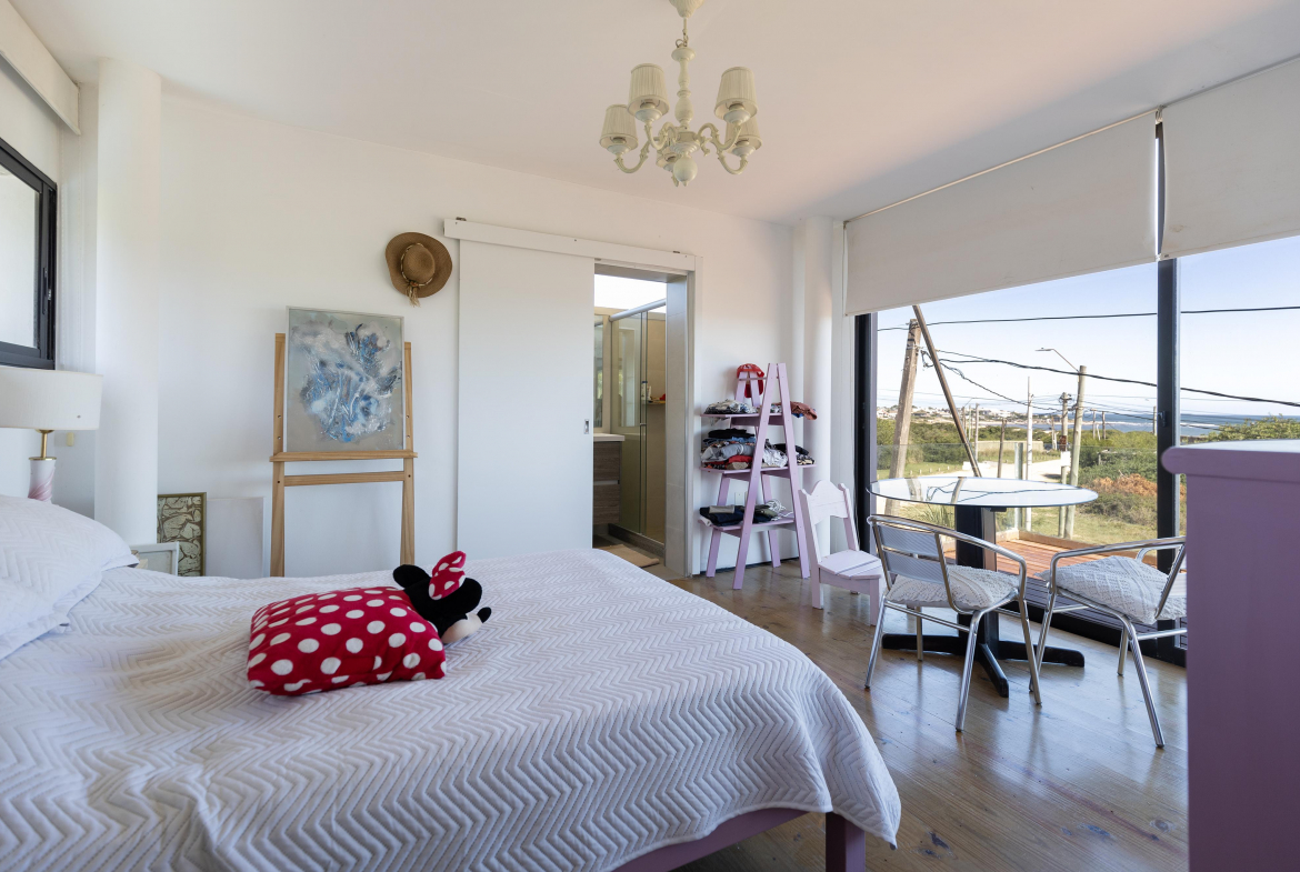 Casa moderna con diseño arquitectónico “tipo pecera” , rodeada de ventanales de vidrio que permiten una vista panorámica al entorno natural y al mar. Cuenta con tres dormitorios amplios, dos de ellos en suite en planta alta , cada uno con ventanales de piso a techo que ofrecen vistas espectaculares al océano.