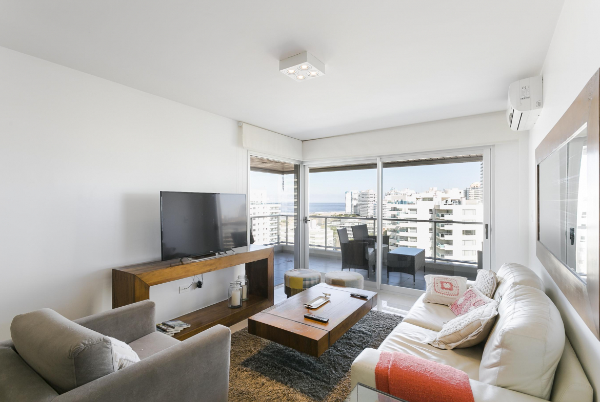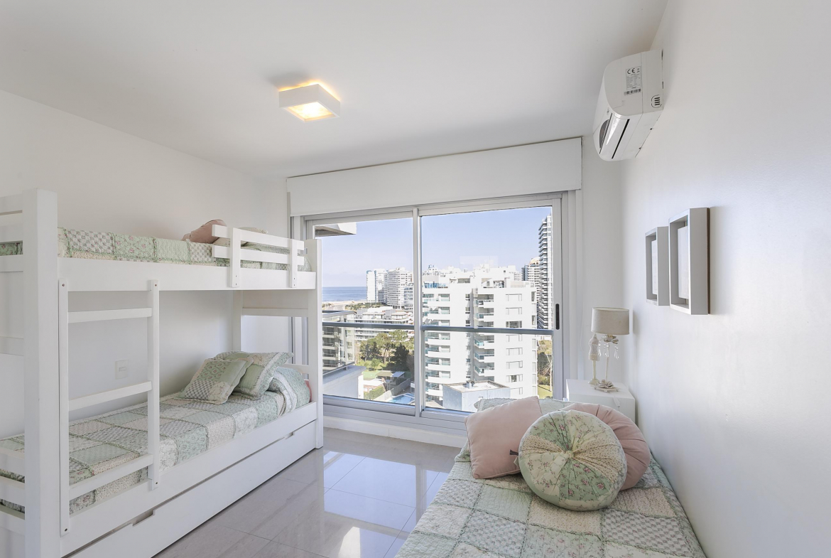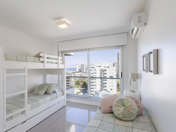 La playa muy cerca y todos los servicios del edificio para que tus vacaciones sean perfectas…Apartamento de dos dormitorios, uno de ellos en suite. Living comedor con cocina integrada, terraza amplia, garage.