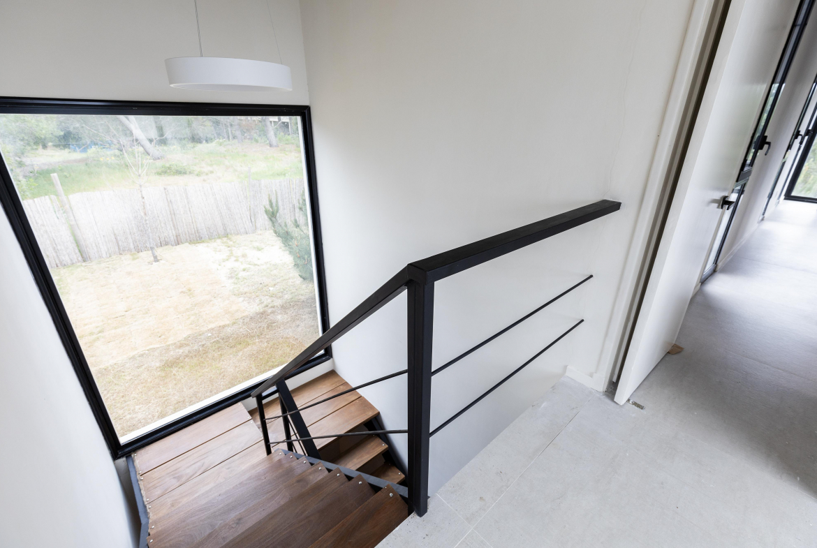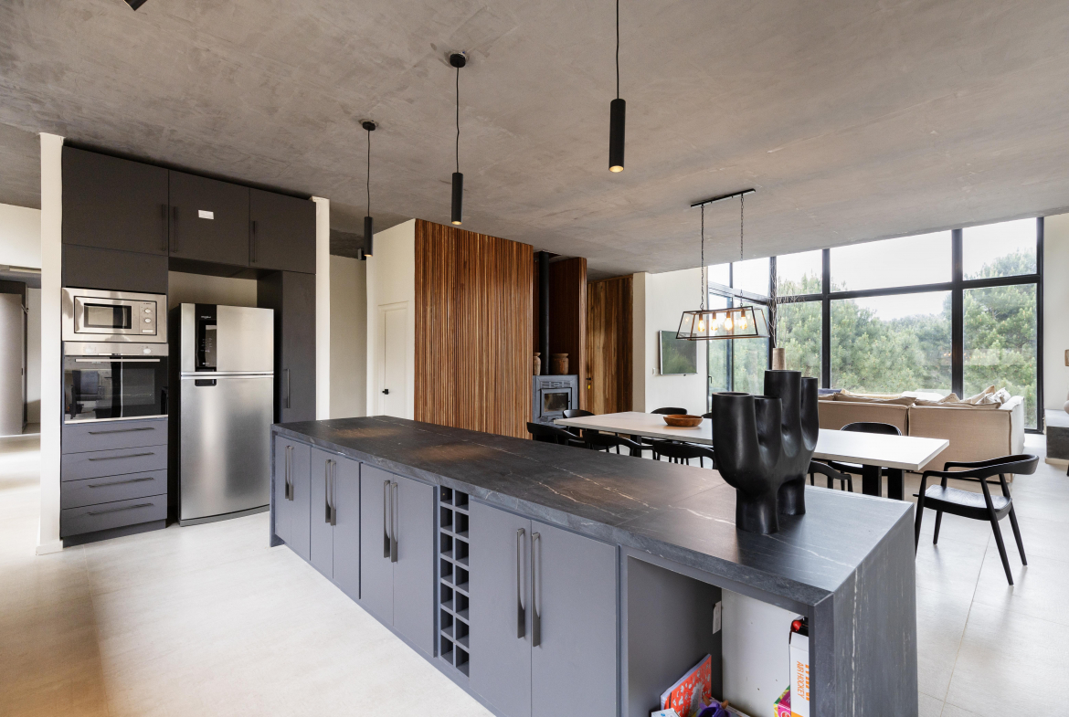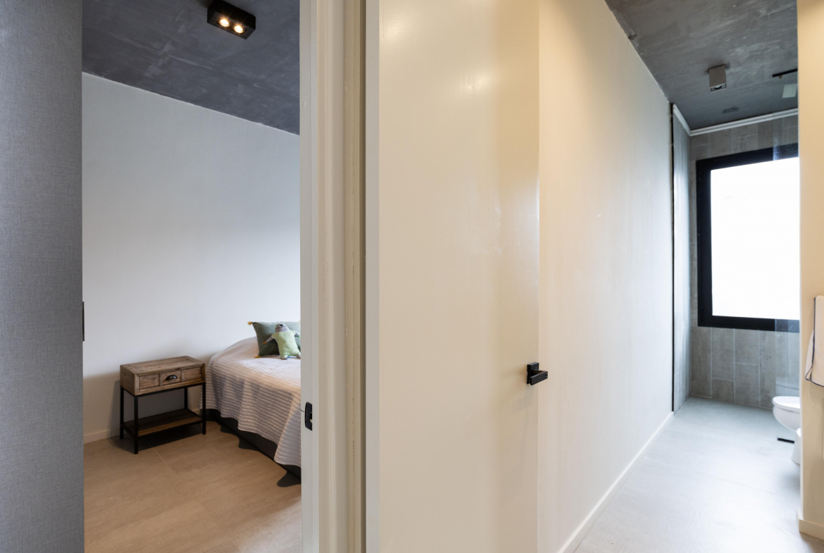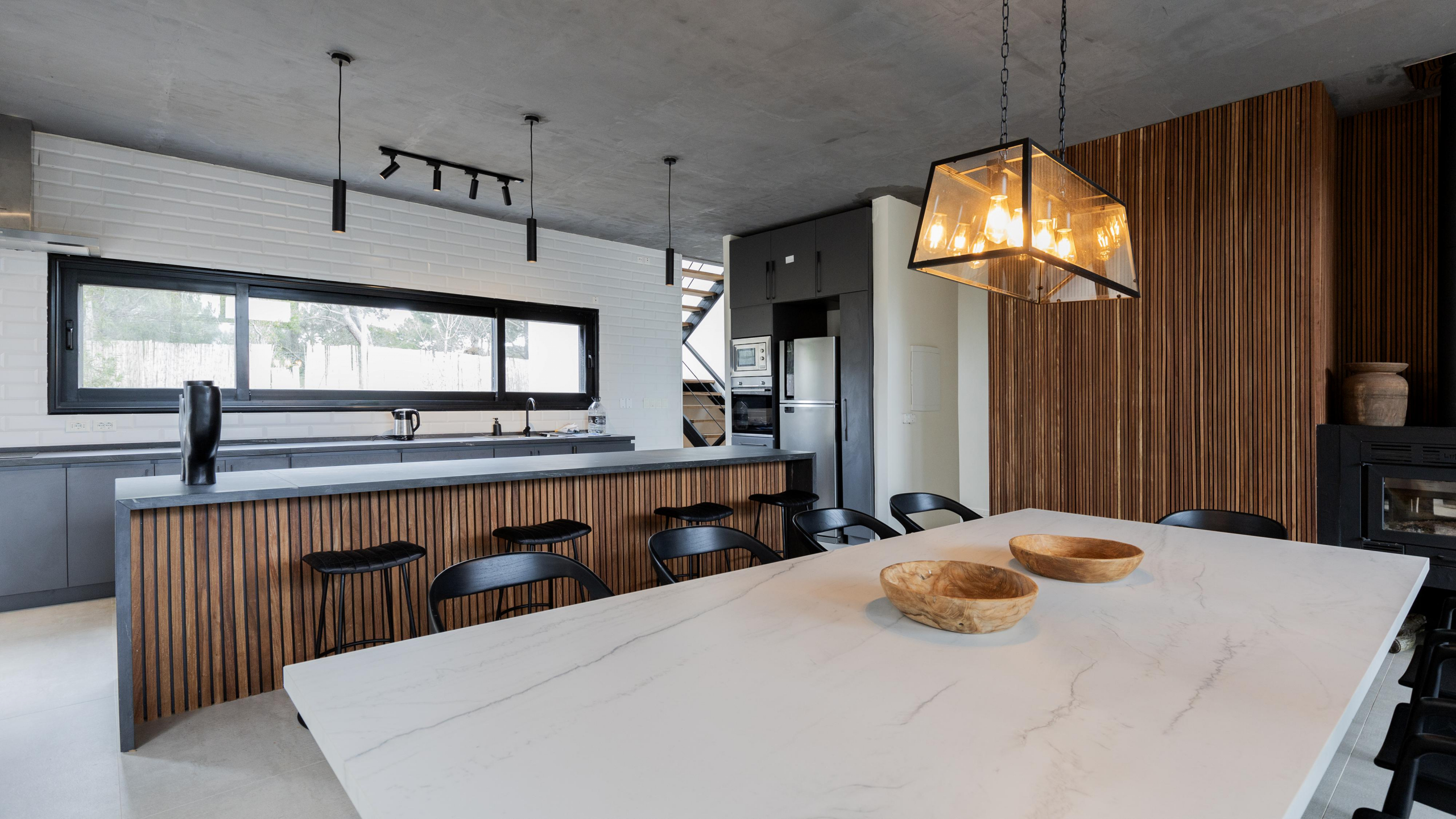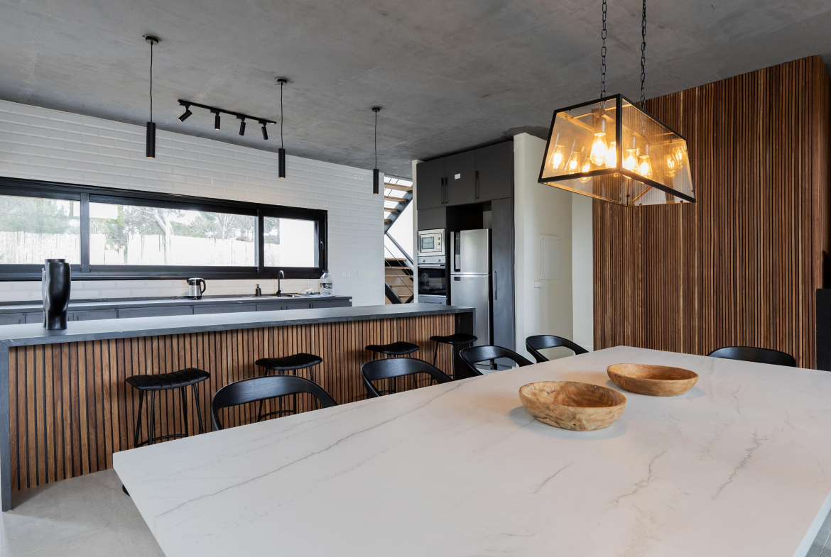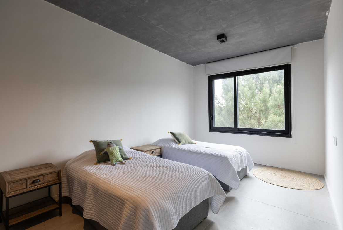 Desarrollada en 3 plantas, la central, ubica al amplio living comedor cocina, con excelente iluminación natural, y dos dormitorios en semi-suite