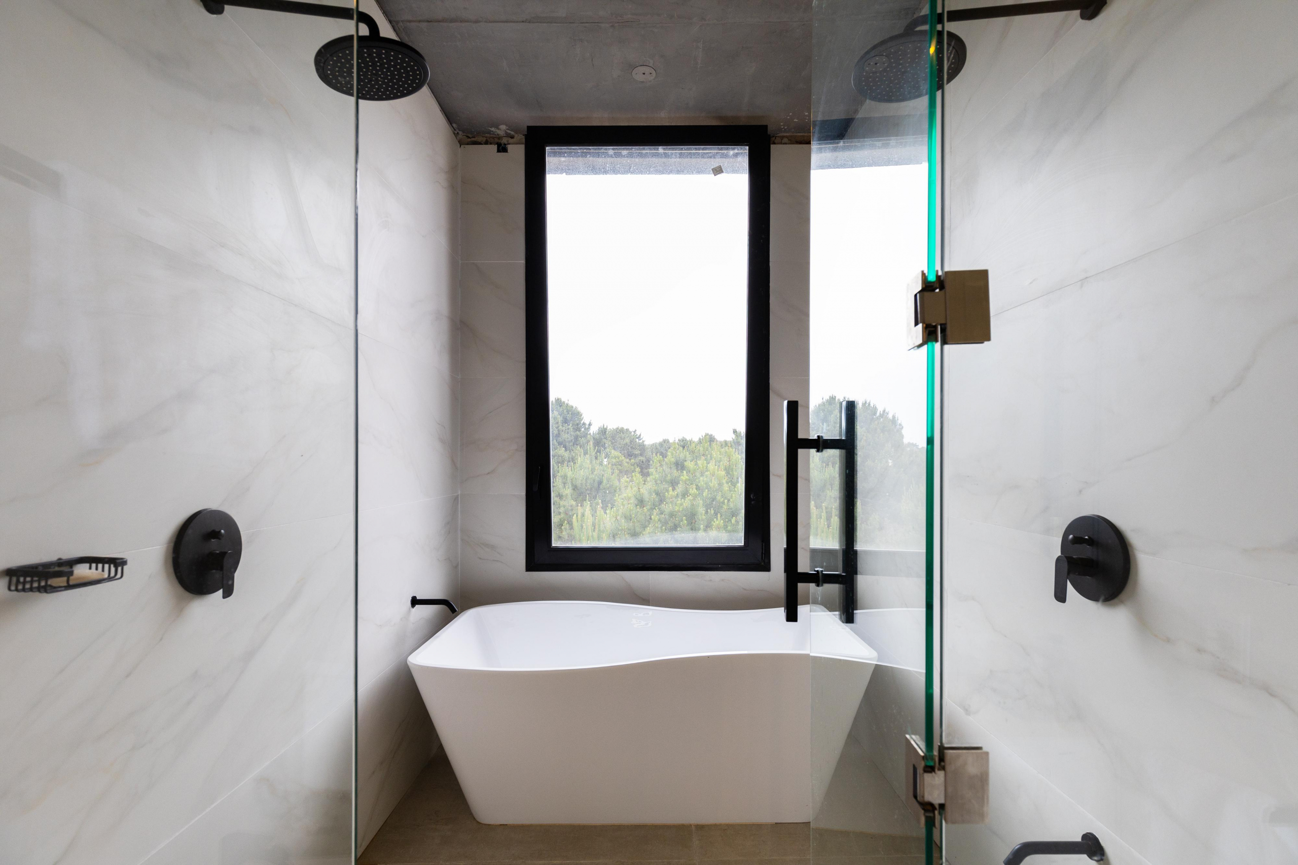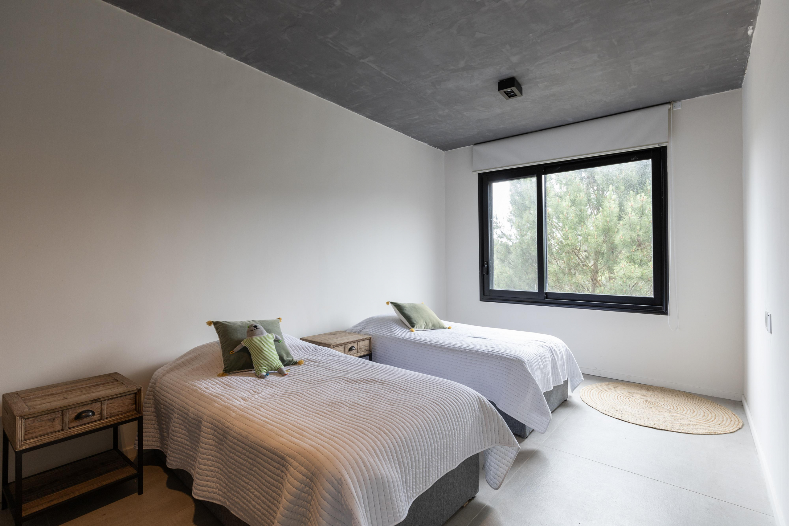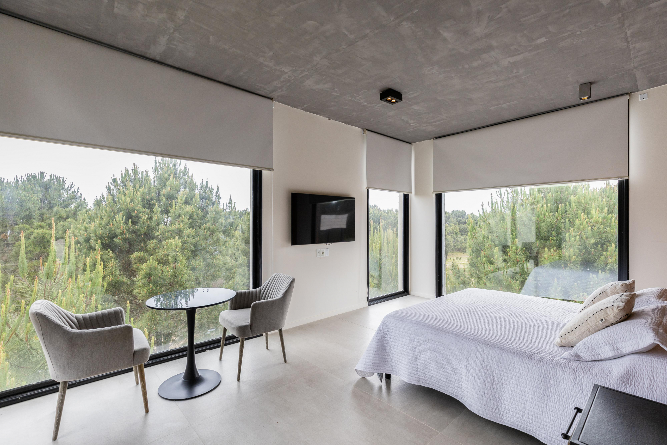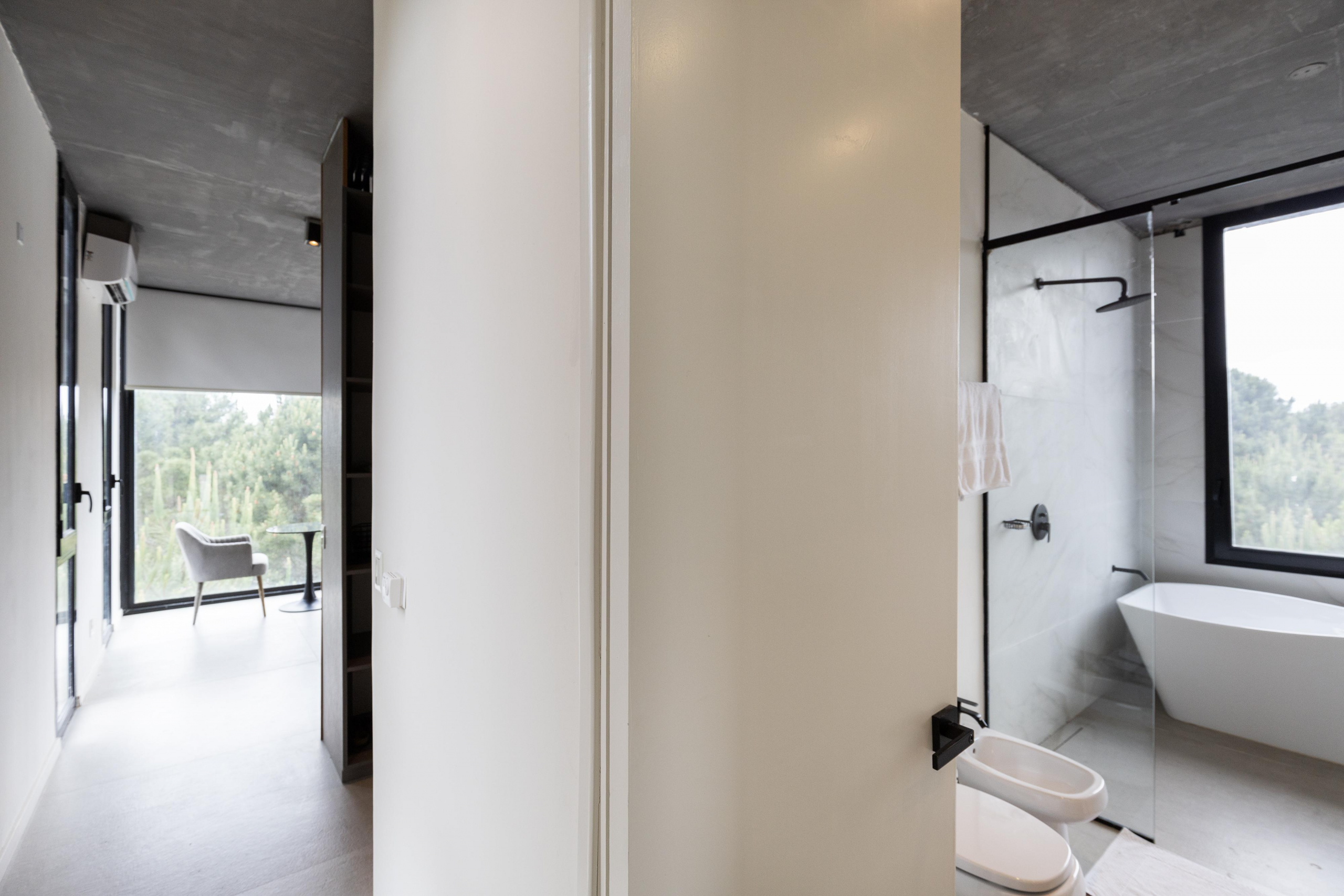 En planta alta, la master suite con su vestidor y terraza propia con linda vista a todos los pinos que rodean a la propiedad