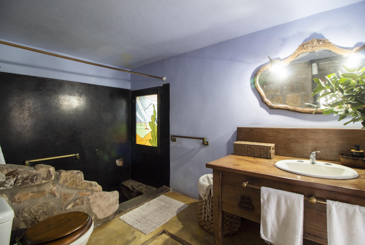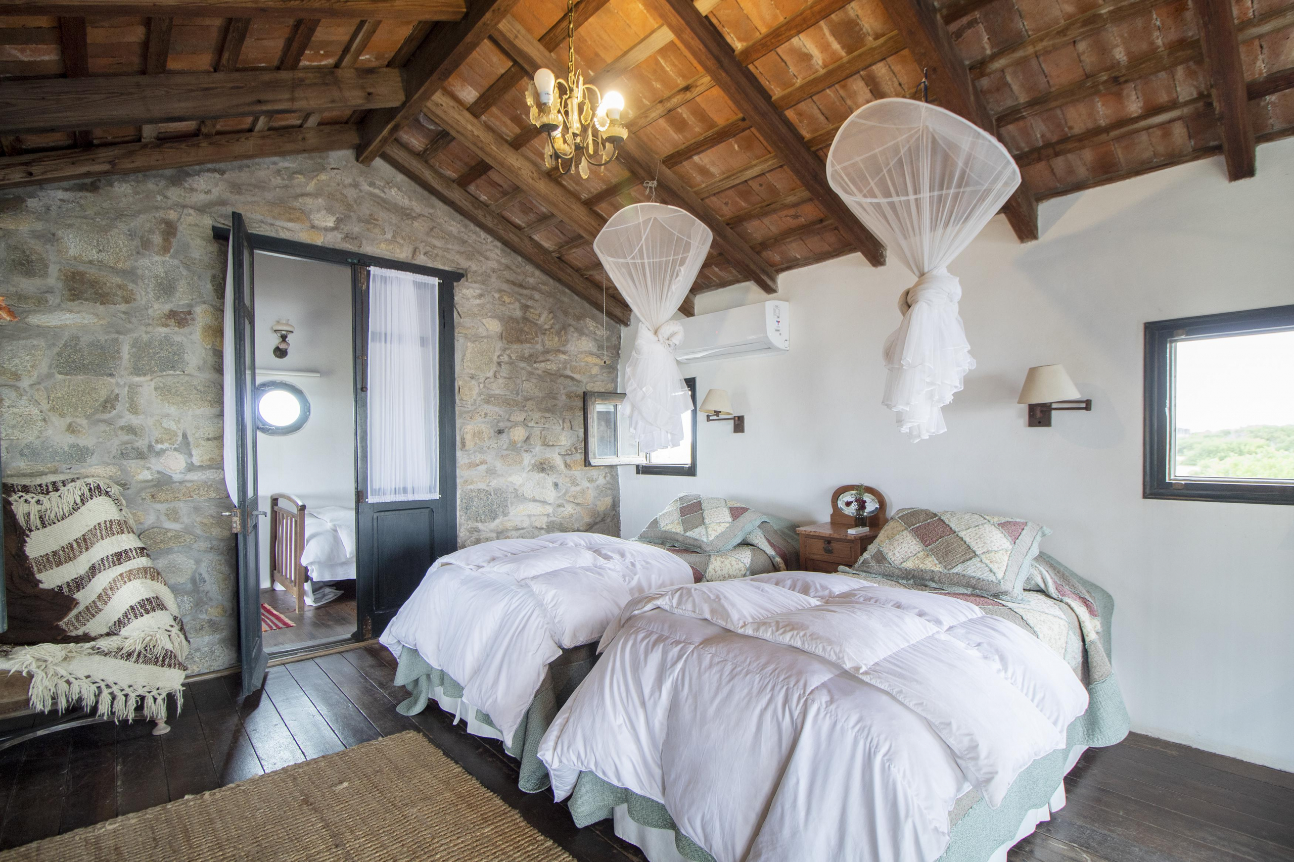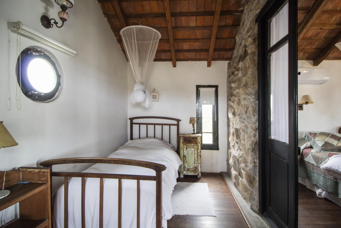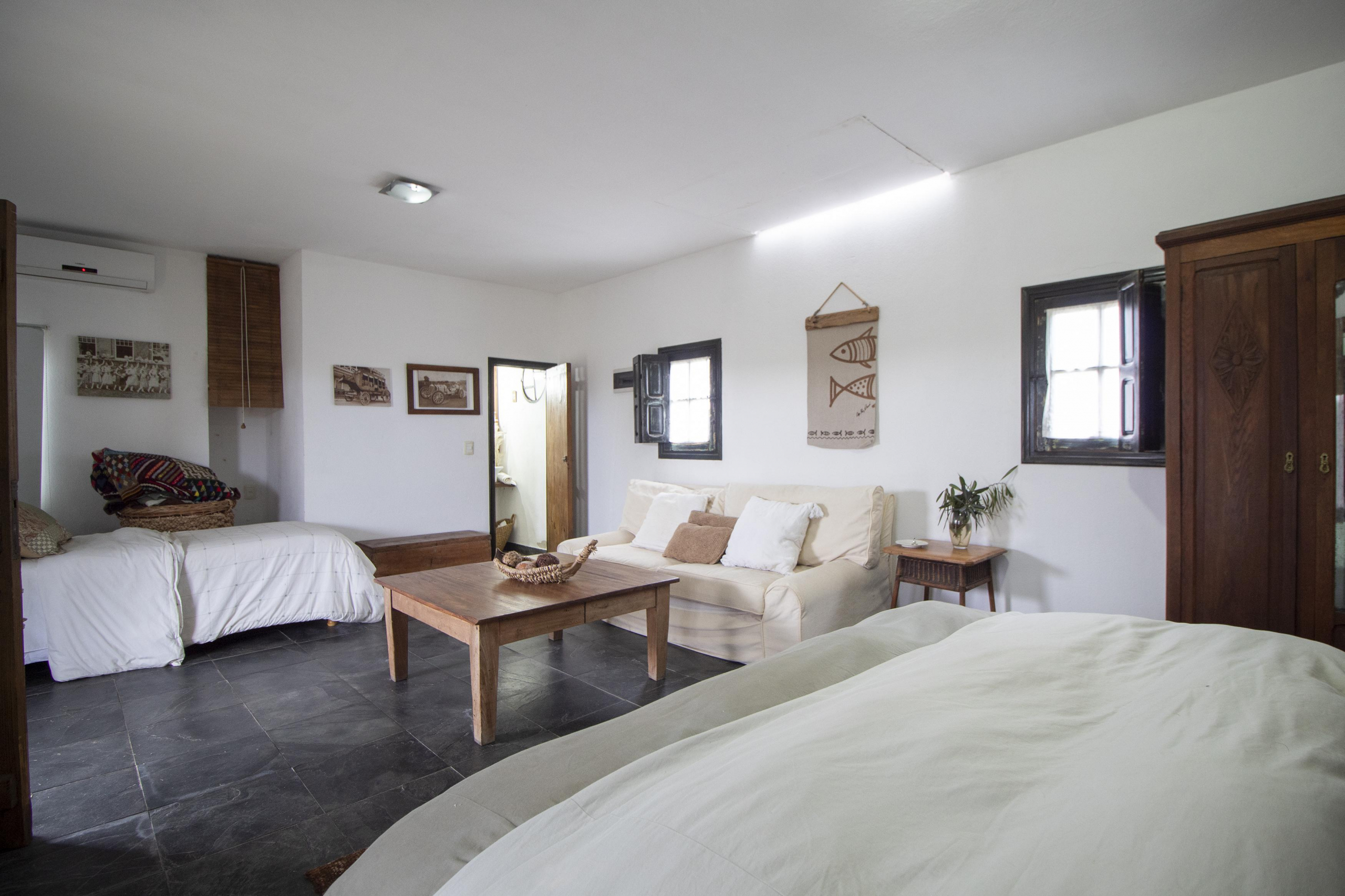 Independiente de la casa, un amplio dormitorio en suite con cama king y una cama single extra.
