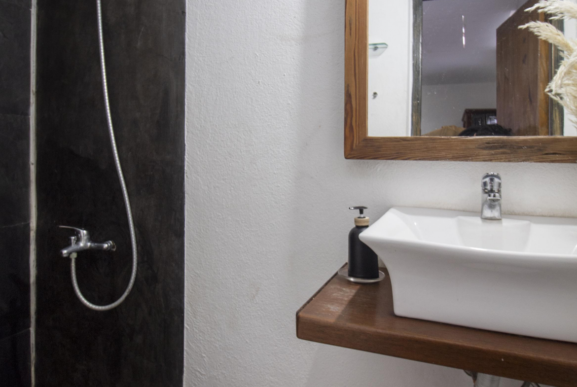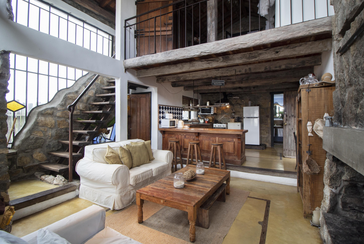 En el modulo principal de la casa, living comedor y cocina integrados, baño y en planta alta, un dormitorio y medio.