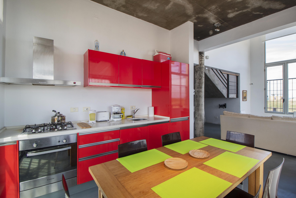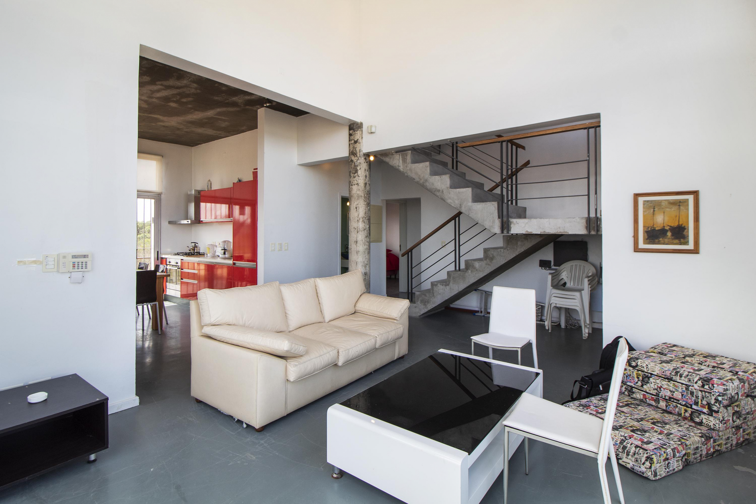 En planta baja, se accede al living, el cual posee doble altura y vista. Cocina bien equipada, con comedor integrado, y también posee dos dormitorios con placares que comparten un baño.
