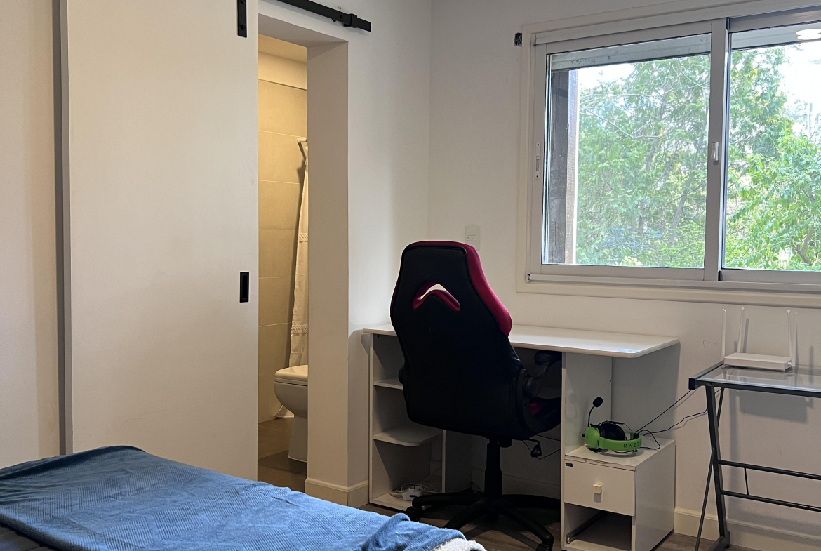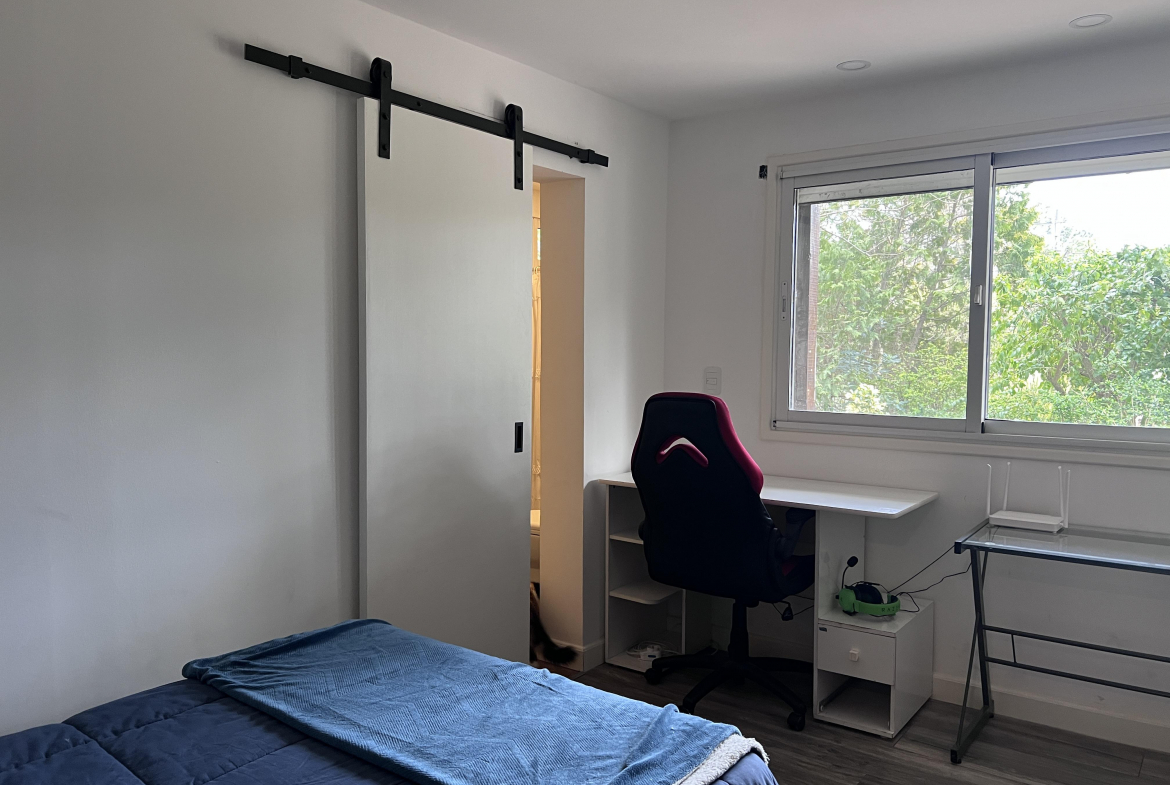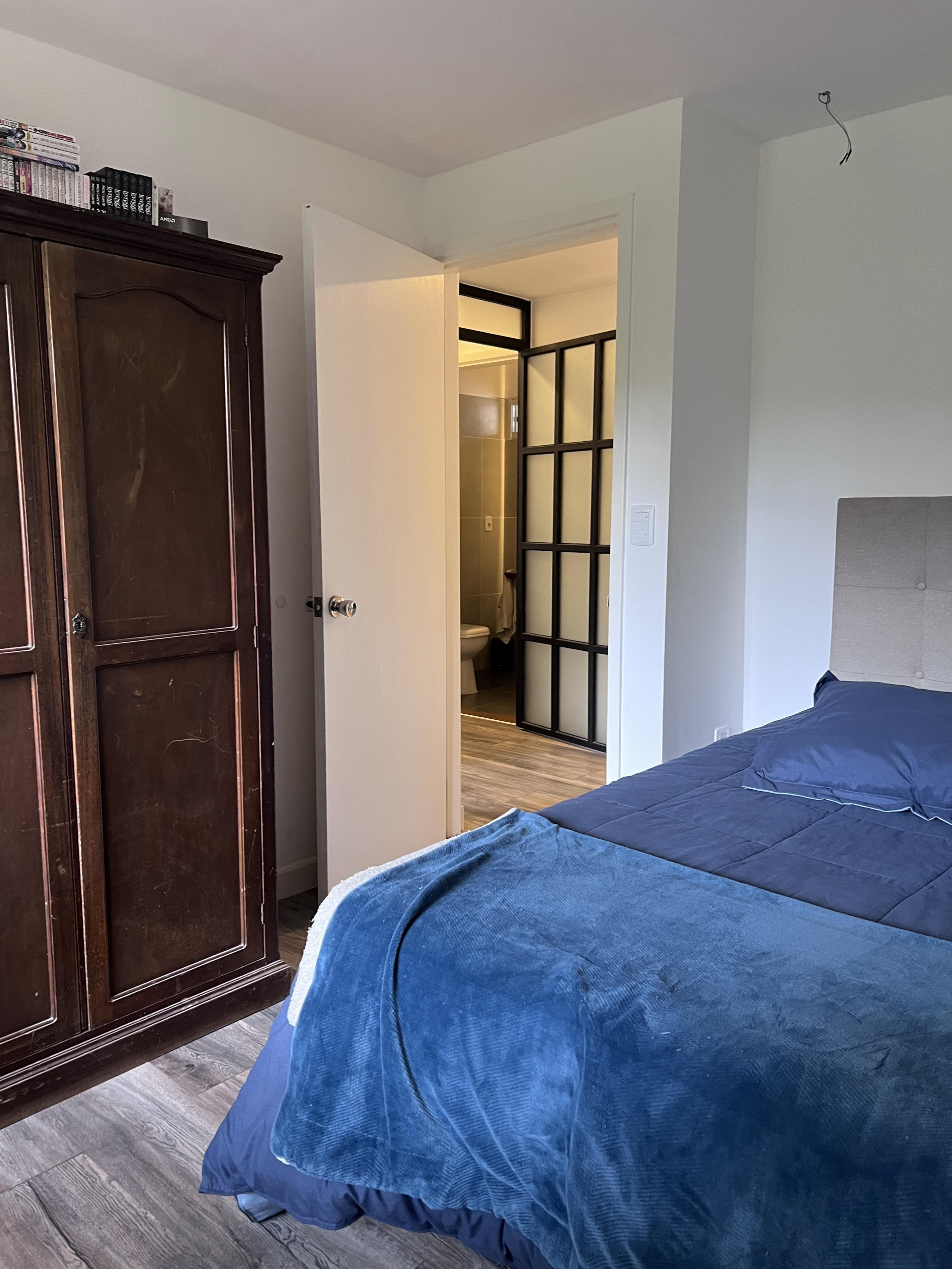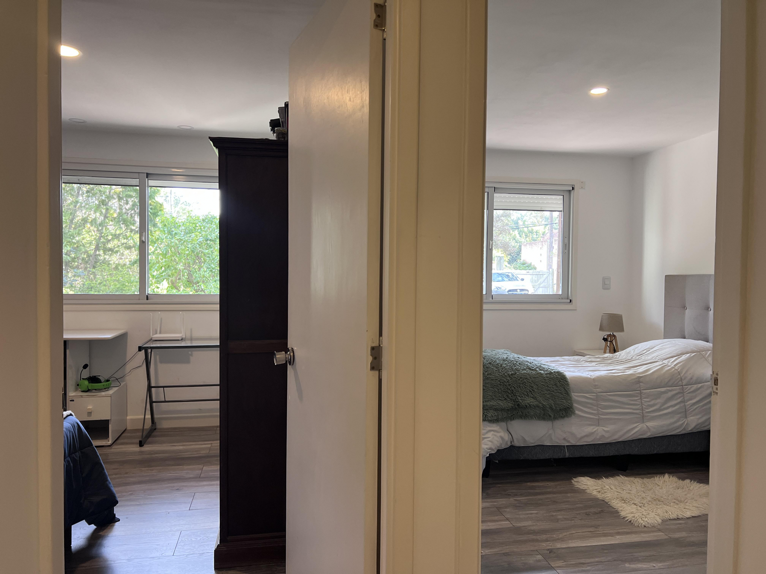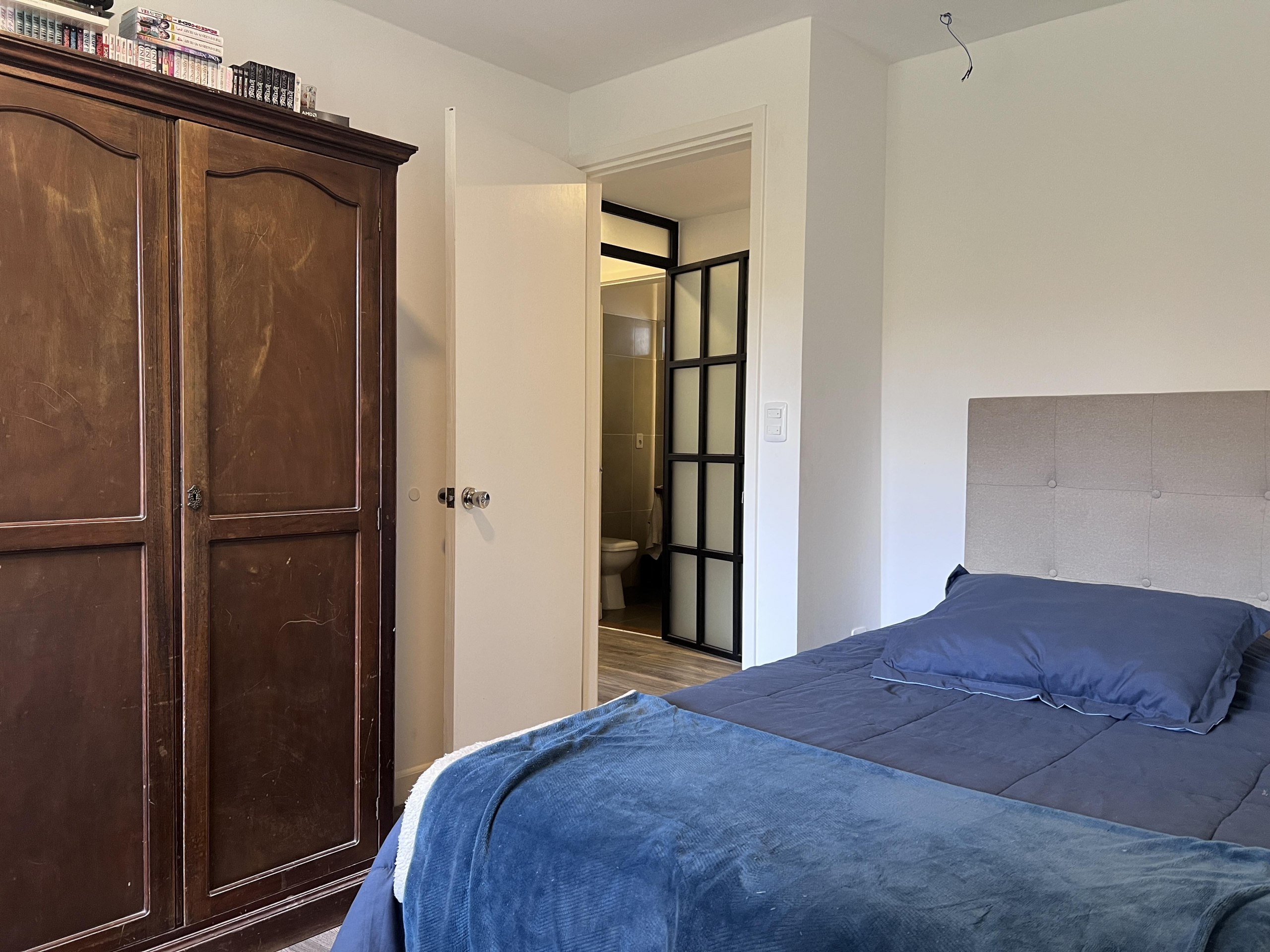 Jardín con parrilla, ideal para cenas al aire libre, copa al atardecer o lectura bajo los pinos. Estacionamiento dentro de la propiedad.