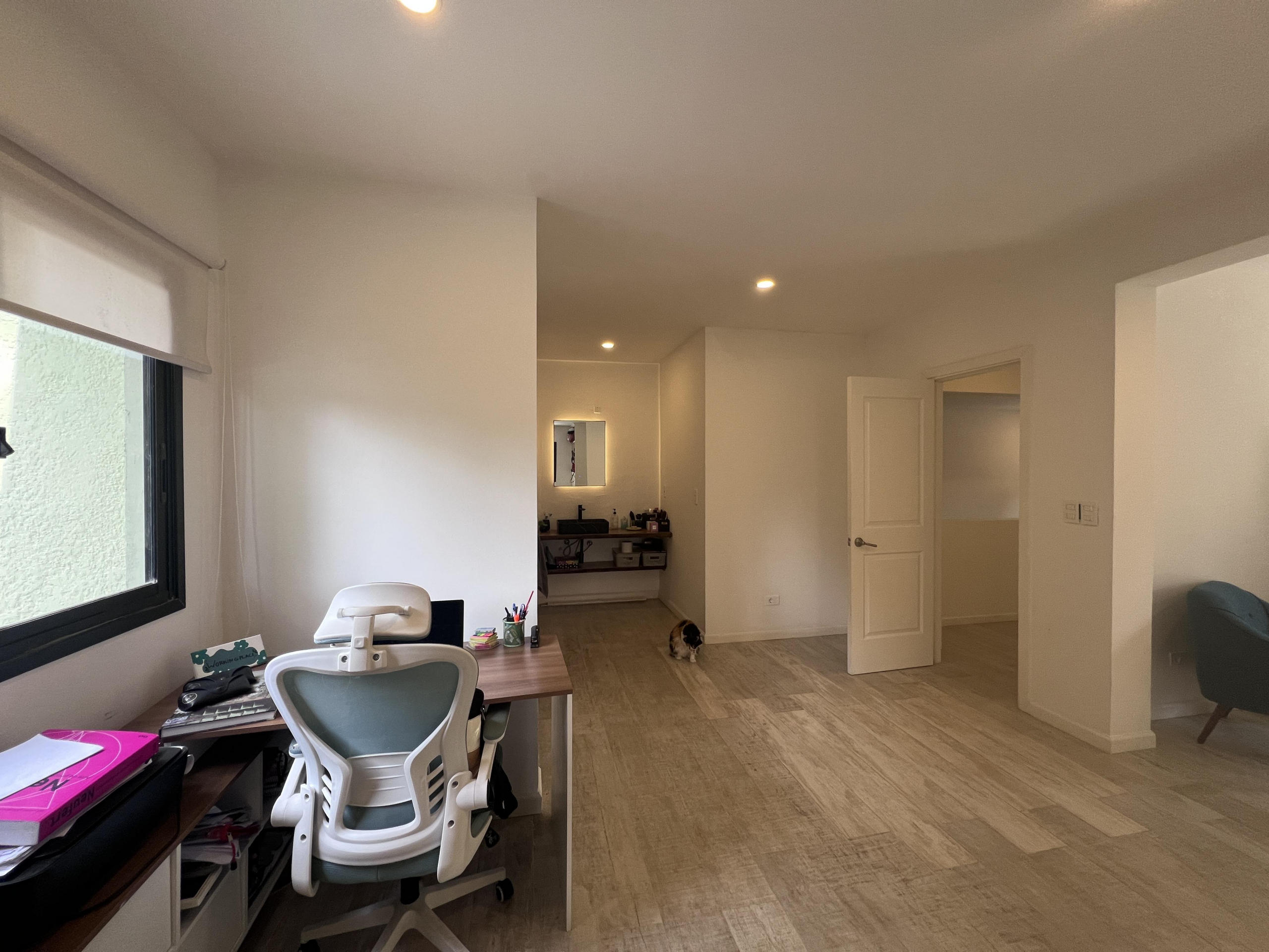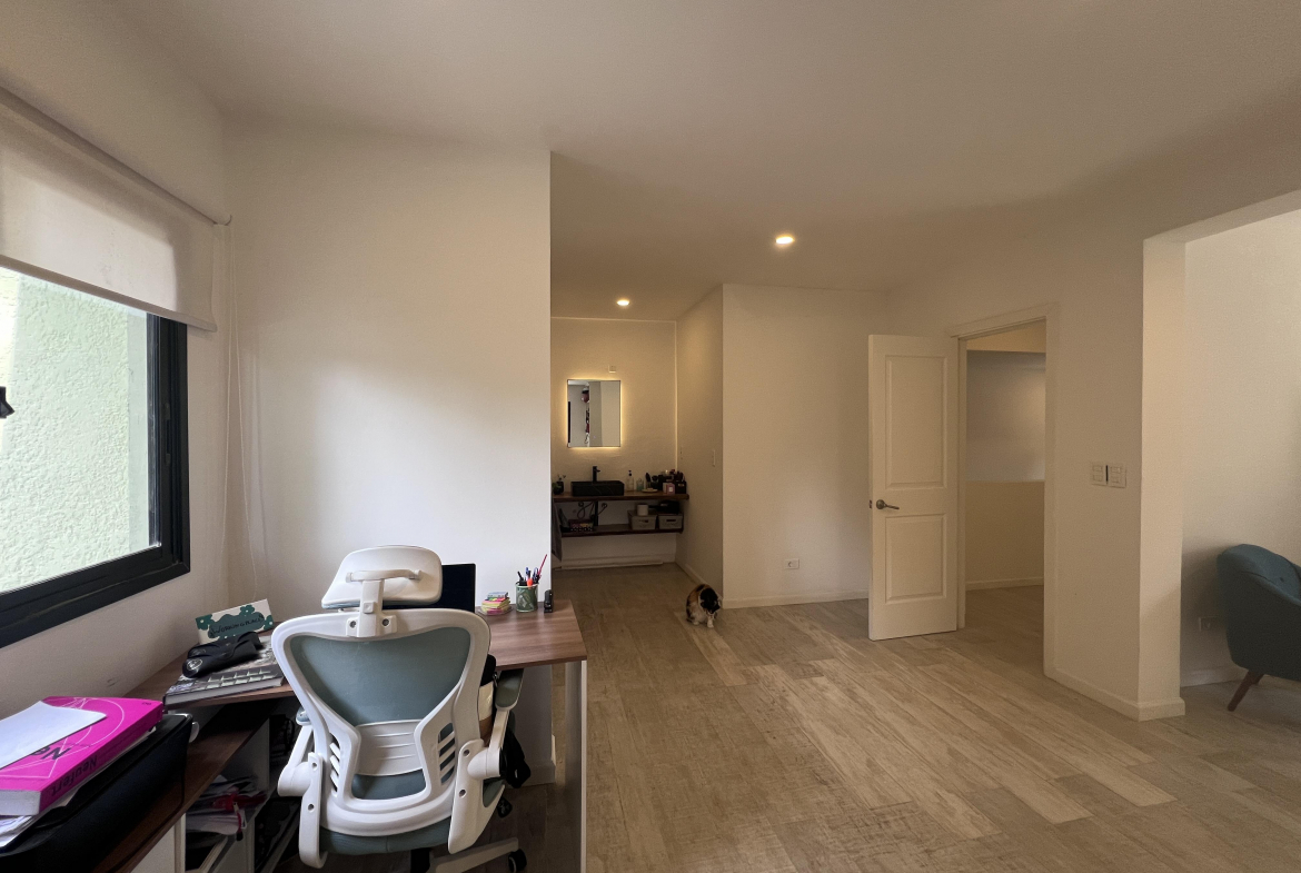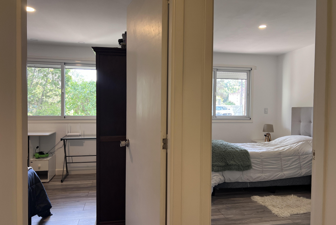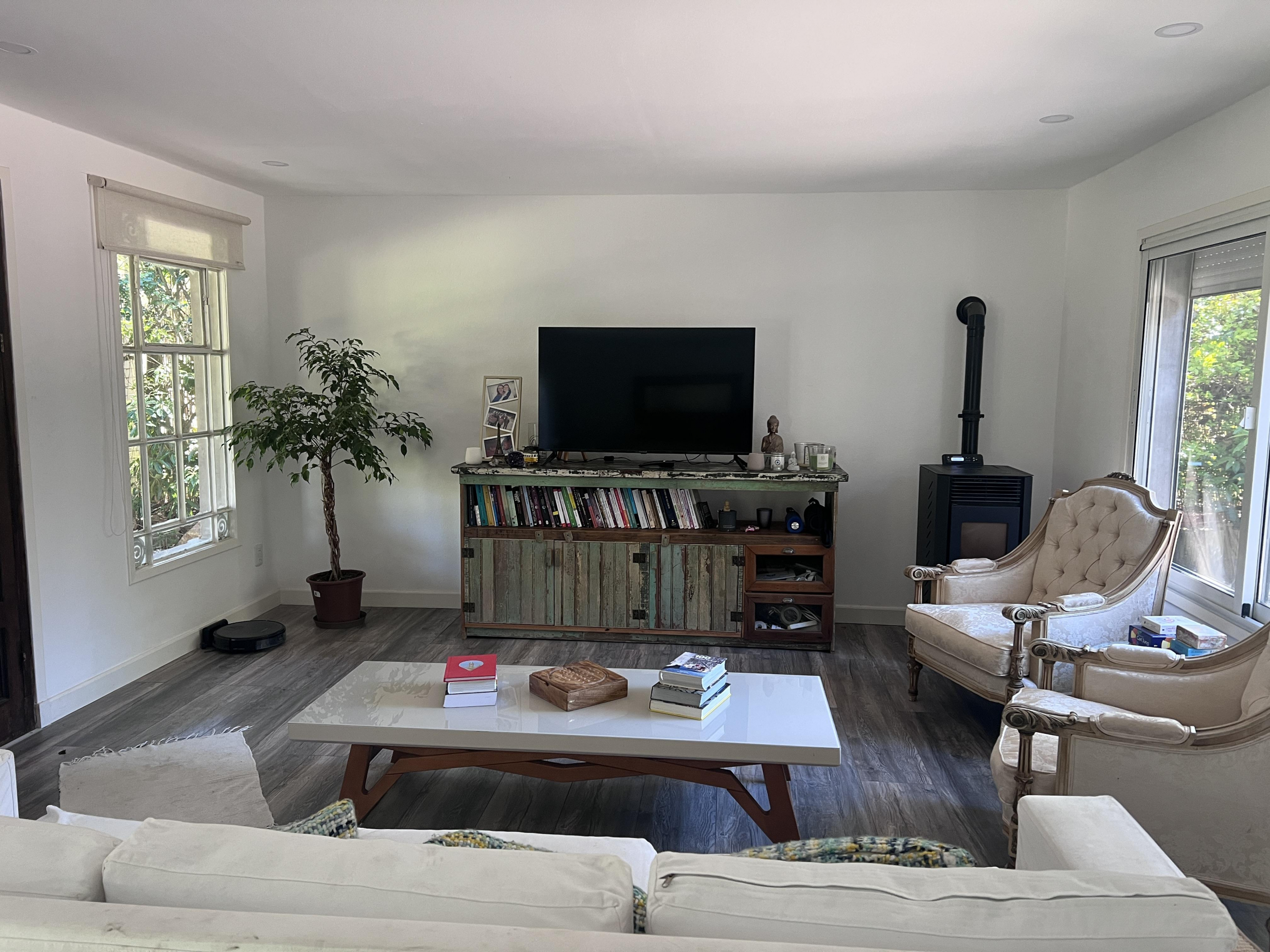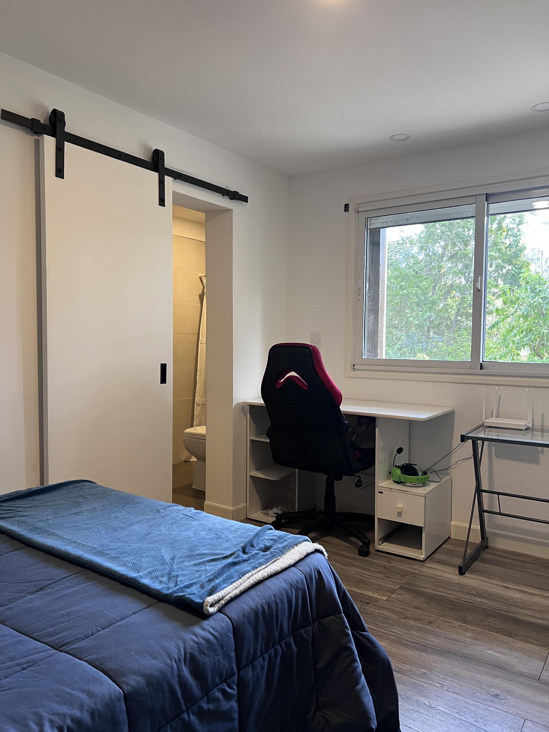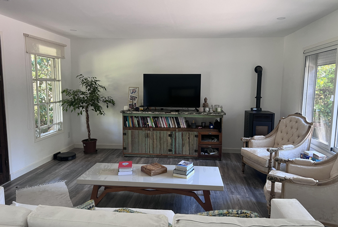 Jardín con parrilla, ideal para cenas al aire libre, copa al atardecer o lectura bajo los pinos. Estacionamiento dentro de la propiedad.