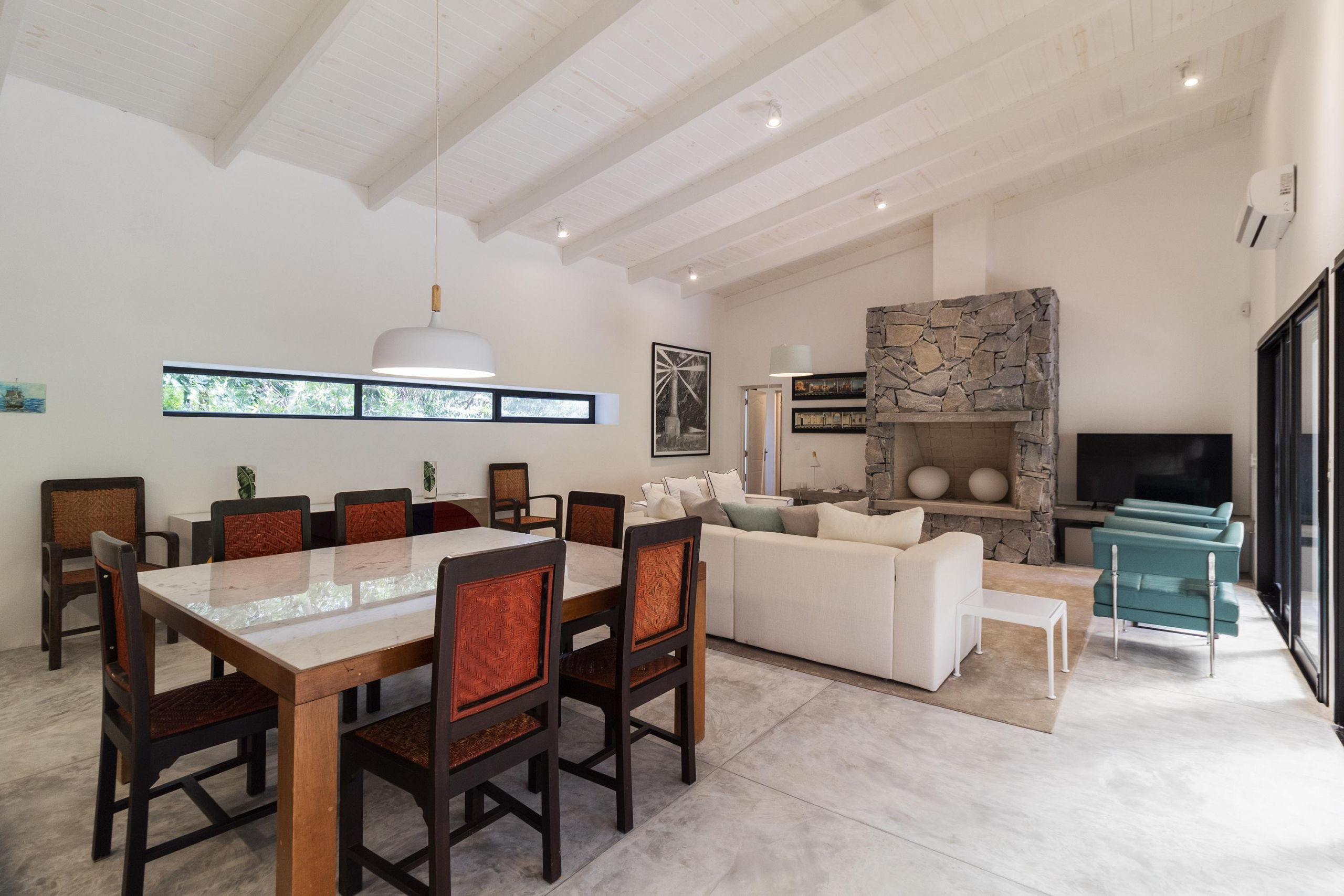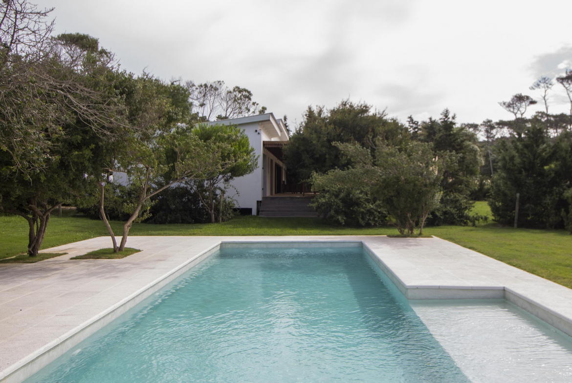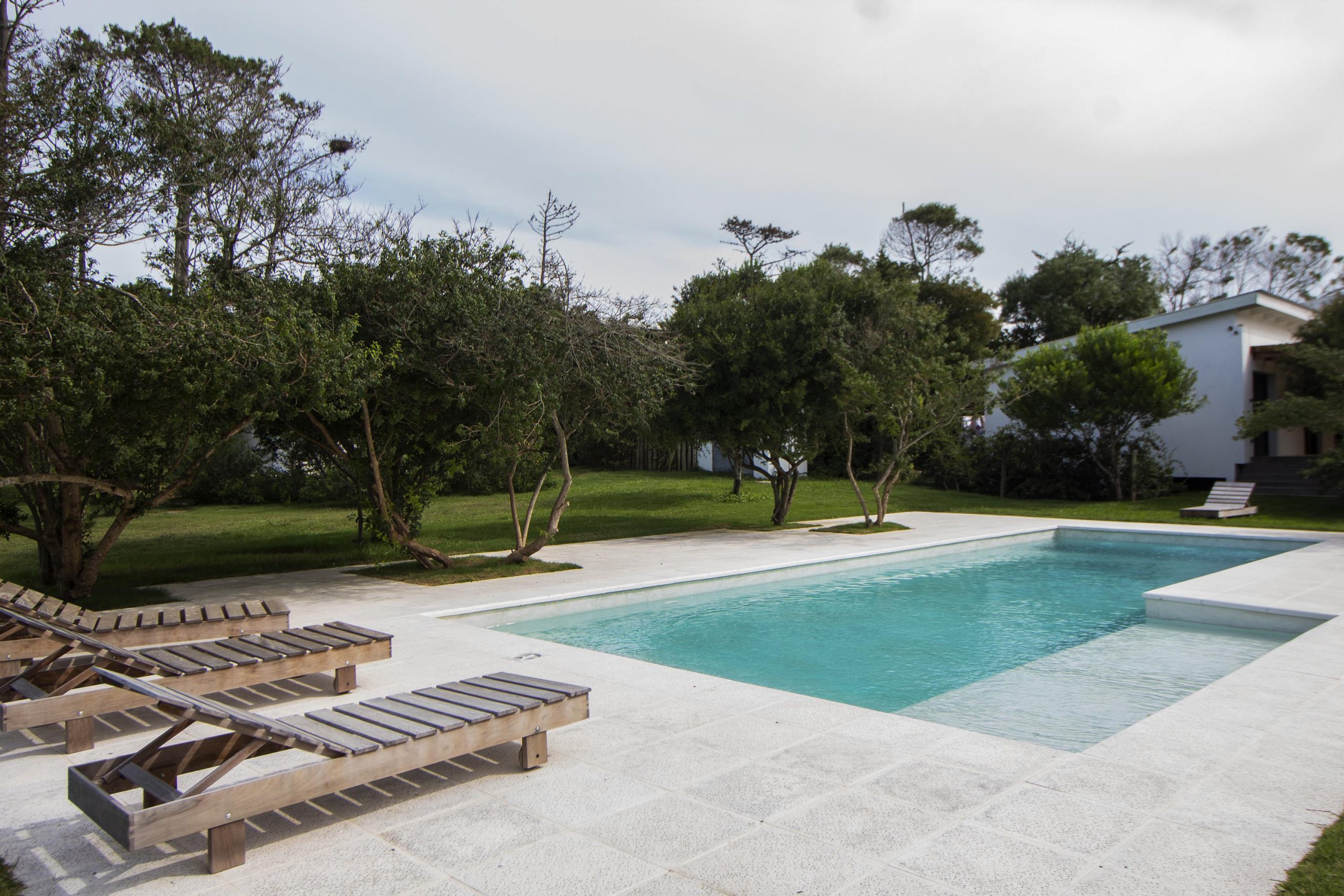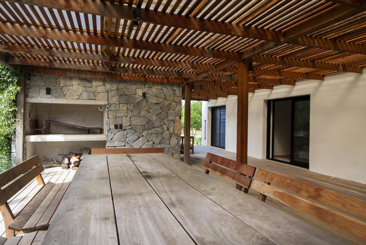 Comoda propiedad desarrollada en una planta. Galeria techada con living comedor exterior, parrilla cubierta, toillete externo para utilizarse tambien para la piscina, la cual se encuentra en un amplio jardin, con multiples especies autoctonas, cortaderas, jazmin del cabo y pinos.