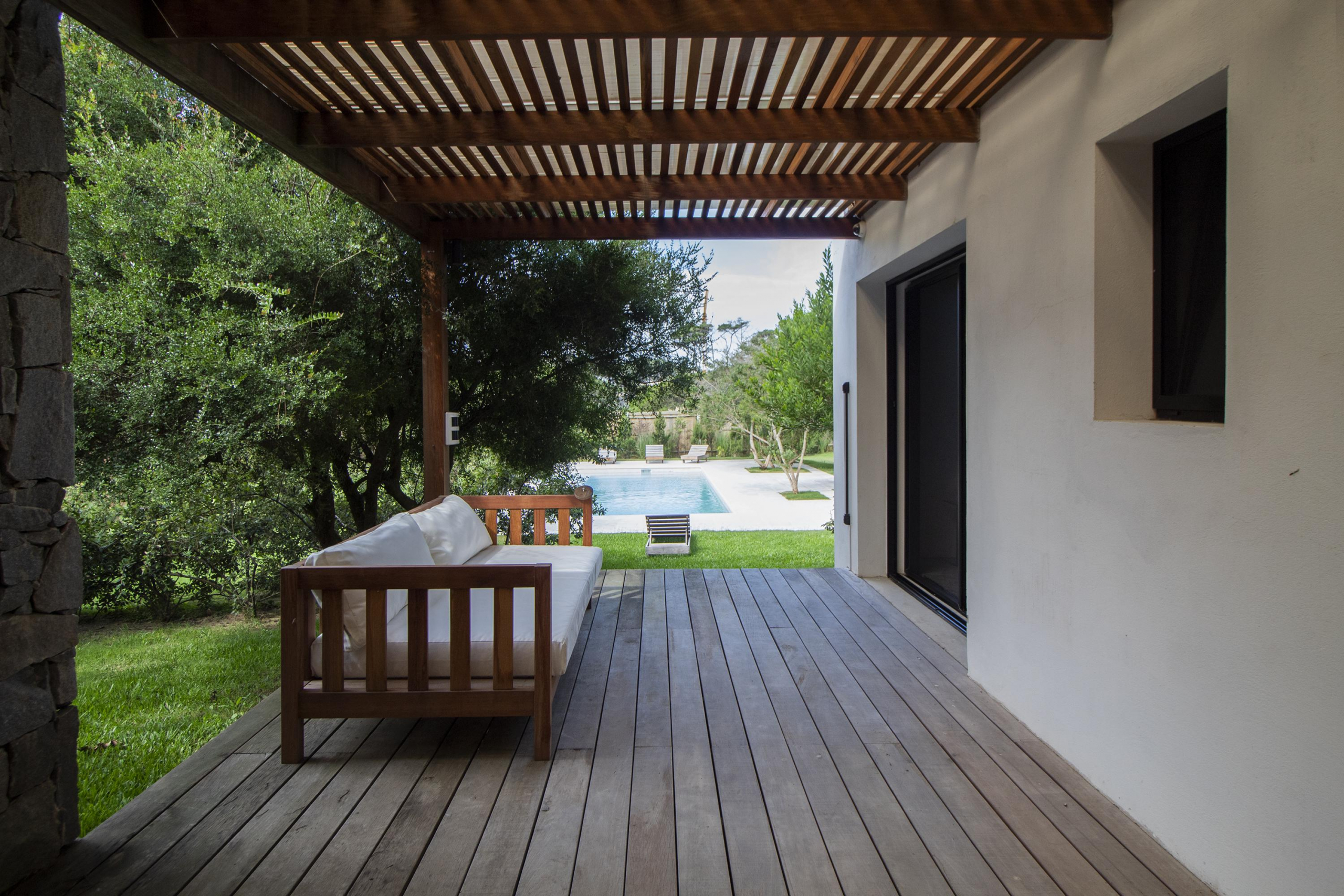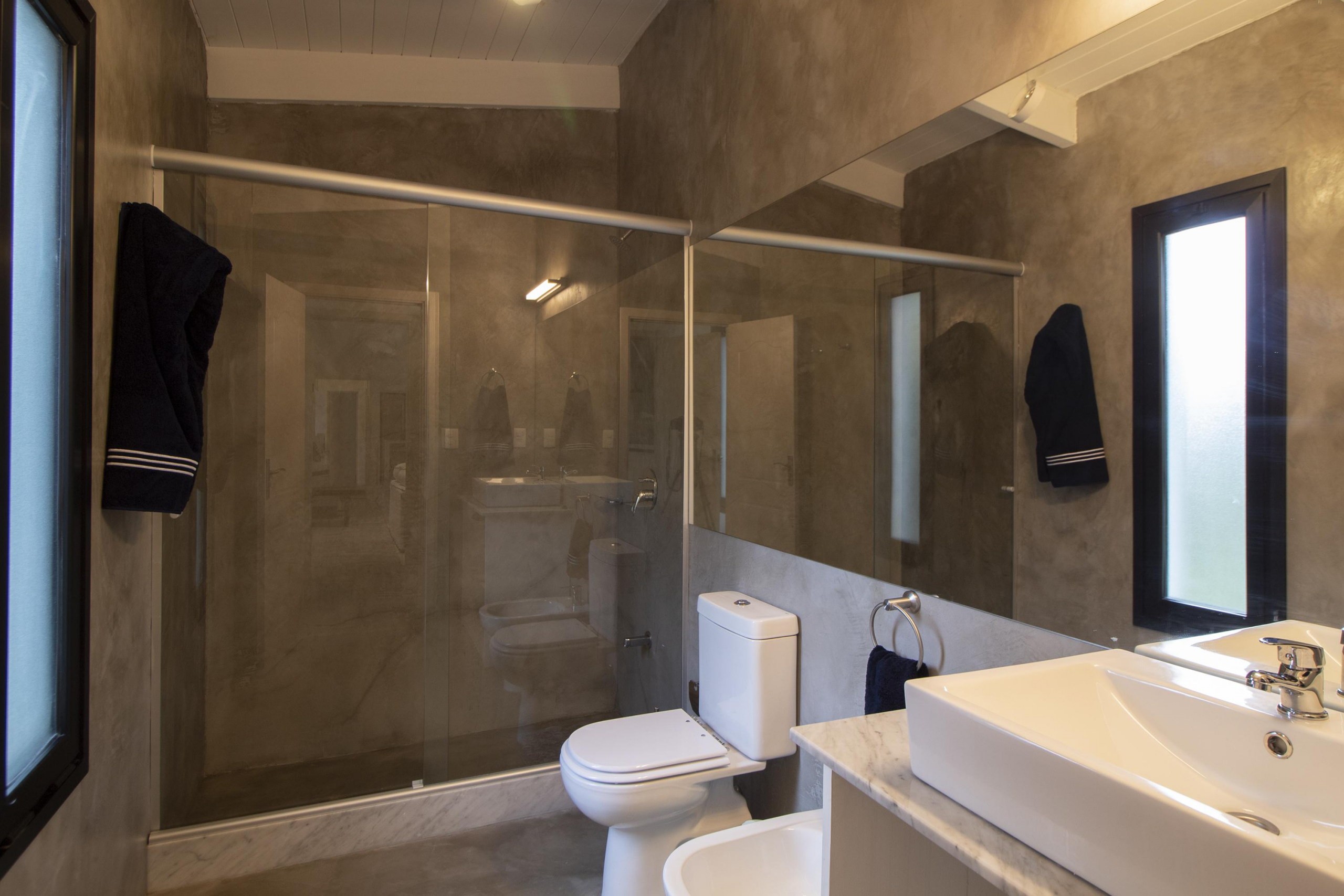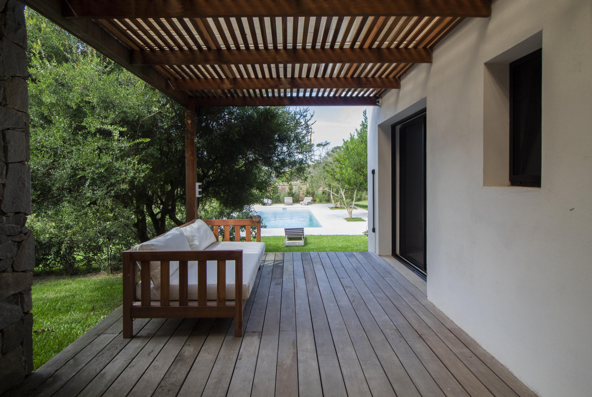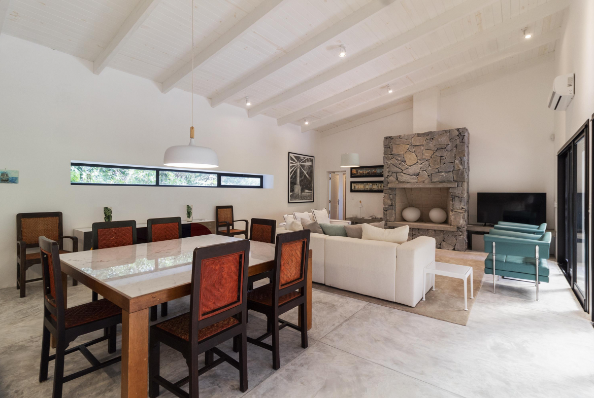 Comoda propiedad desarrollada en una planta. Galeria techada con living comedor exterior, parrilla cubierta, toillete externo para utilizarse tambien para la piscina, la cual se encuentra en un amplio jardin, con multiples especies autoctonas, cortaderas, jazmin del cabo y pinos.