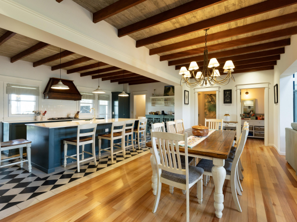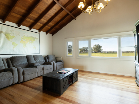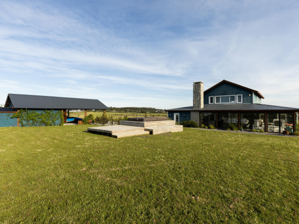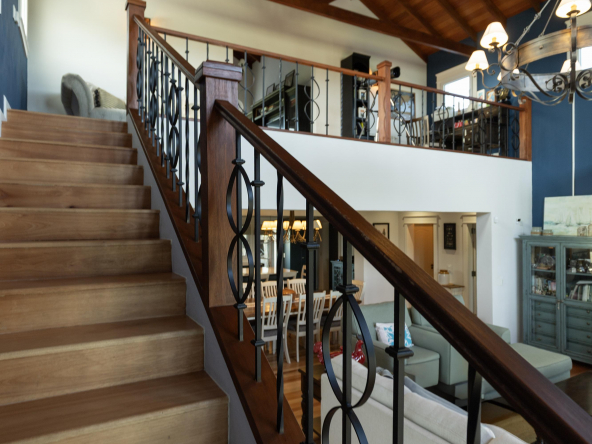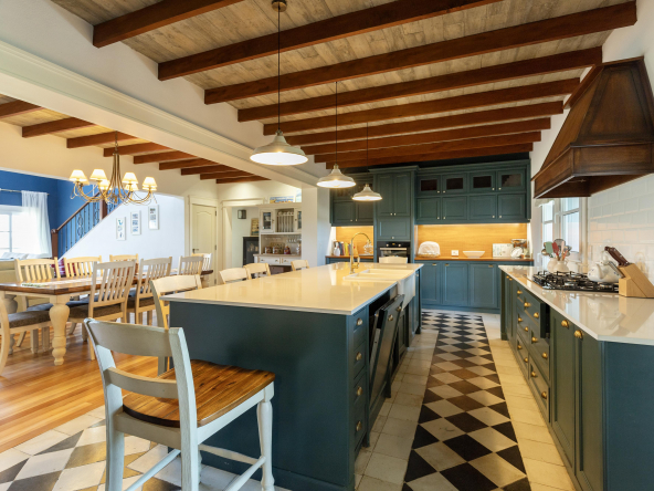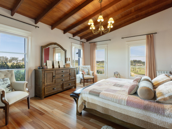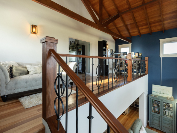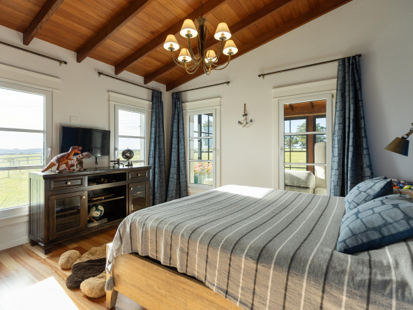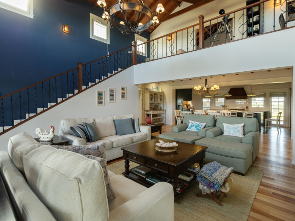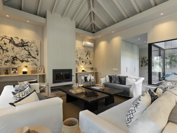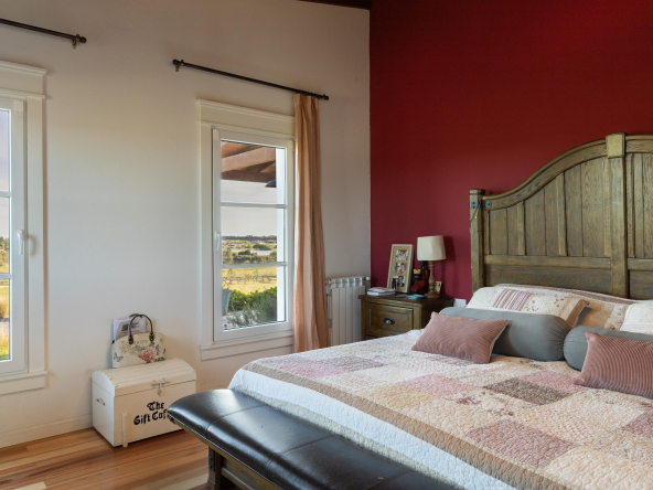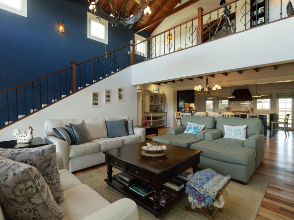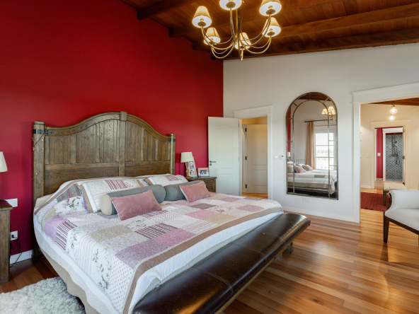 The property is accessed by ramp to the first floor, where there are 3 bedrooms en suite, playroom, bathroom, kitchen, laundry room and service room or fifth bedroom.