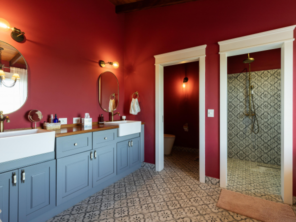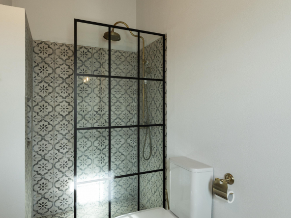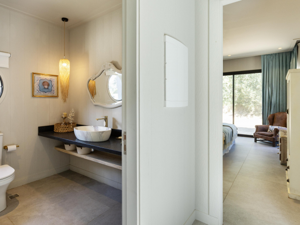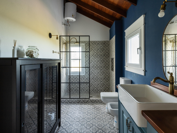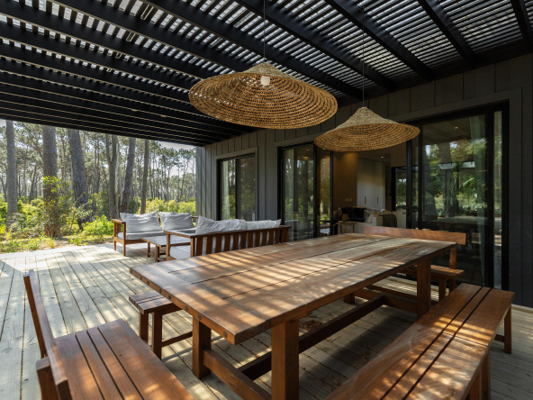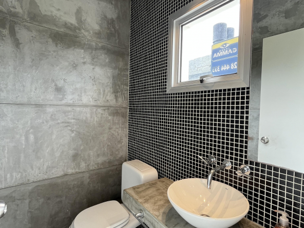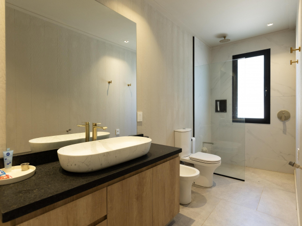 Upstairs, reception hall, master suite, living dining room and fully integrated kitchen, internal toilet, galleries, terrace where the infinity pool, barbecue, gas grill, toilet, living room and outdoor dining room…