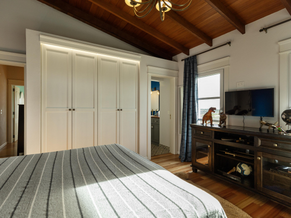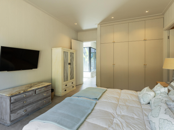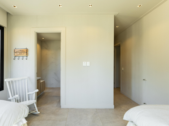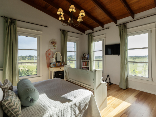 Se accede por rampa hasta la propiedad a la planta baja, donde se encuentran 3 dormitorios en suite, playroom, baño, cocina definida, lavadero y dependencia de servicio o quinto dormitorio.