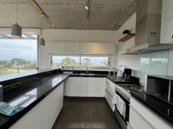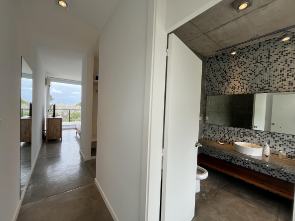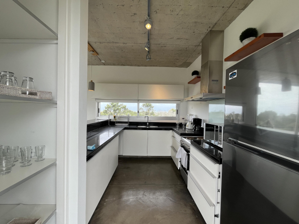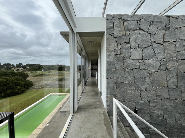 En planta alta, hall de recepción, master suite, living comedor y cocina totalmente integrada, toilette interno, galerías, terraza donde se encuentra la piscina infinita, parrilla, parrilla a gas, toilette, living y comedor exterior…