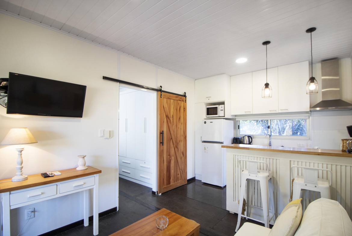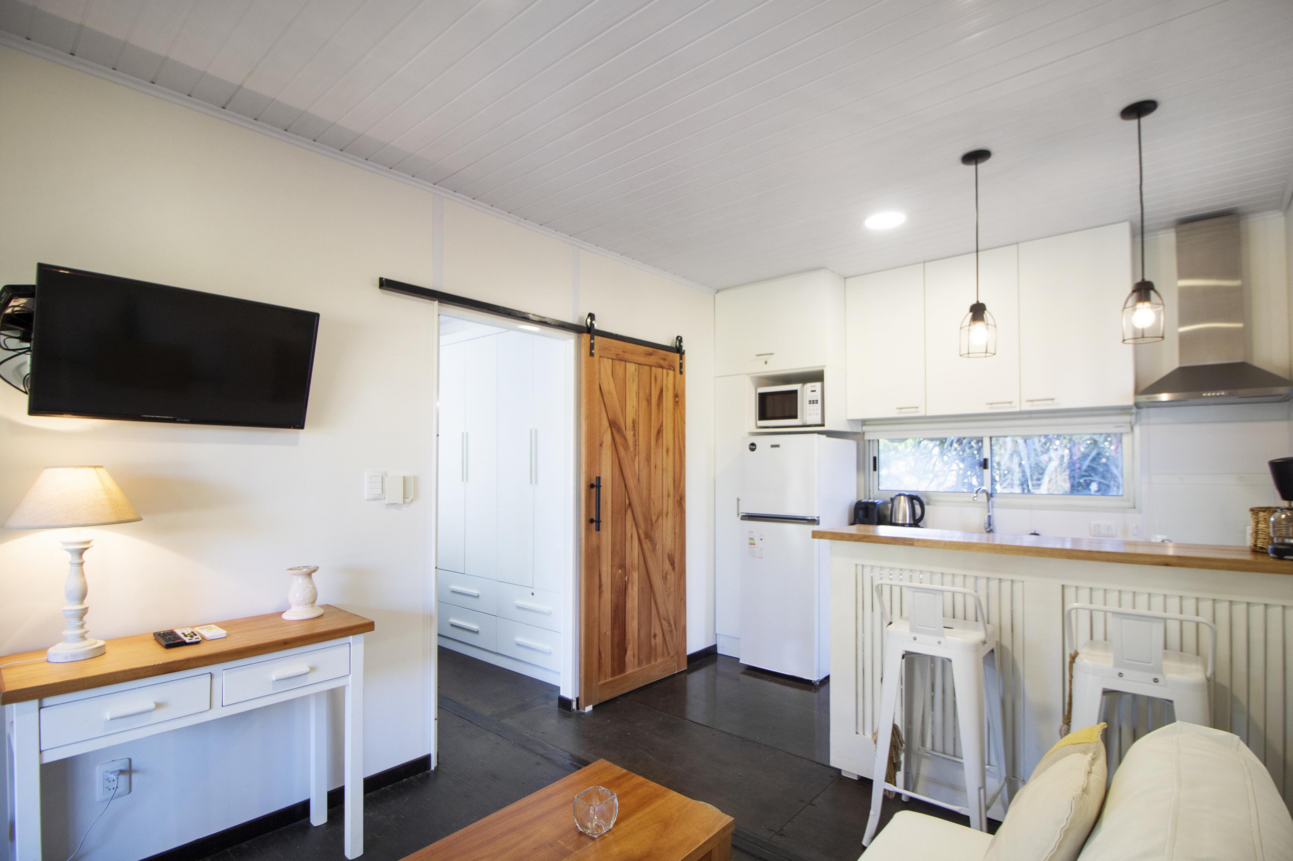 amplios ventanales corredizos conectan con la casa y un acogedor, cocina americana con living y comedor integrados. Buen lugar de guardado. Dormitorio en suite . Todos los ambientes con split.