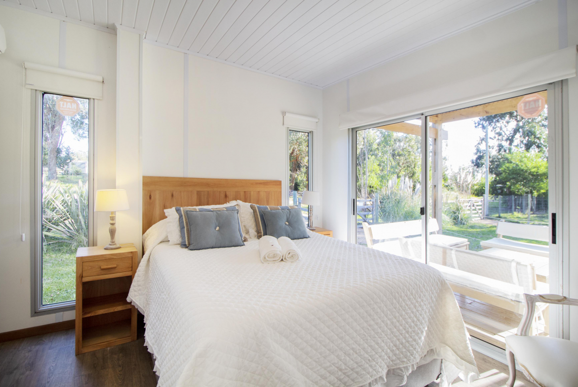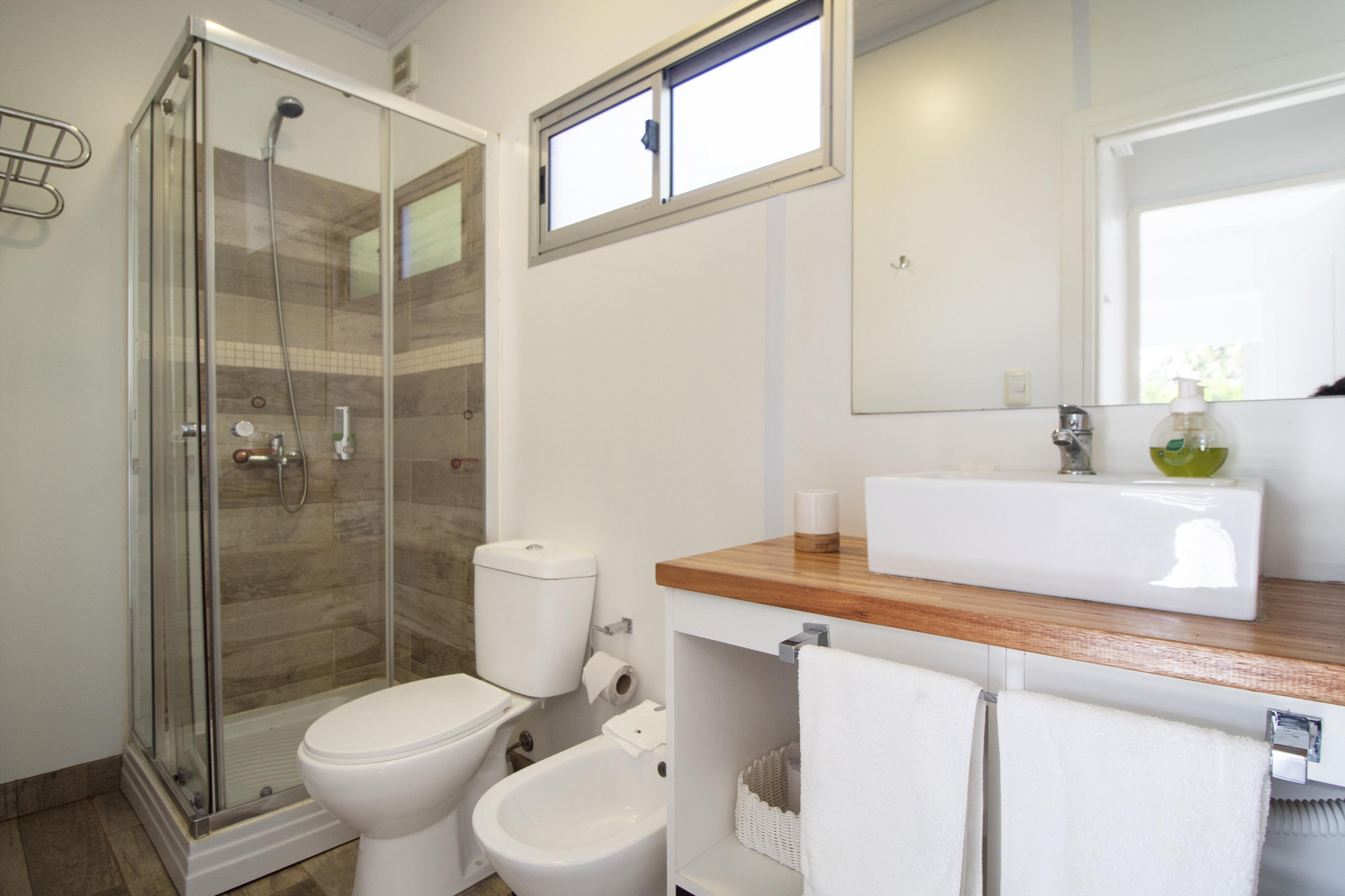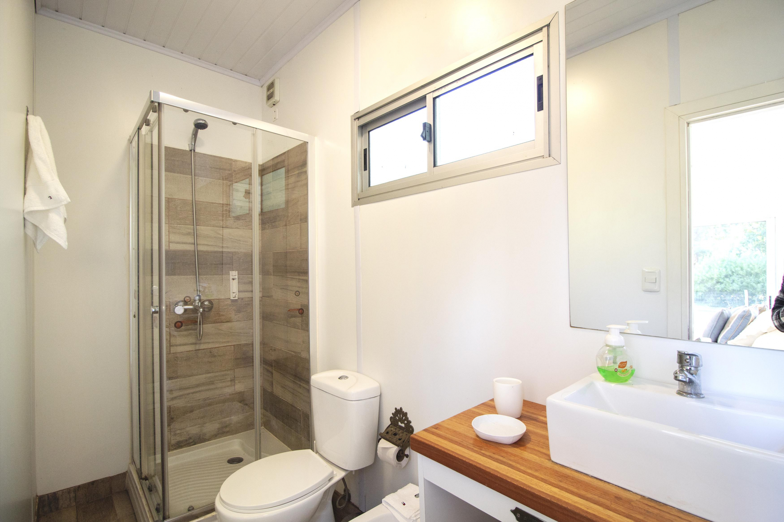amplios ventanales corredizos conectan con la casa y un acogedor, cocina americana con living y comedor integrados. Buen lugar de guardado. Dos dormitorio en suite . Todos los ambientes con split.