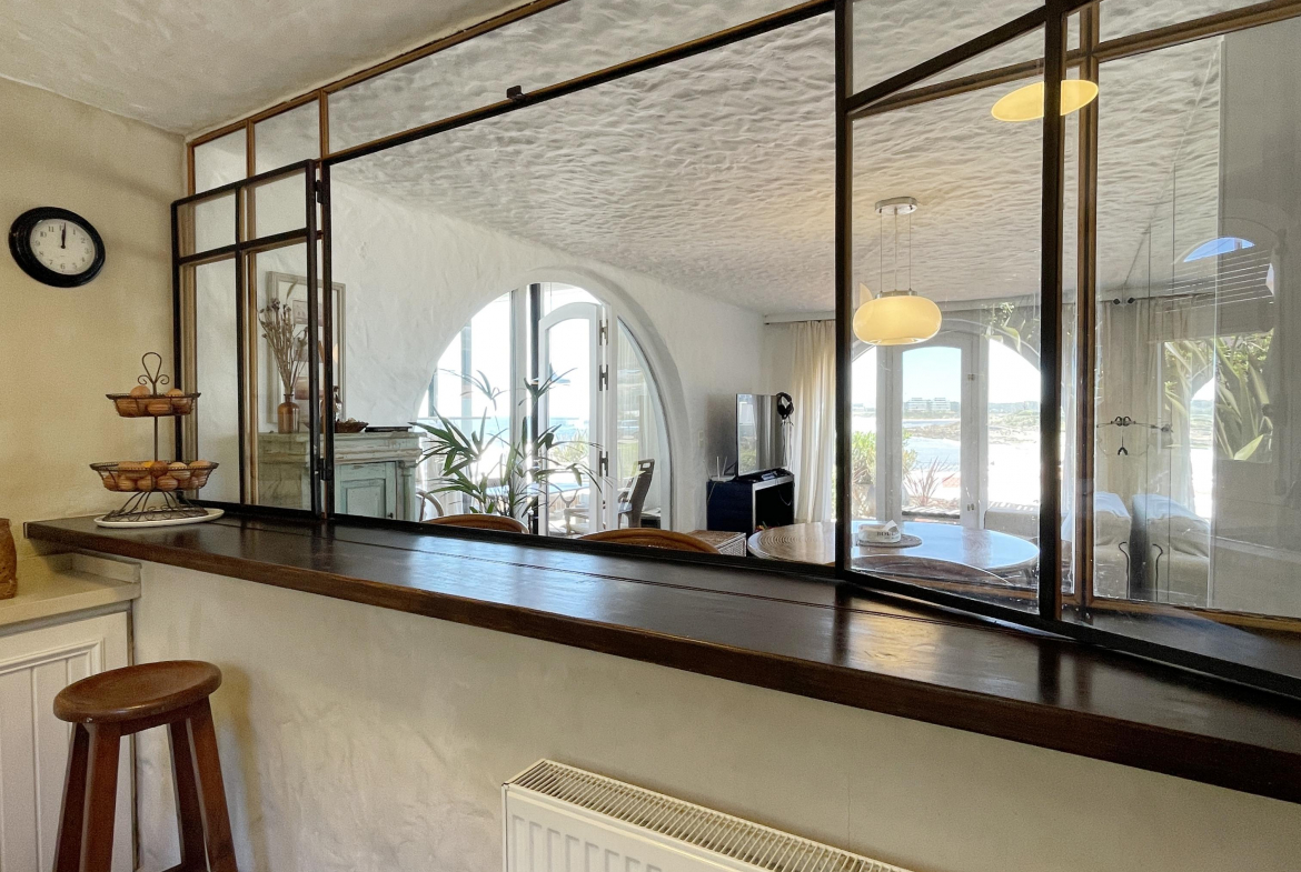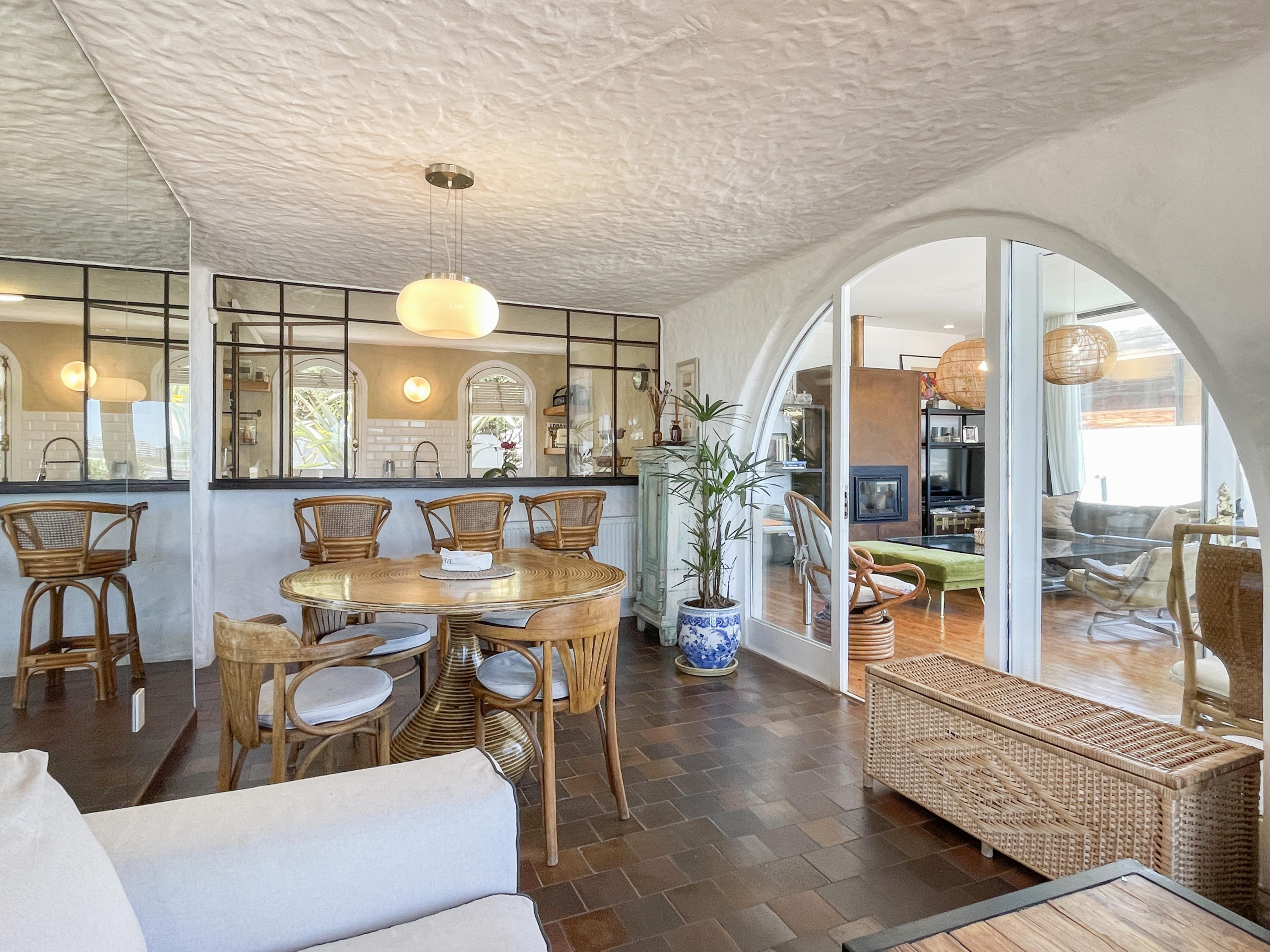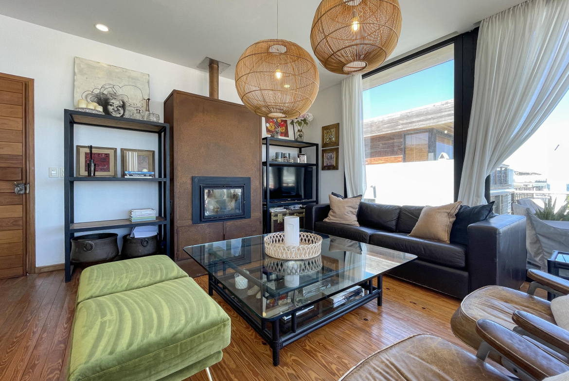 Living con estufa a leña alto rendimiento, aire acondicionado y conexion hacia la terraza que conecta a la pileta. Comedor semi integrado a la cocina full equipada , y todos los ambientes con vista al mar. EL VALOR PUBLICADO DE ENERO CORRESPONDE DESDE EL 8/1/24 AL 31/01/24