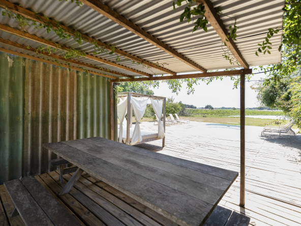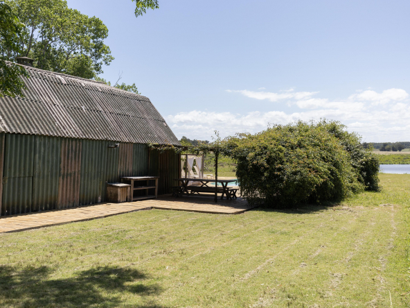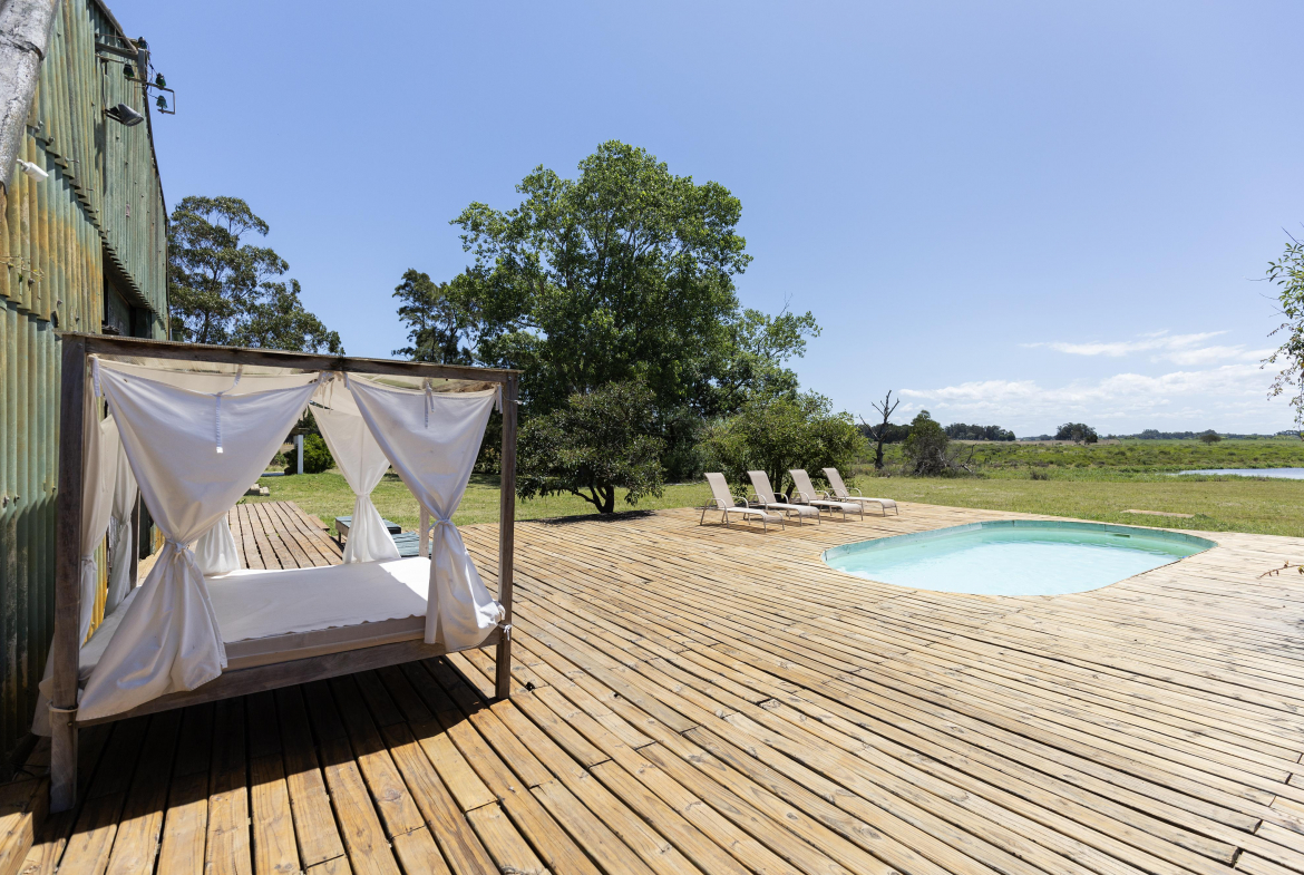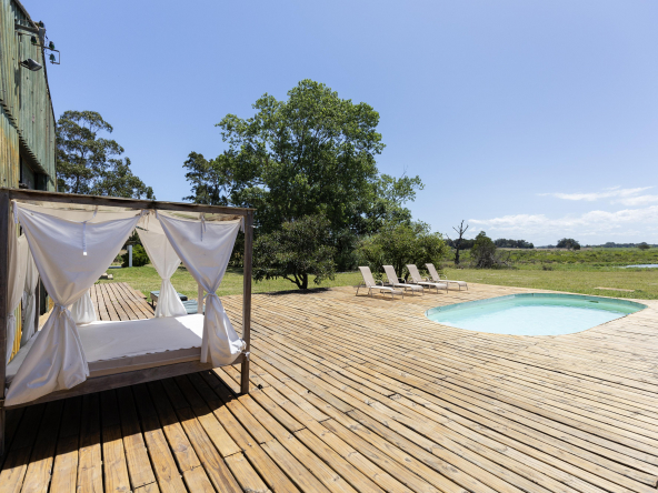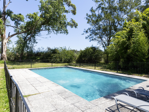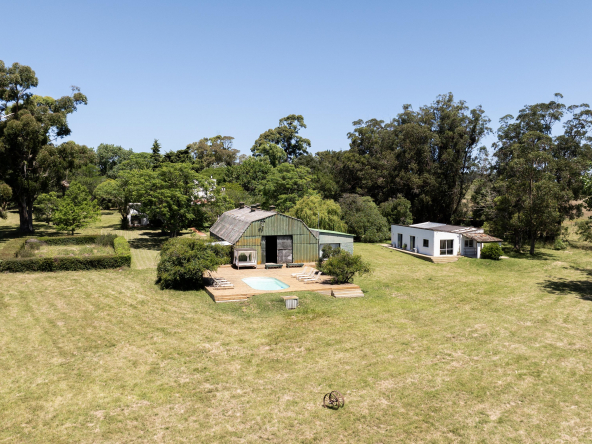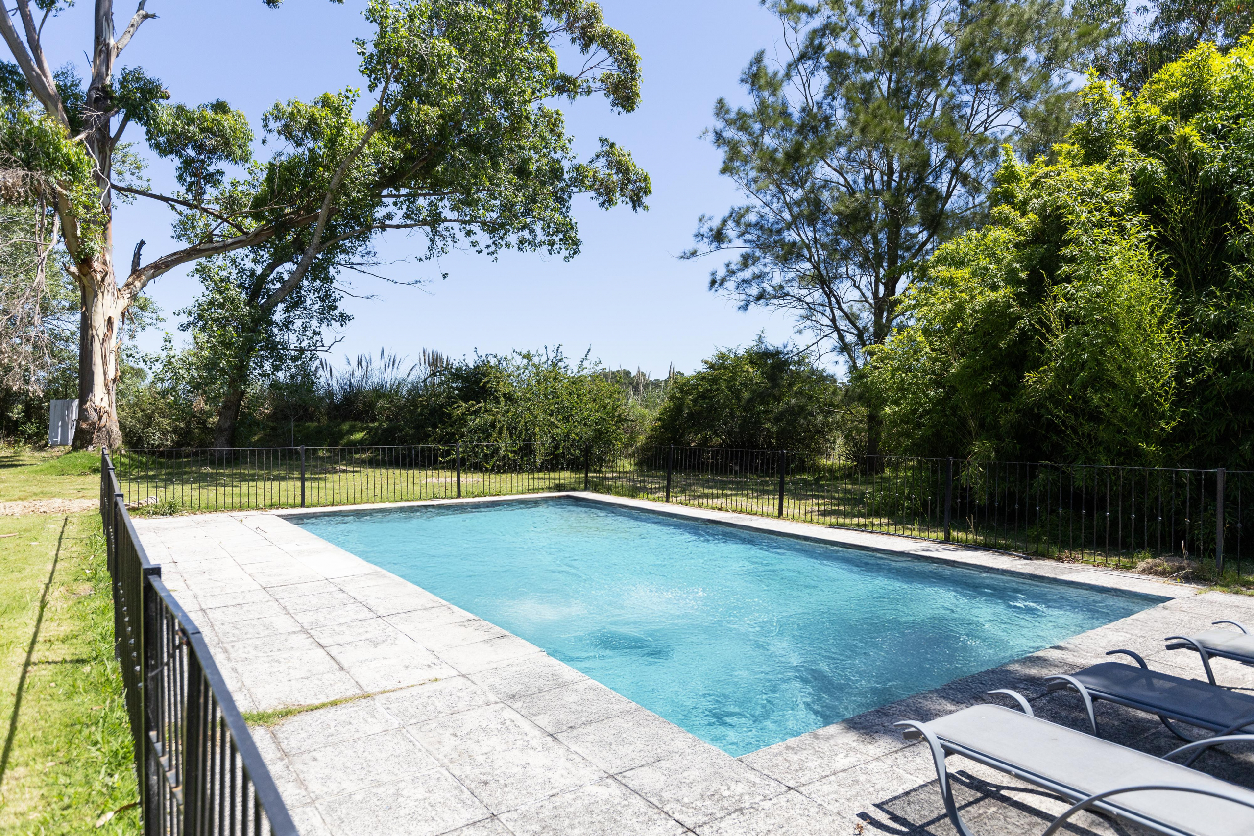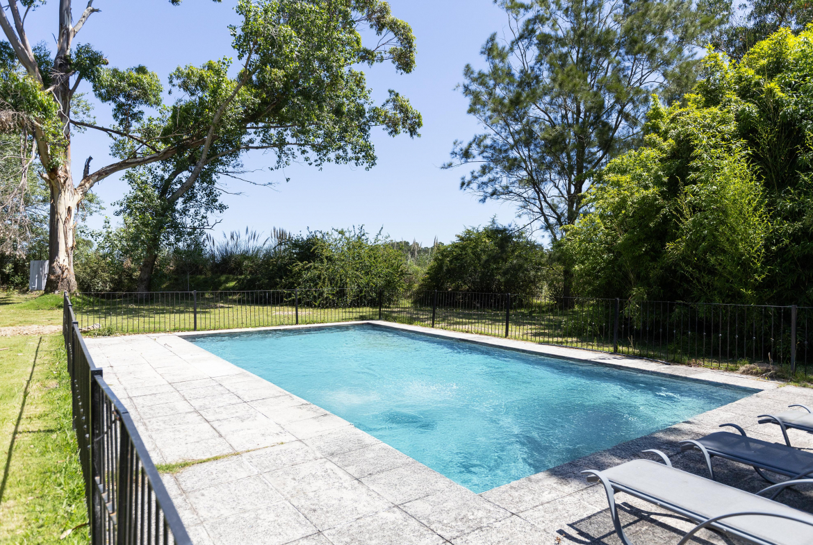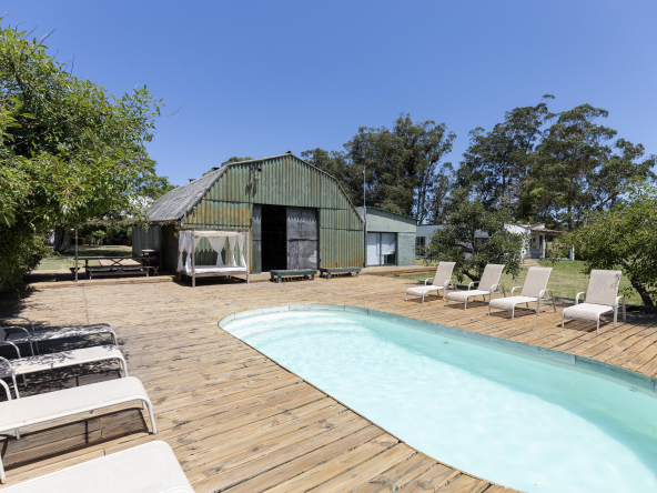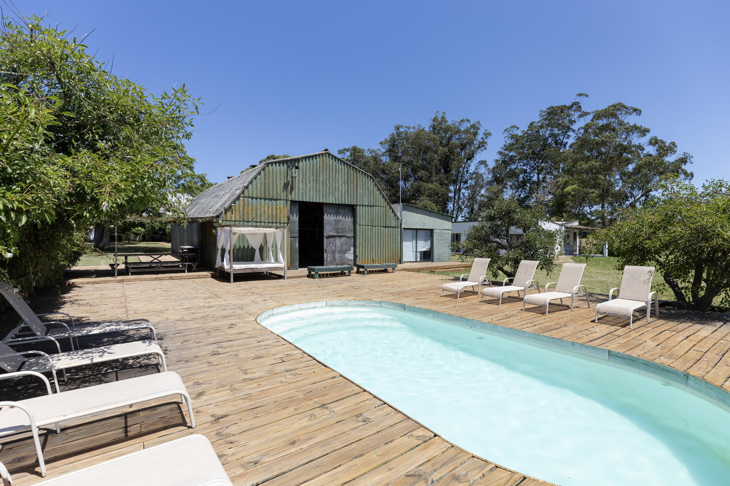 Casa principal en construcción tradicional con mucho potencial, también casa de huéspedes y galpon ambientado estilo bar enfrente a la piscina y deck.