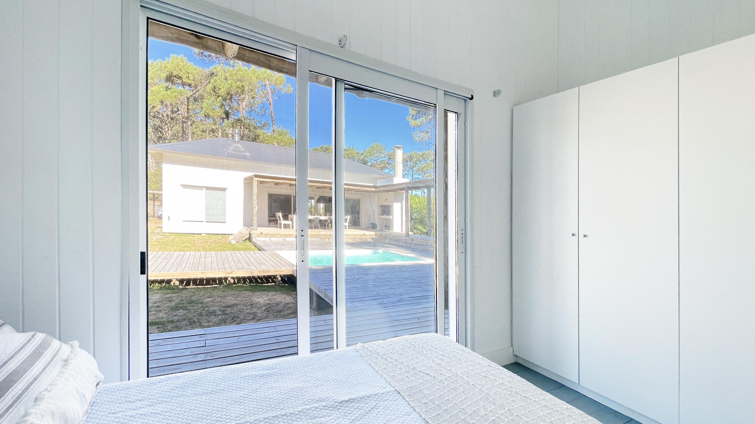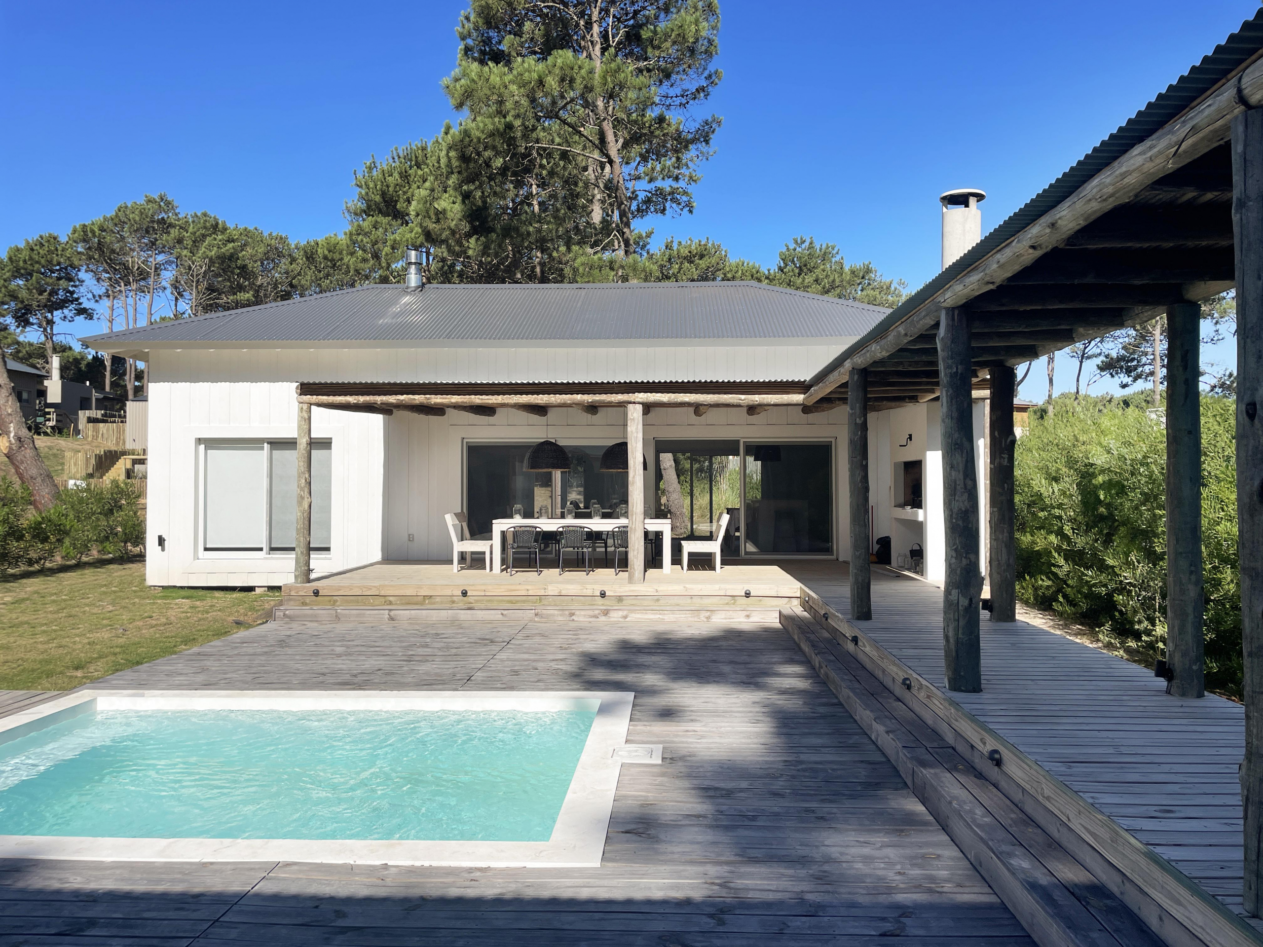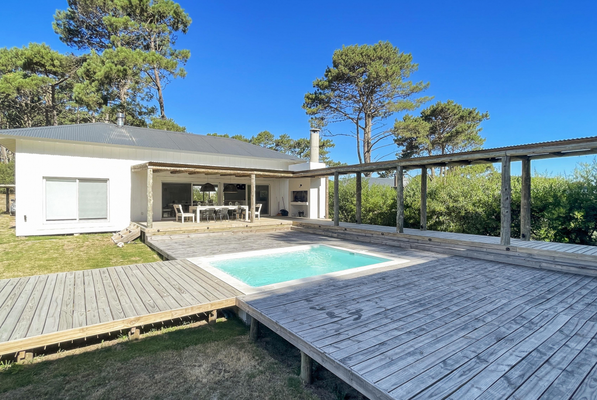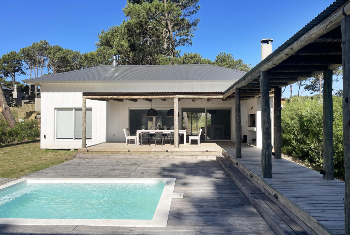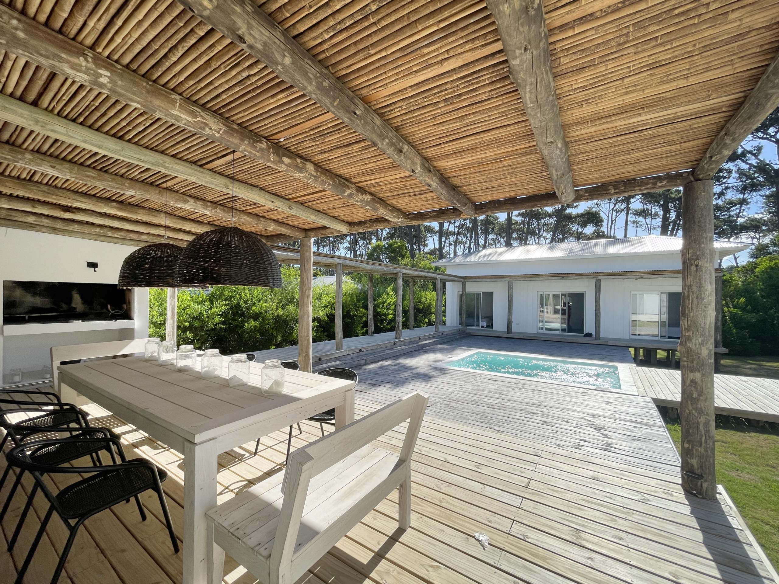 Desarrollada toda en una planta, consta en volumen principal con espacios comunes, toillete y master suite. Espacioso living comedor y cocina integrados con amplios ventanales al deck.