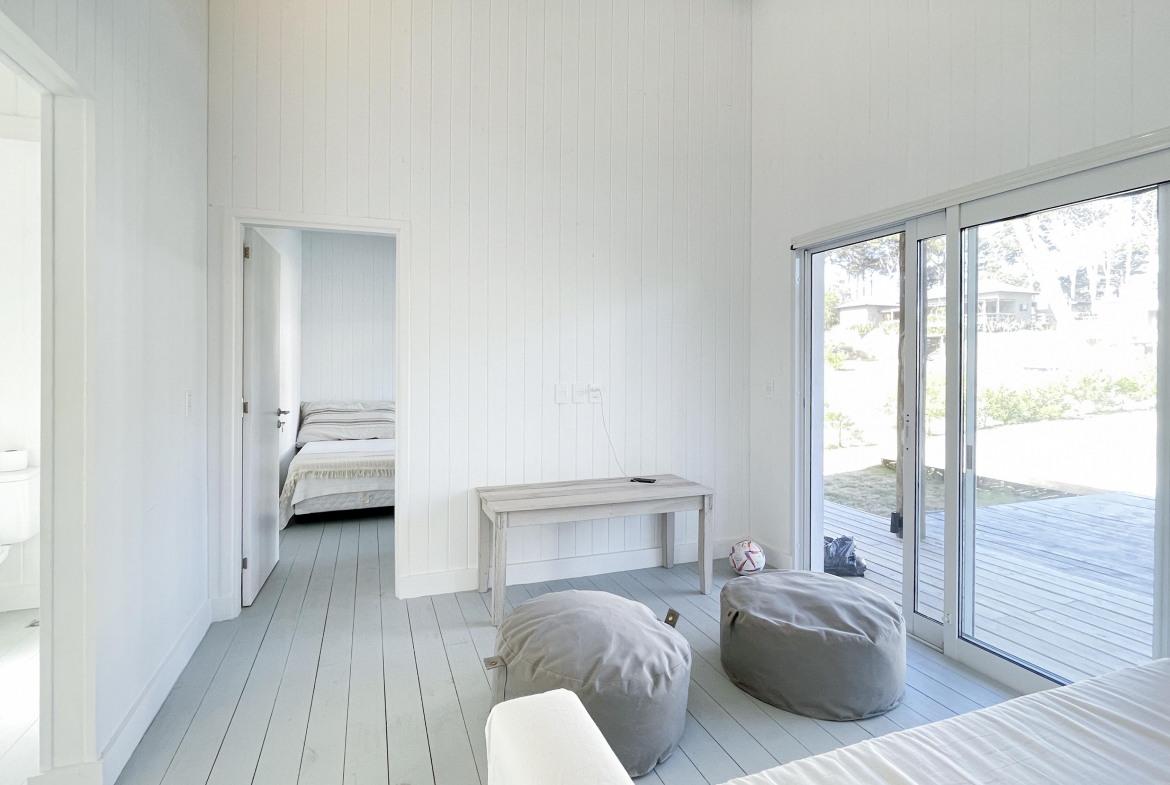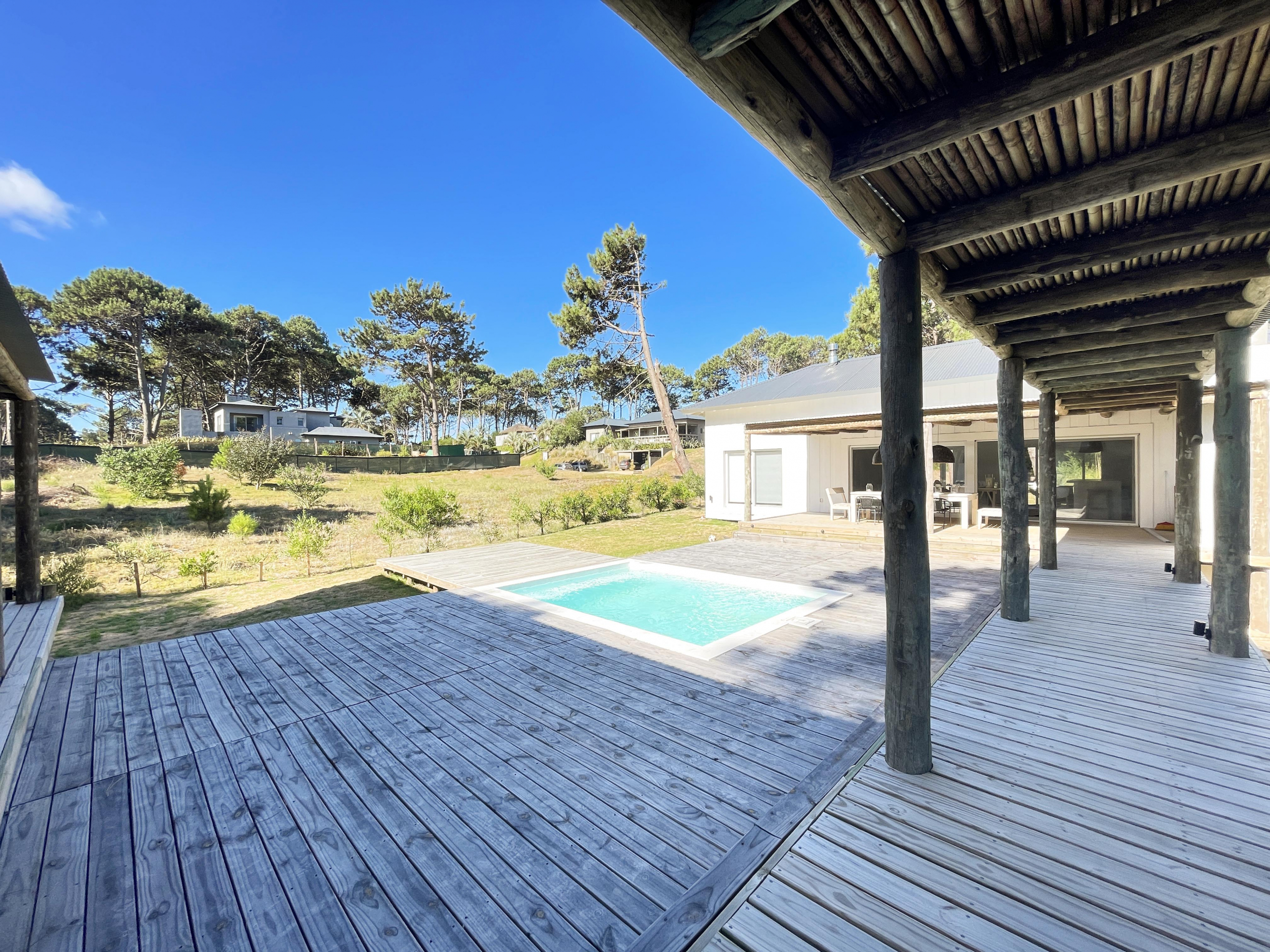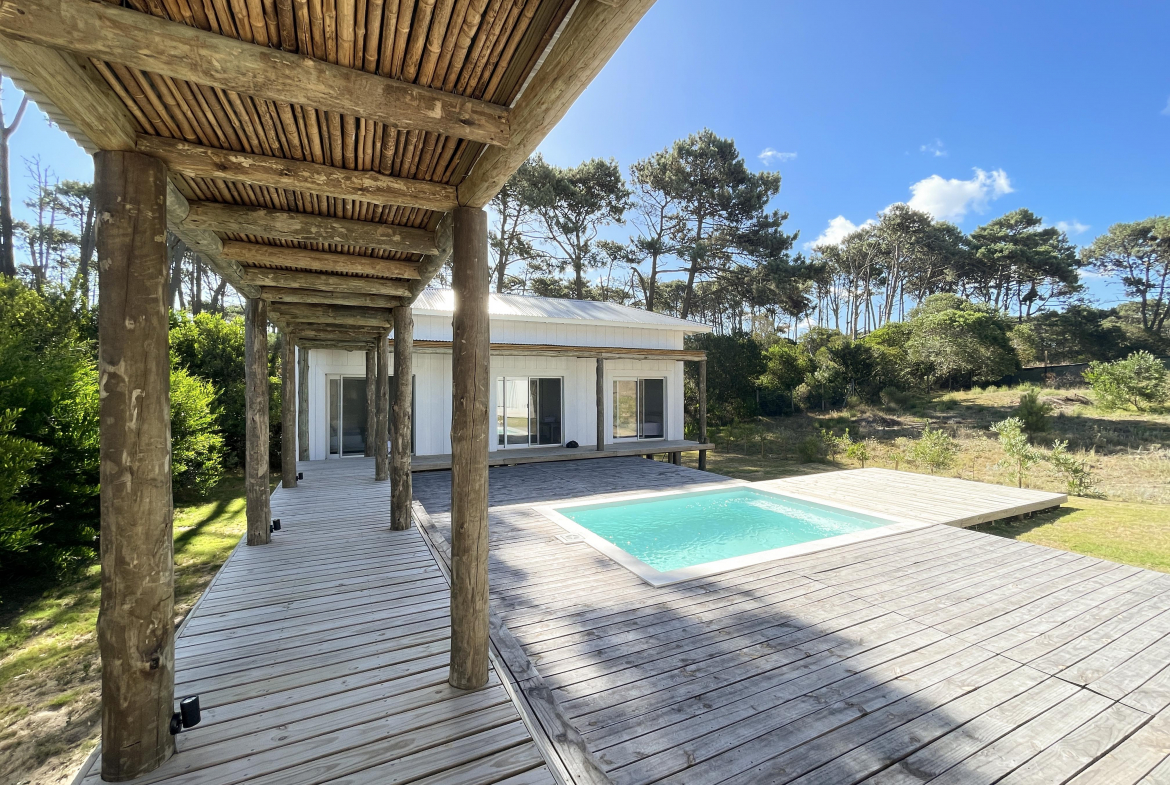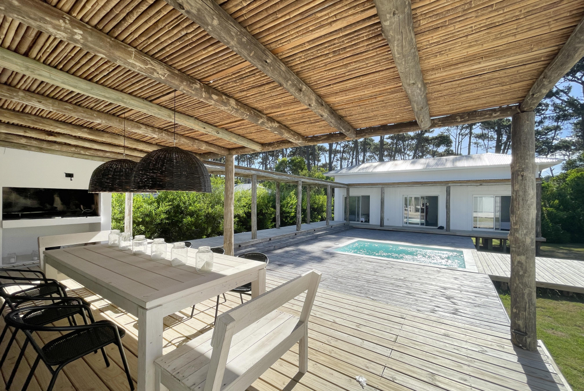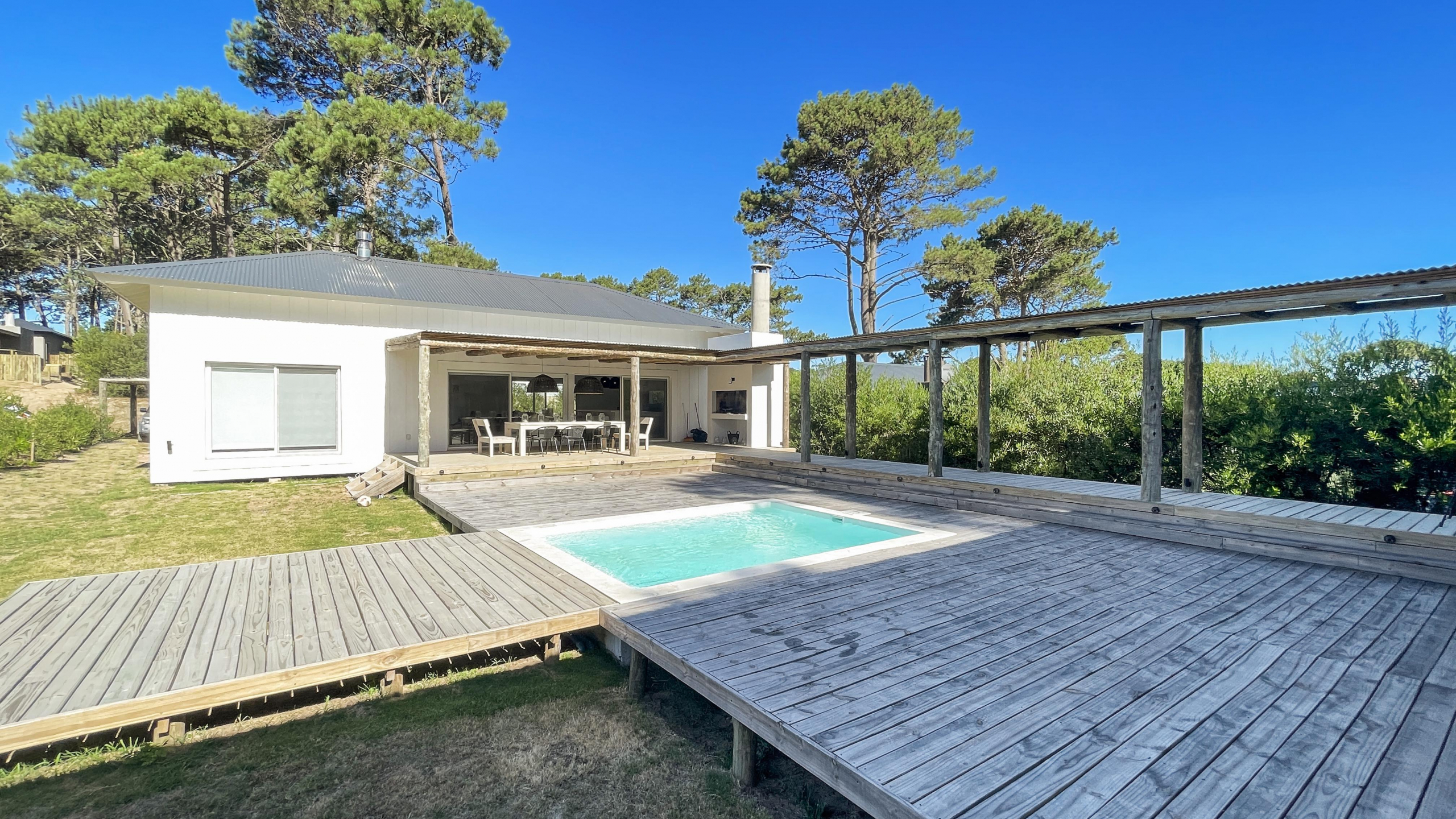 Desarrollada toda en una planta, consta en volumen principal con espacios comunes, toillete y master suite. Espacioso living comedor y cocina integrados con amplios ventanales al deck.