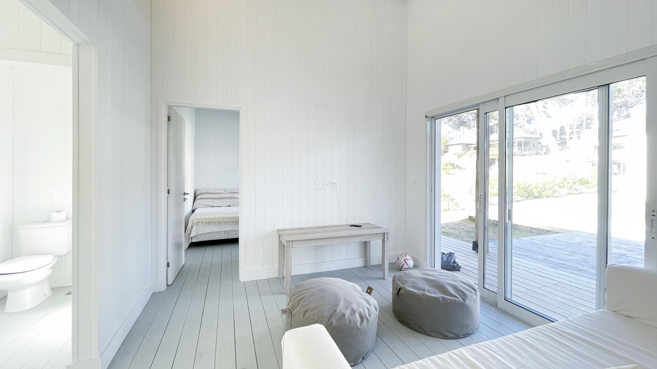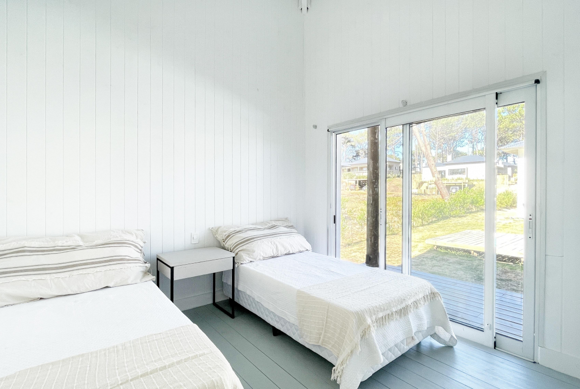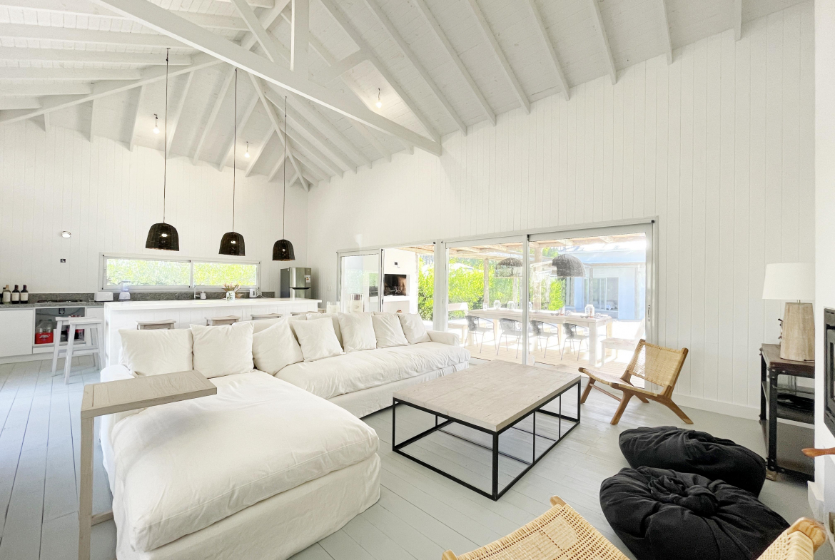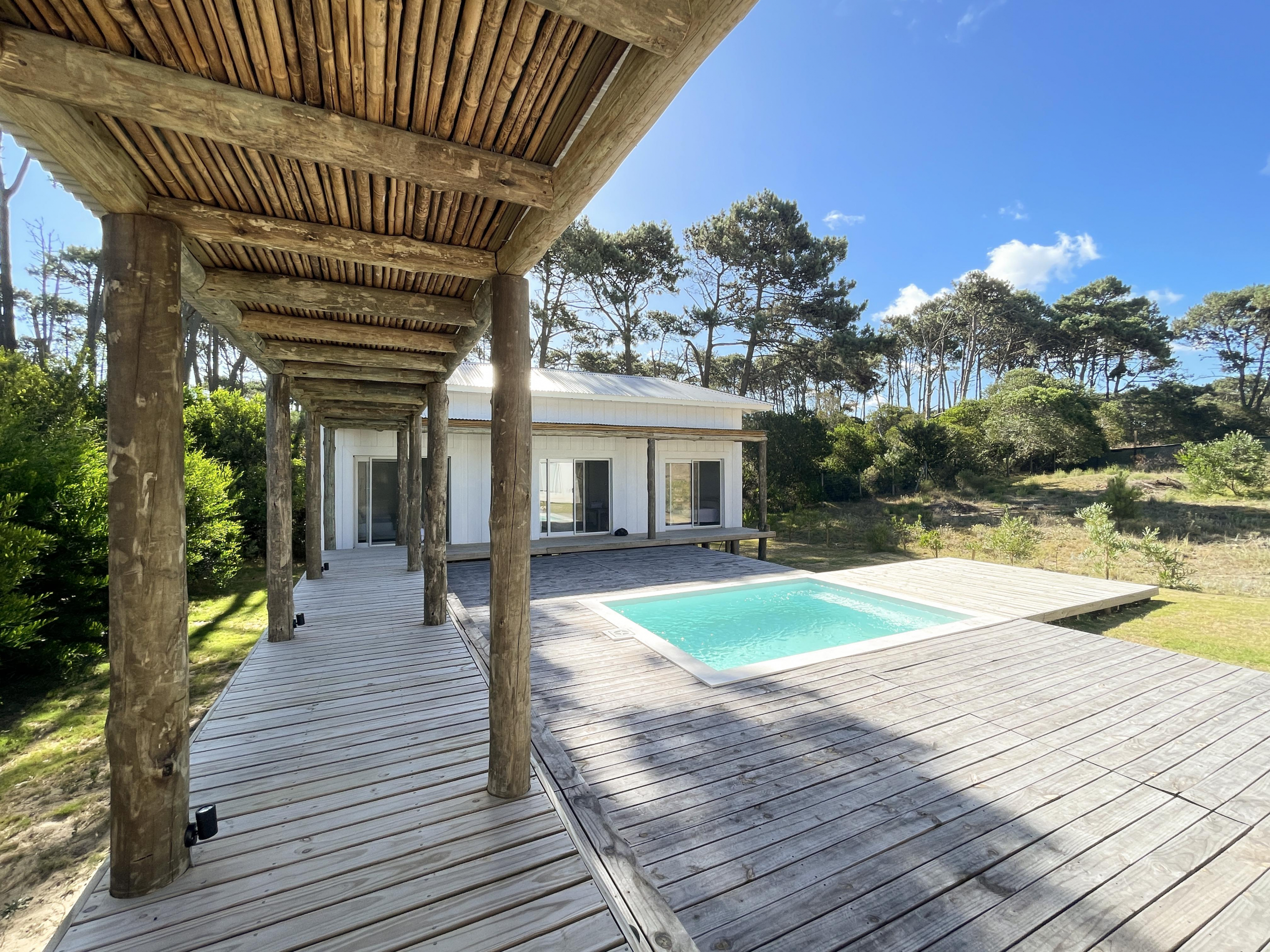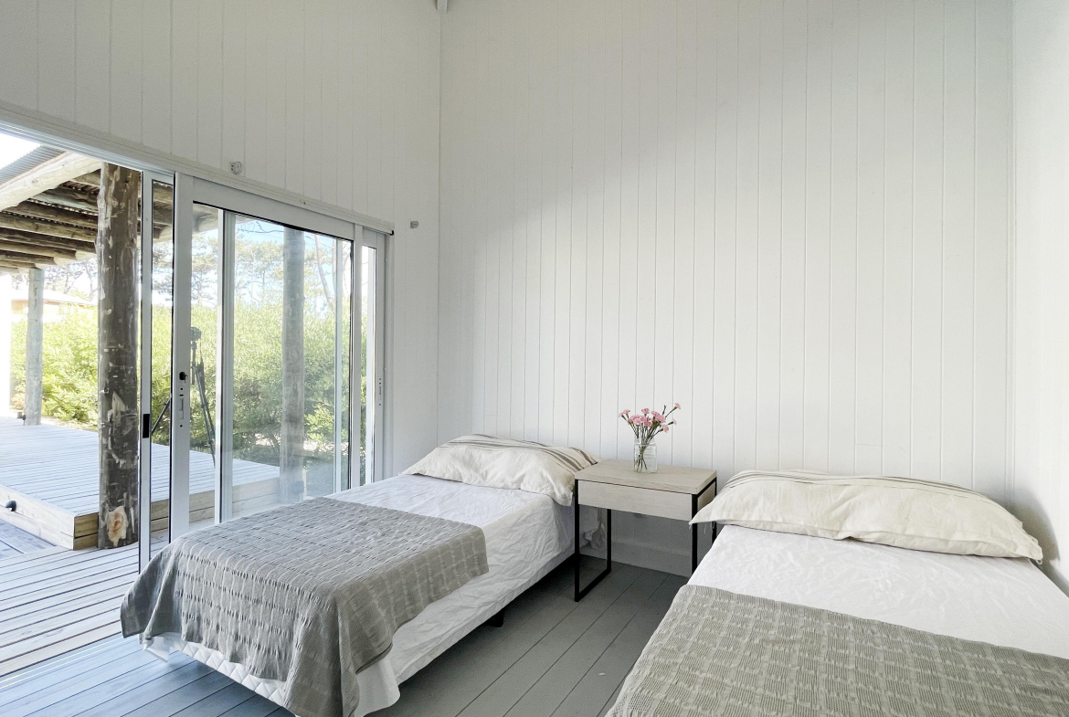 Desarrollada toda en una planta, consta en volumen principal con espacios comunes, toillete y master suite. Espacioso living comedor y cocina integrados con amplios ventanales al deck.