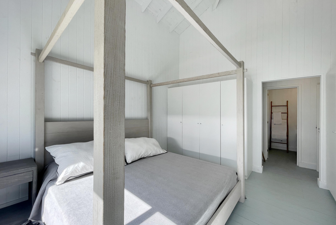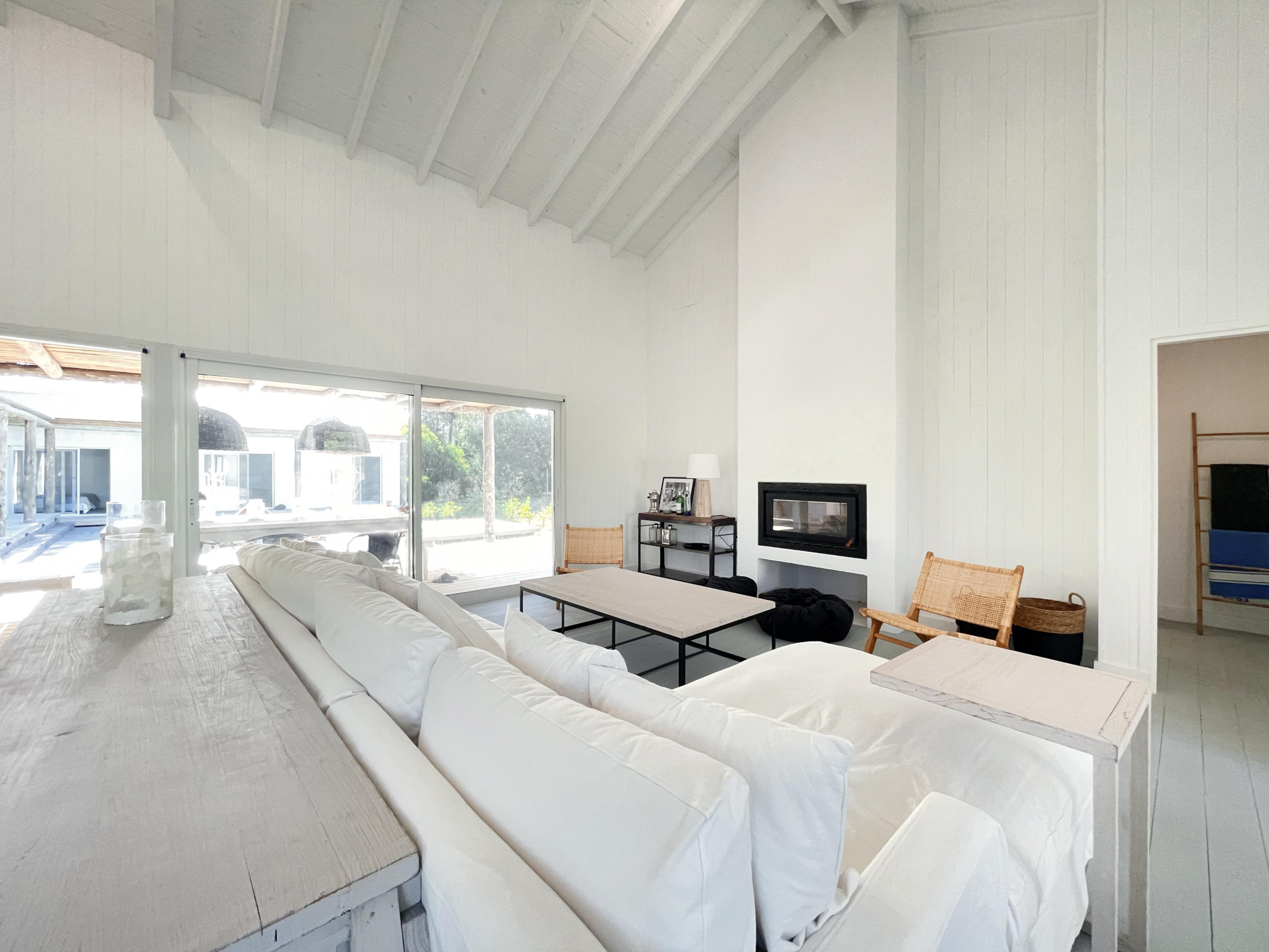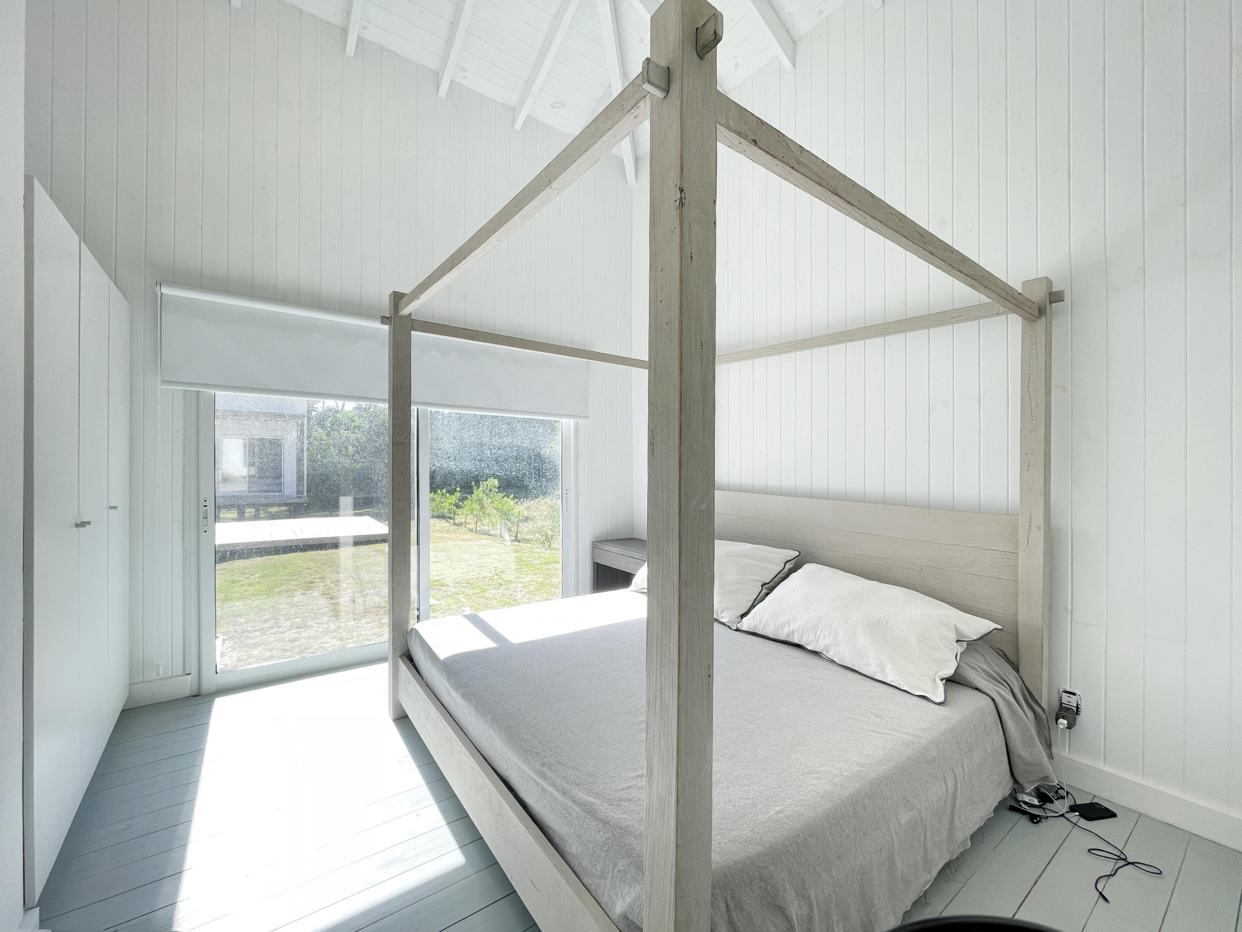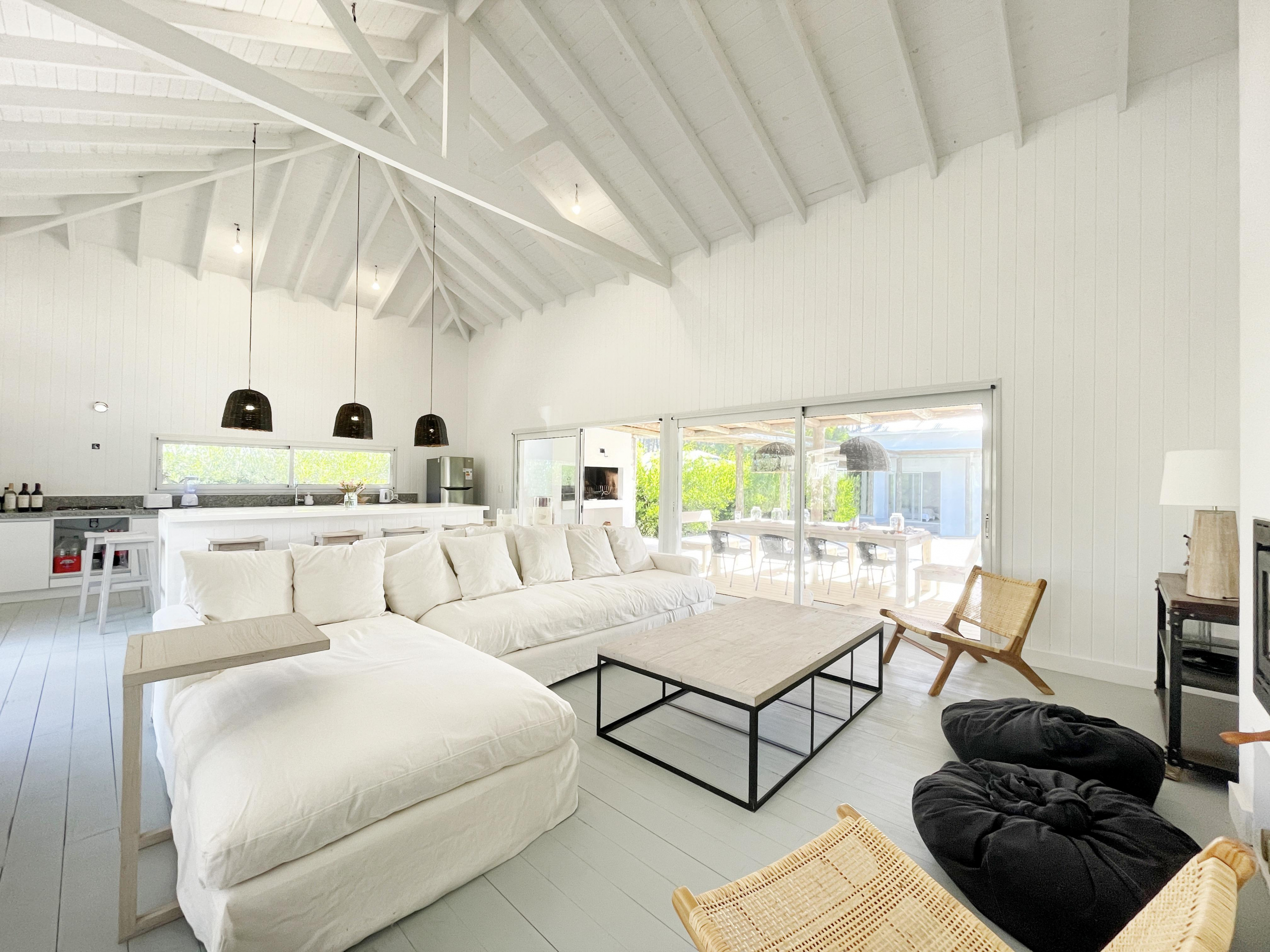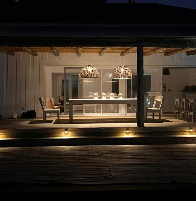 Desarrollada toda en una planta, consta en volumen principal con espacios comunes, toillete y master suite. Espacioso living comedor y cocina integrados con amplios ventanales al deck.