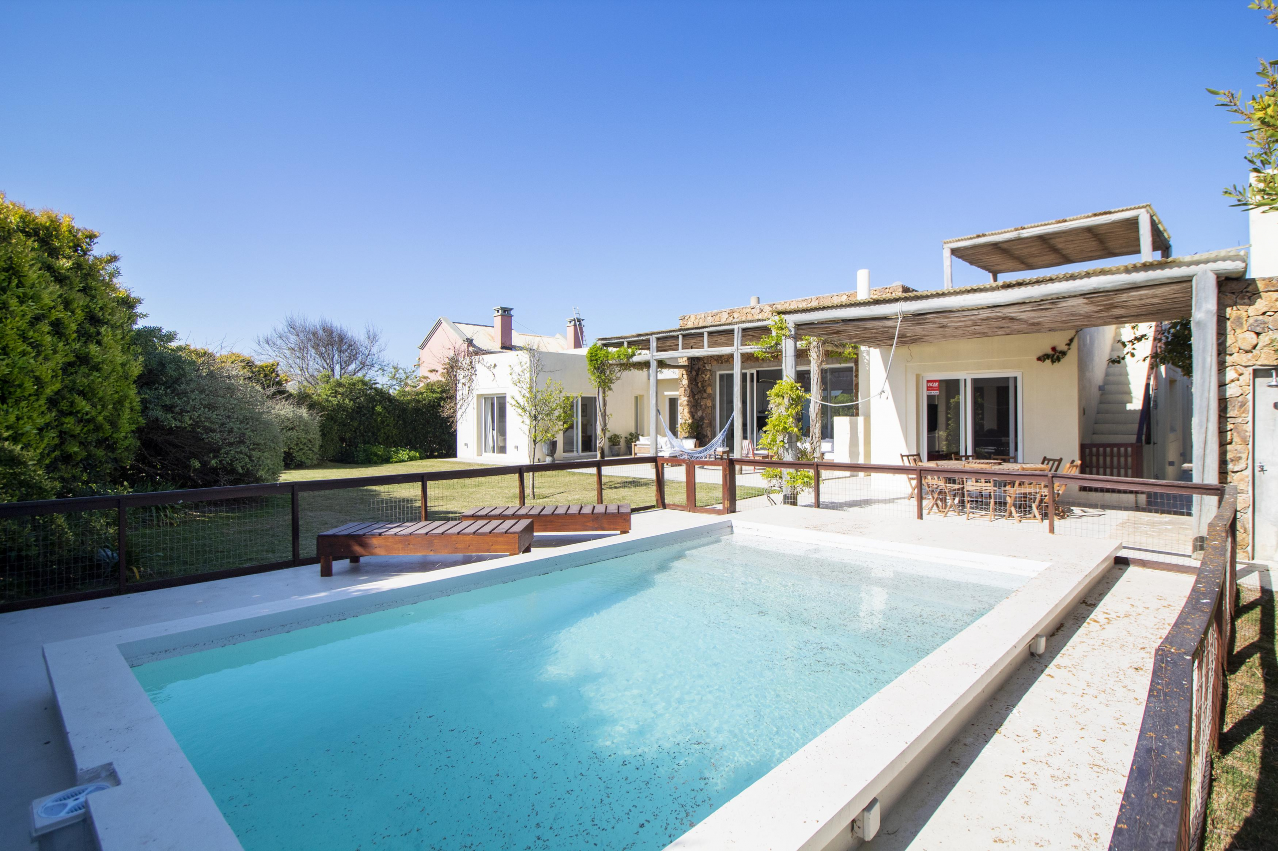 Dependencia, lavadero, parrilla cubierta y piscina cercada. Agradable y acogedor jardin.