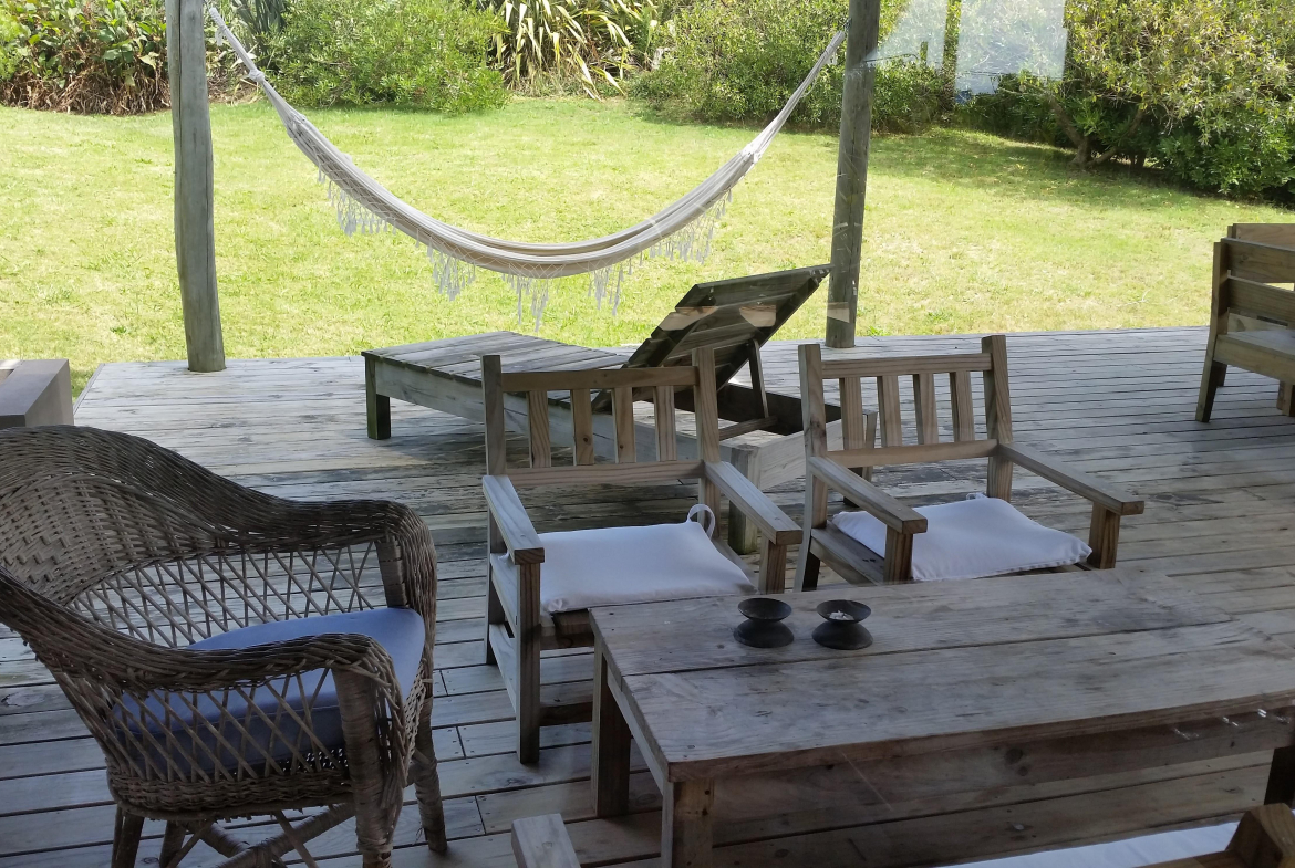 Amplio jardín en la parte trasera de la casa. Vista al mar, playa brava desde varios puntos de la casa.