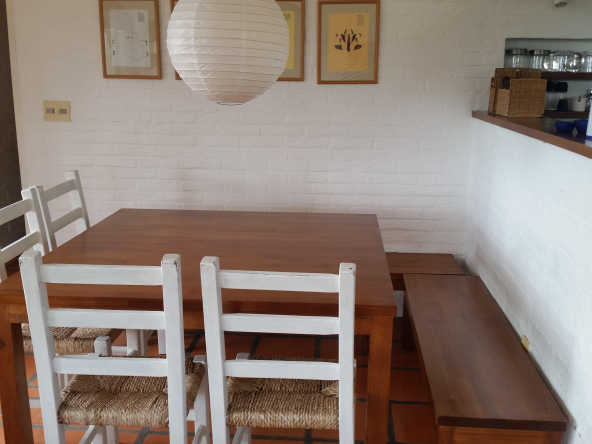 House of solid construction and classic in José Ignacio. Located a few steps from the brava beach and with a nice view of it, we find this house with three bedrooms, one of them in suite. The main living room has a nice living room of good capacity with access to the terrace and barbecue. The integrated dining room is next to the kitchen separated by a serving hatch or bar. Outside on a large deck, the house offers a very good barbecue with tables and benches.