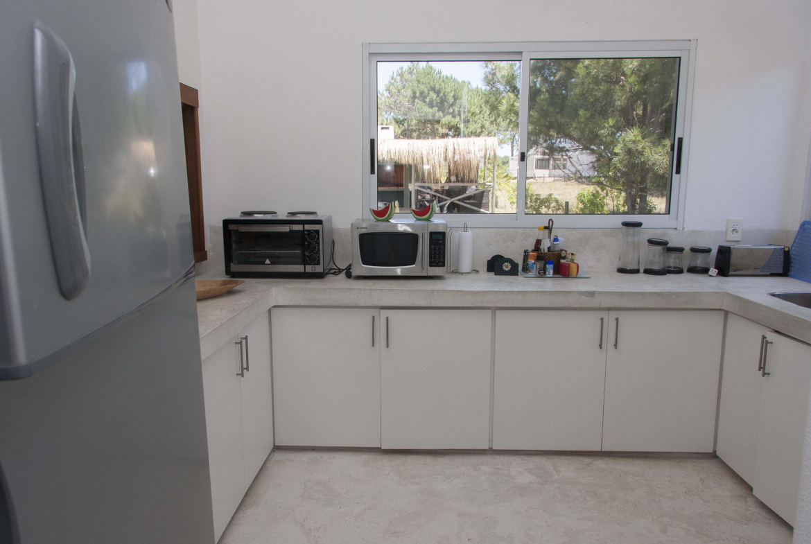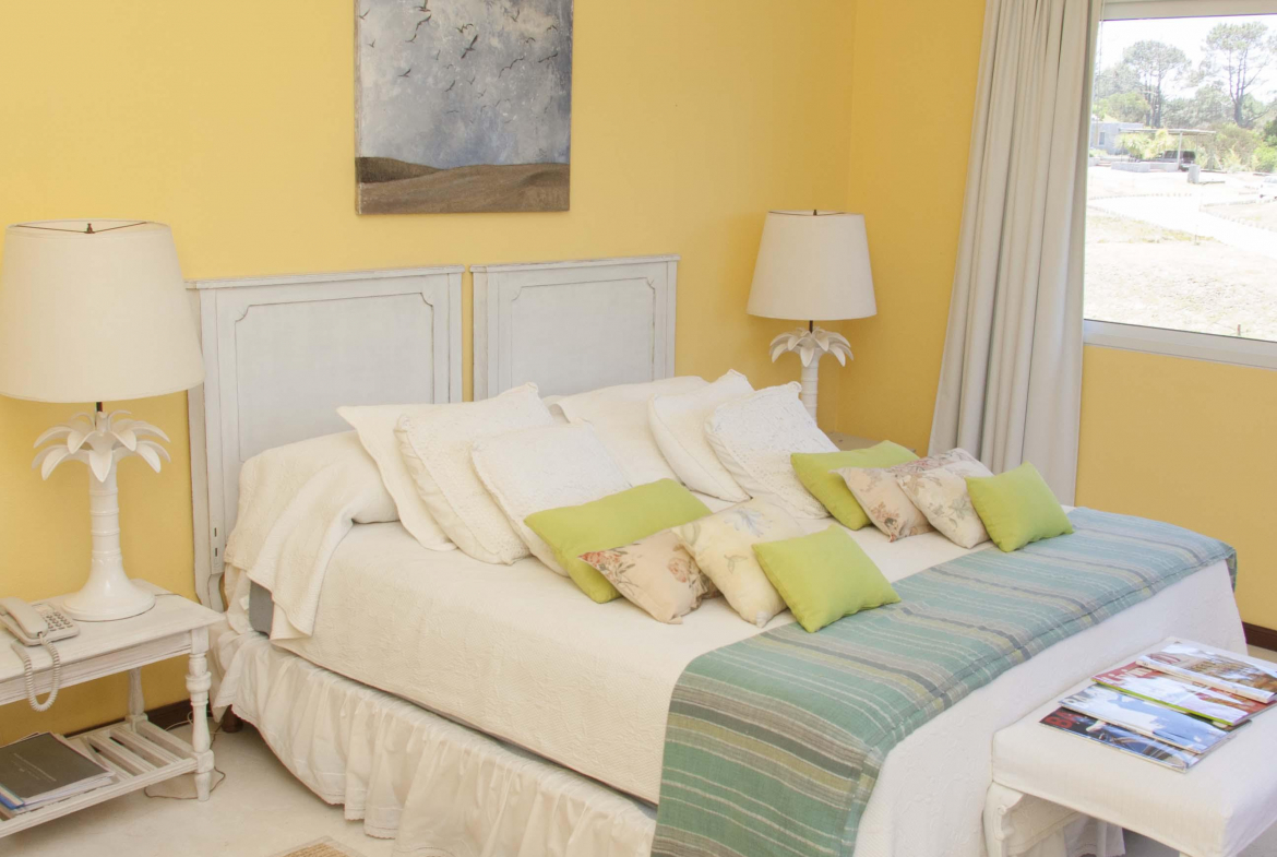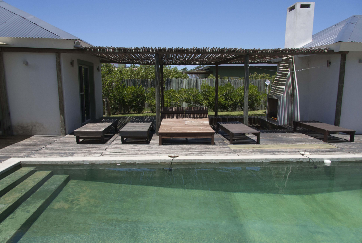 Casa cálida, súper cómoda y de amplia capacidad. Esta propiedad ubicada dentro del barrio cerrado Pinar del Faro, cuenta con 4 dormitorios dos de ellos en suite con aire acondicionado y los restantes con dos camas individuales cada uno.