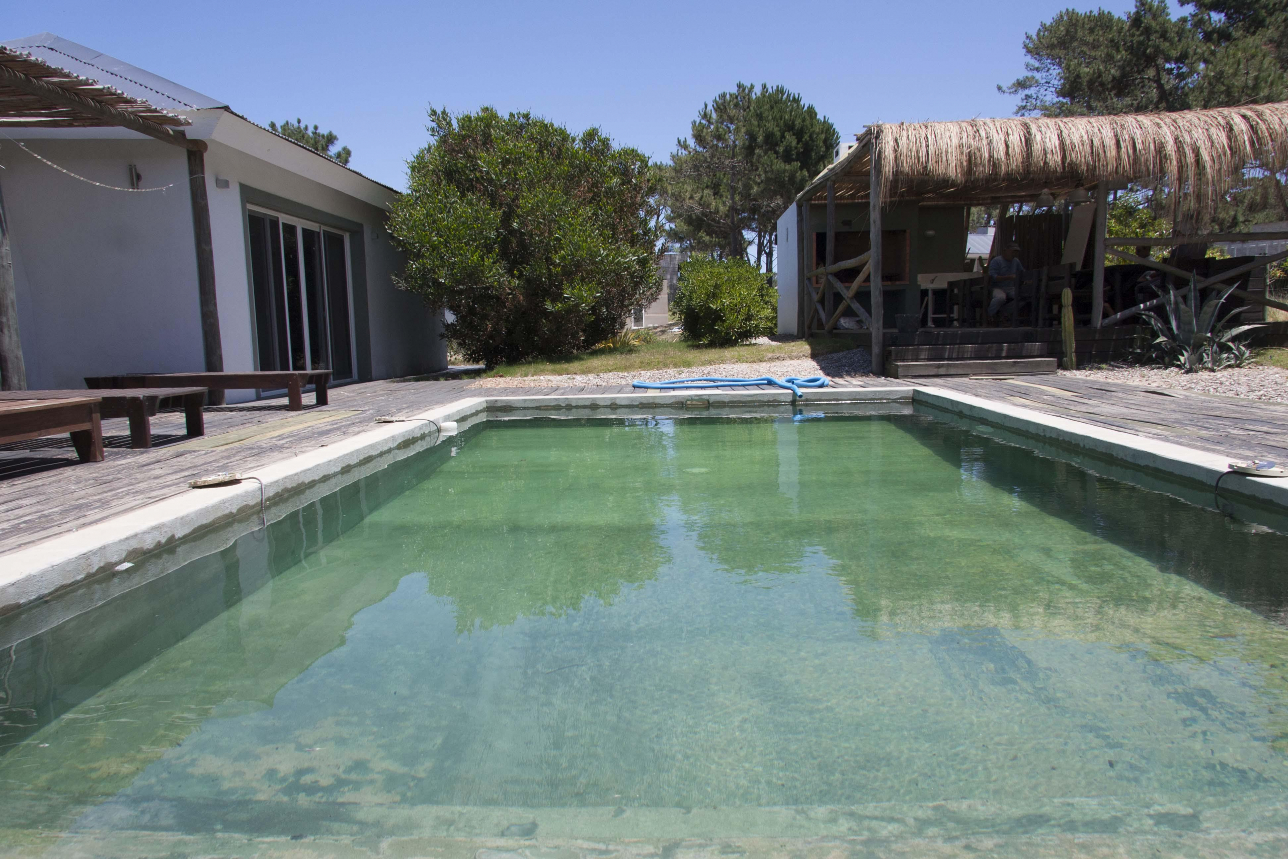 Cuenta con una muy buena piscina propia de la casa y parrillero amplio techado.