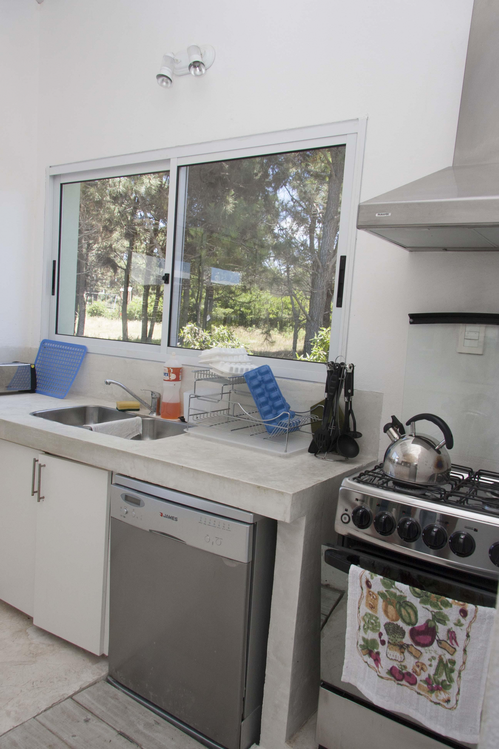 El bloque principal cuenta con tres de los dormitorios, confortable living, comedor y cocina independiente.