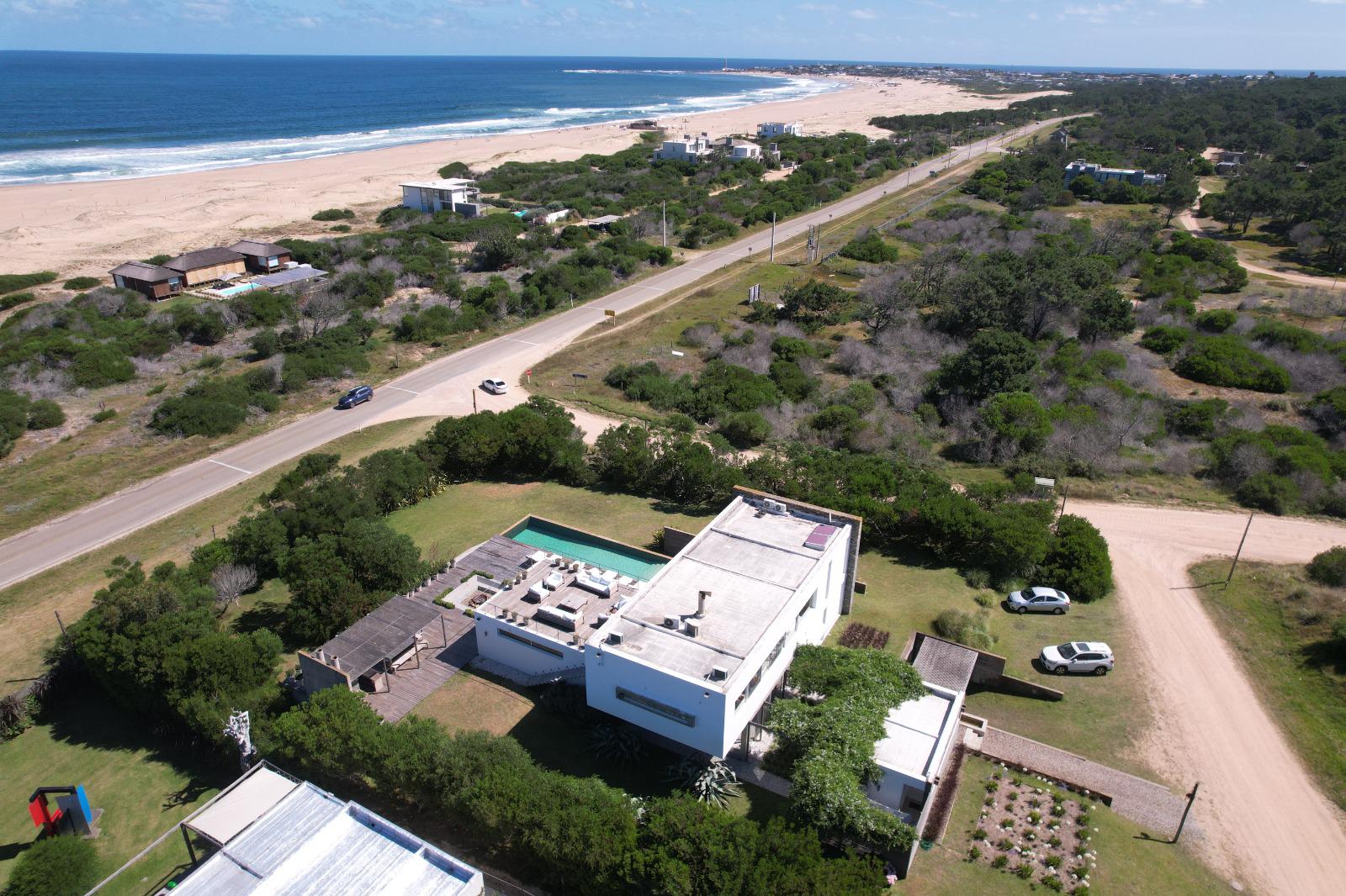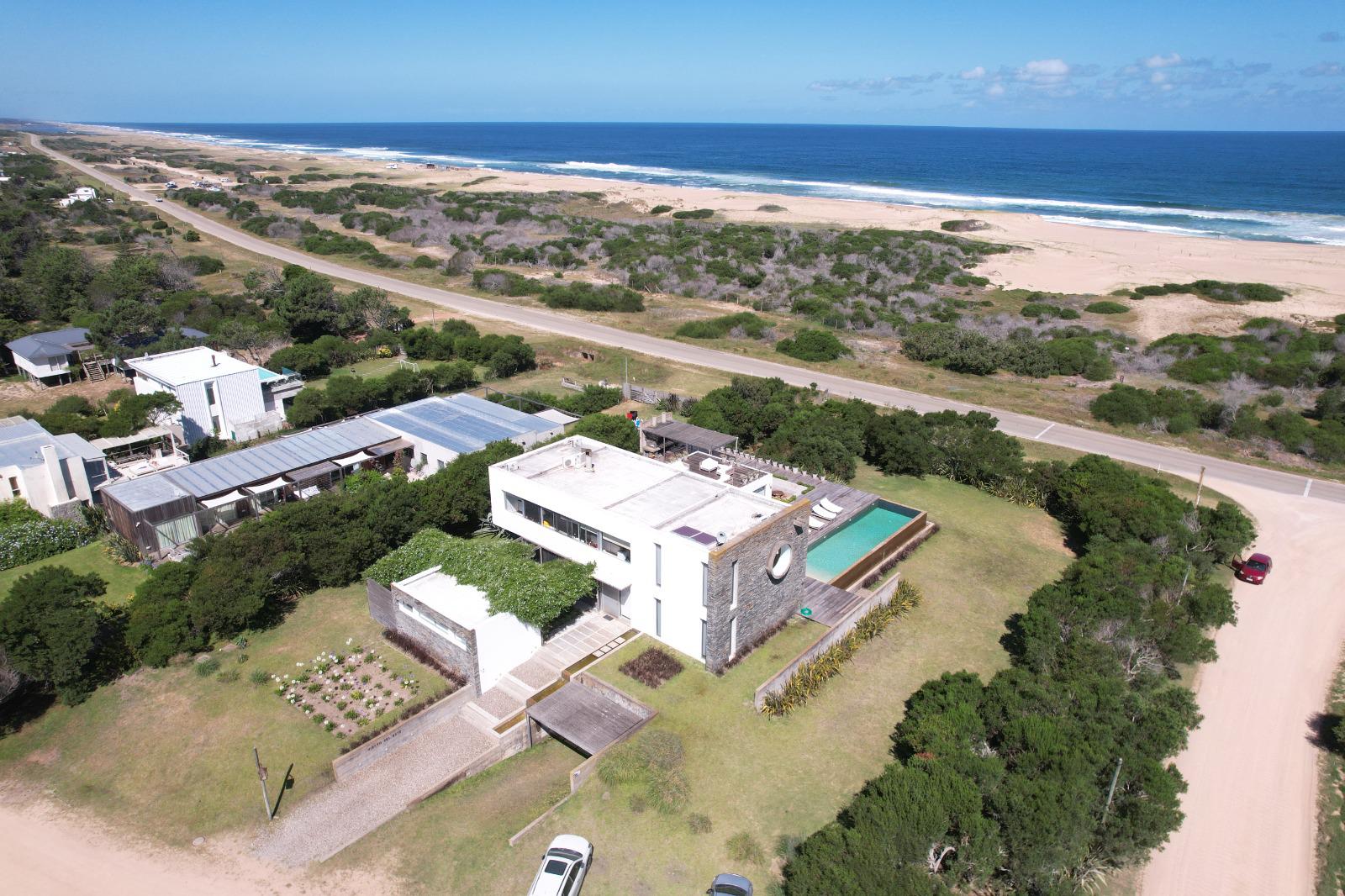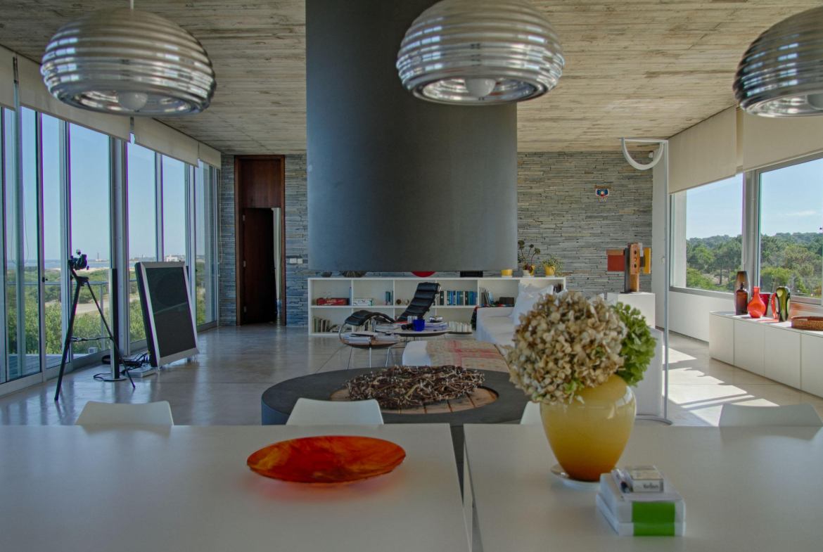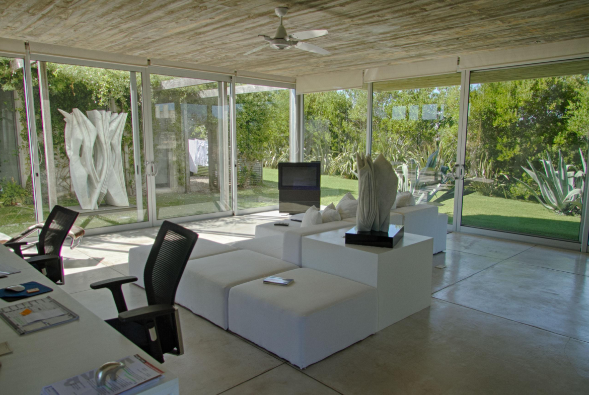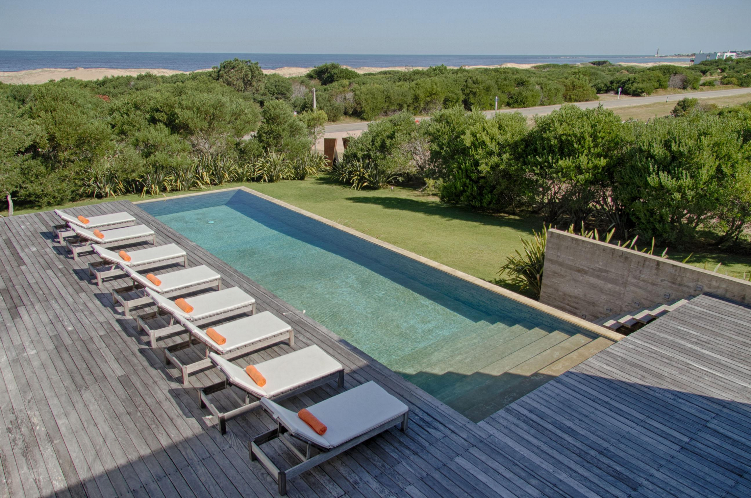 Cuenta de 4 dormitorios en suite amplios y cómodos dos en planta baja y dos en planta alta. Recepción con estudio y salida a deck y piscina. Area común en planta alta vidriada con vista al mar y al faro panorámica. Confortable living, comedor con mucha capacidad y buena cocina. Salida a deck exterior con varios sillones.