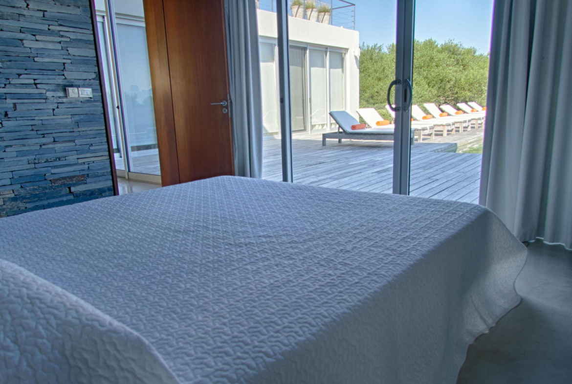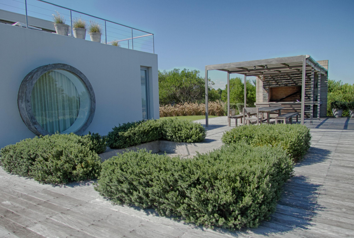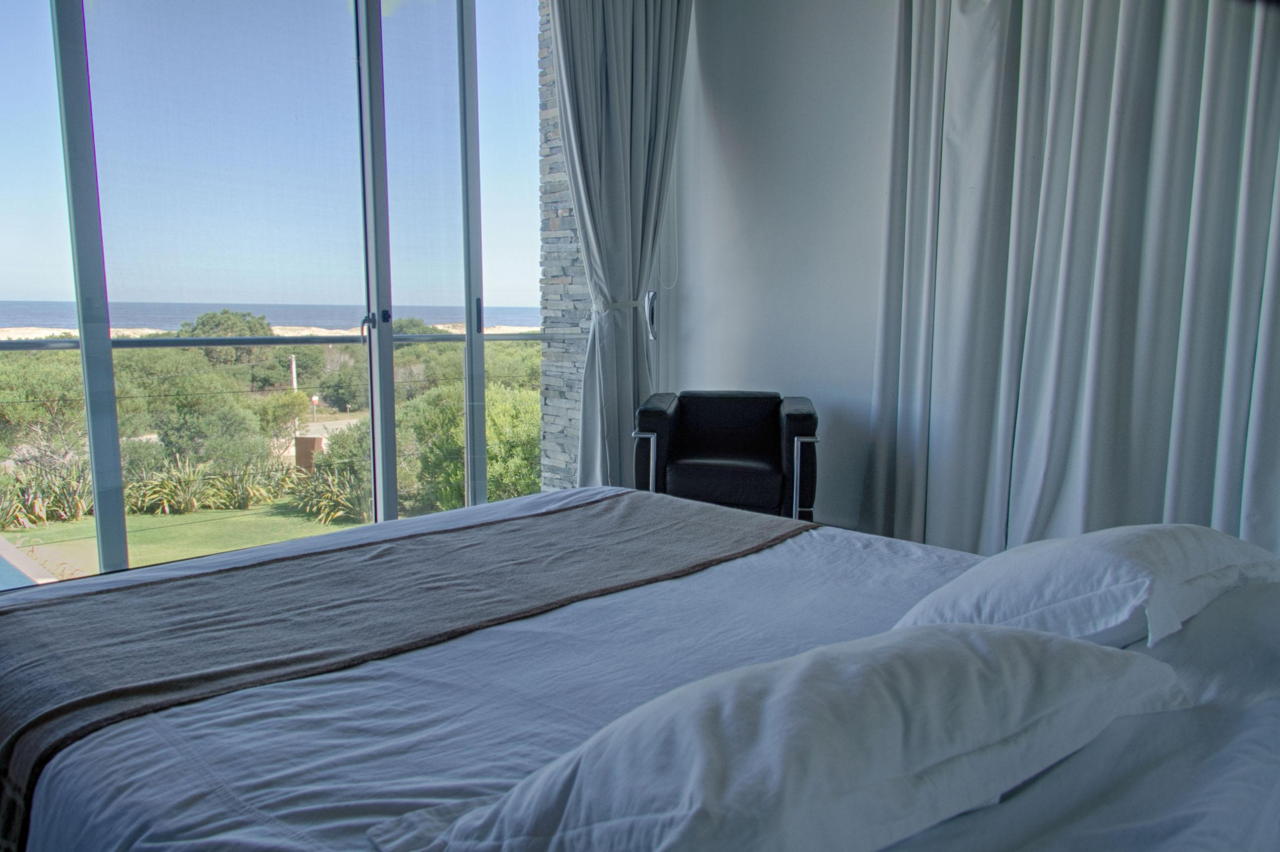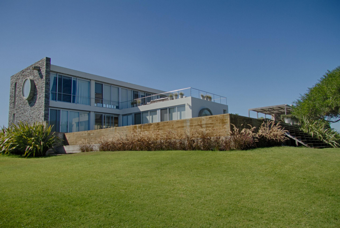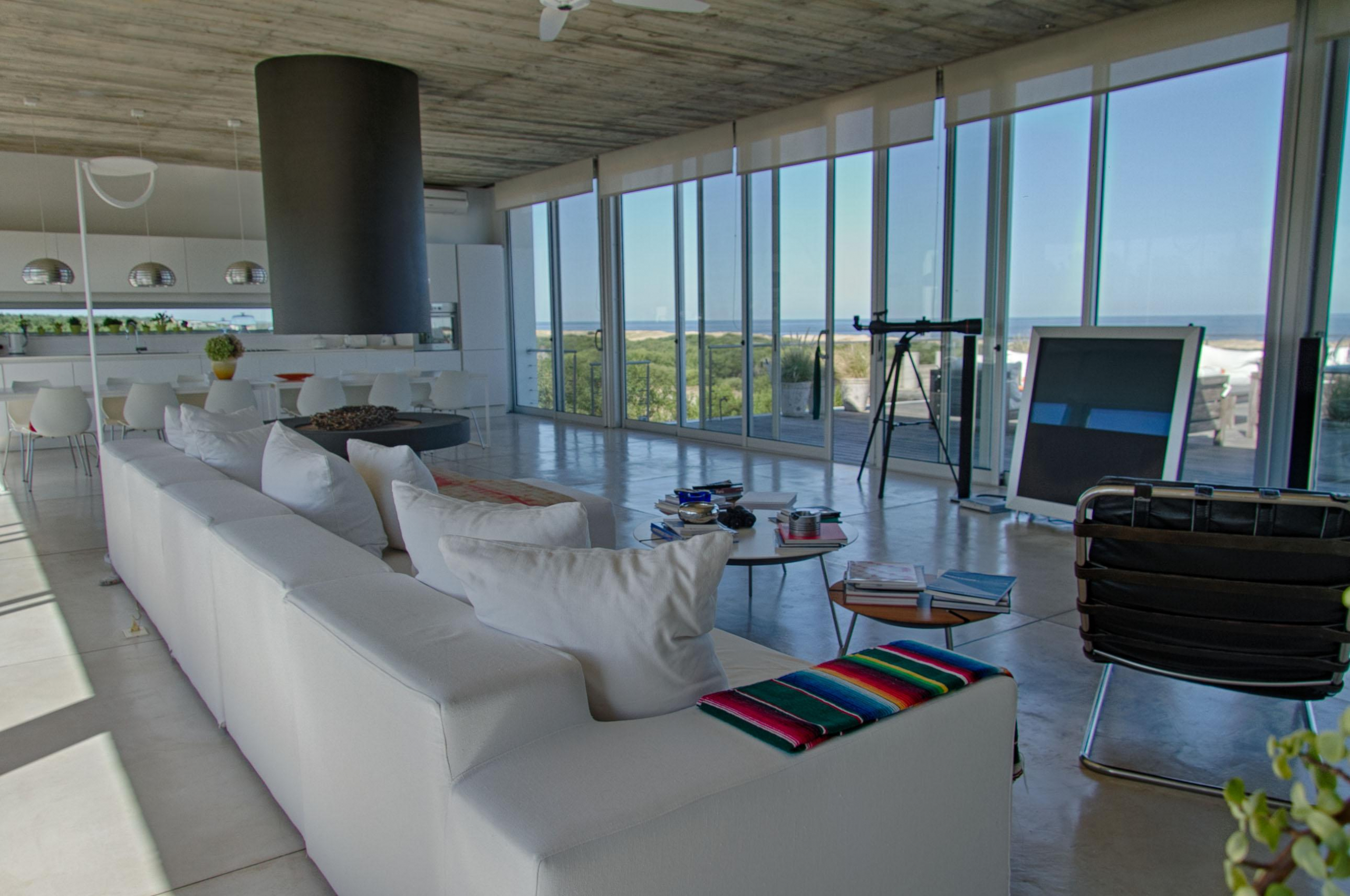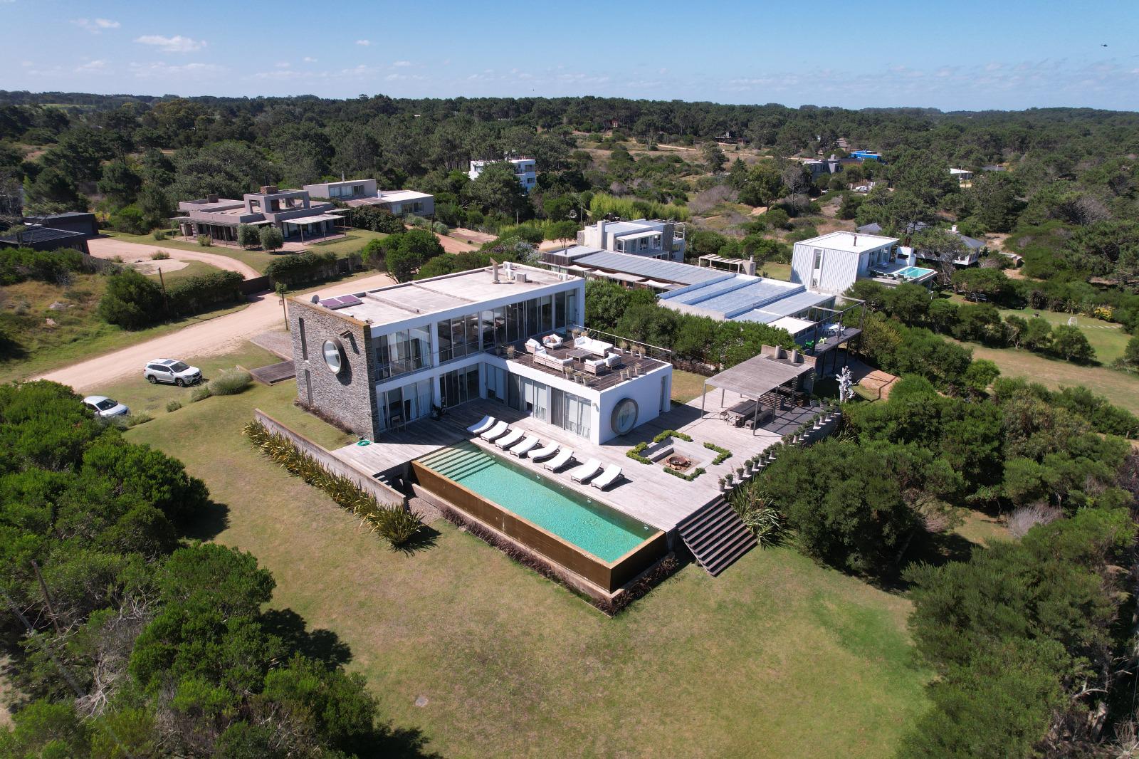 Cuenta de 4 dormitorios en suite amplios y cómodos dos en planta baja y dos en planta alta. Recepción con estudio y salida a deck y piscina. Area común en planta alta vidriada con vista al mar y al faro panorámica. Confortable living, comedor con mucha capacidad y buena cocina. Salida a deck exterior con varios sillones.