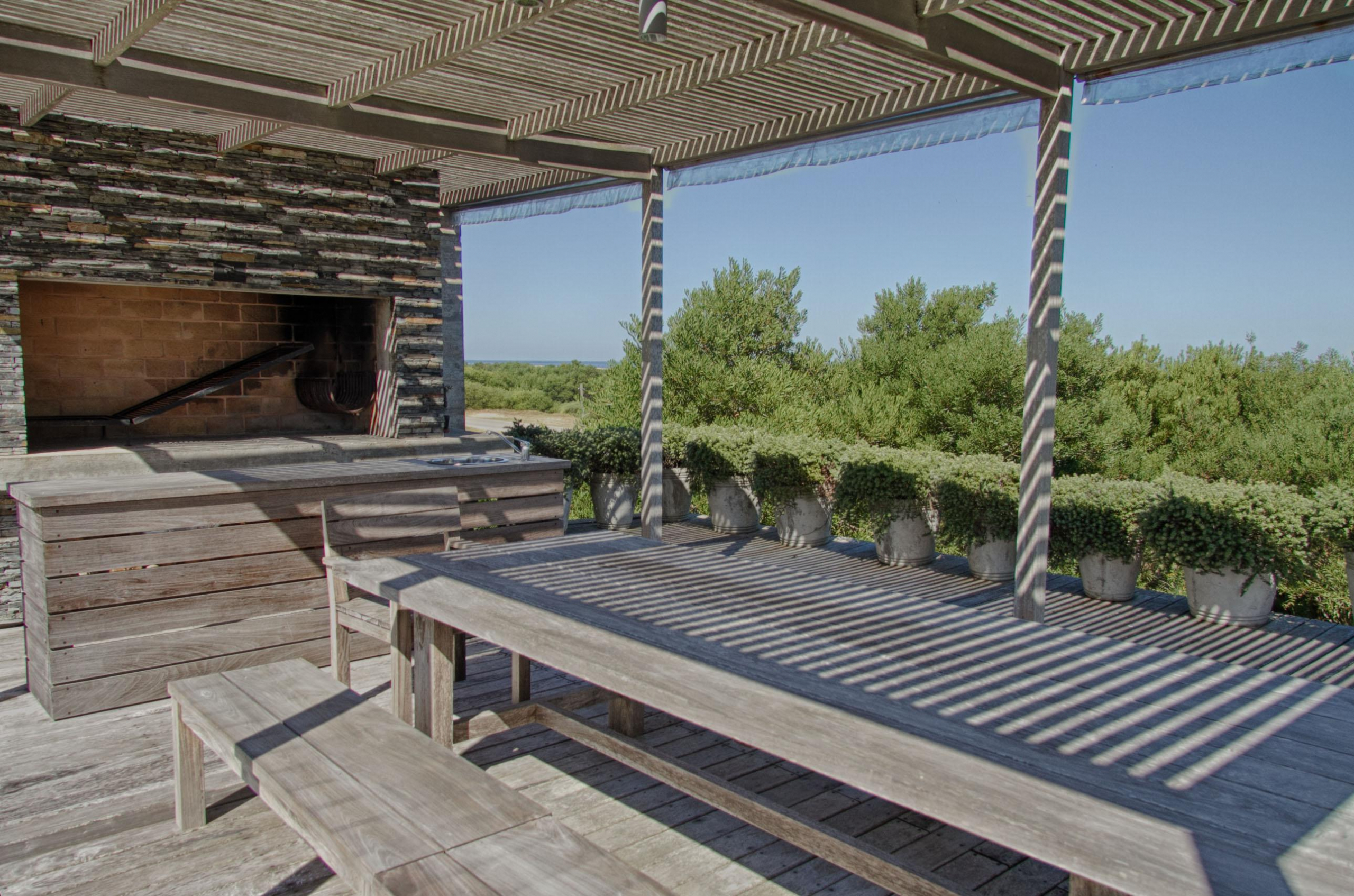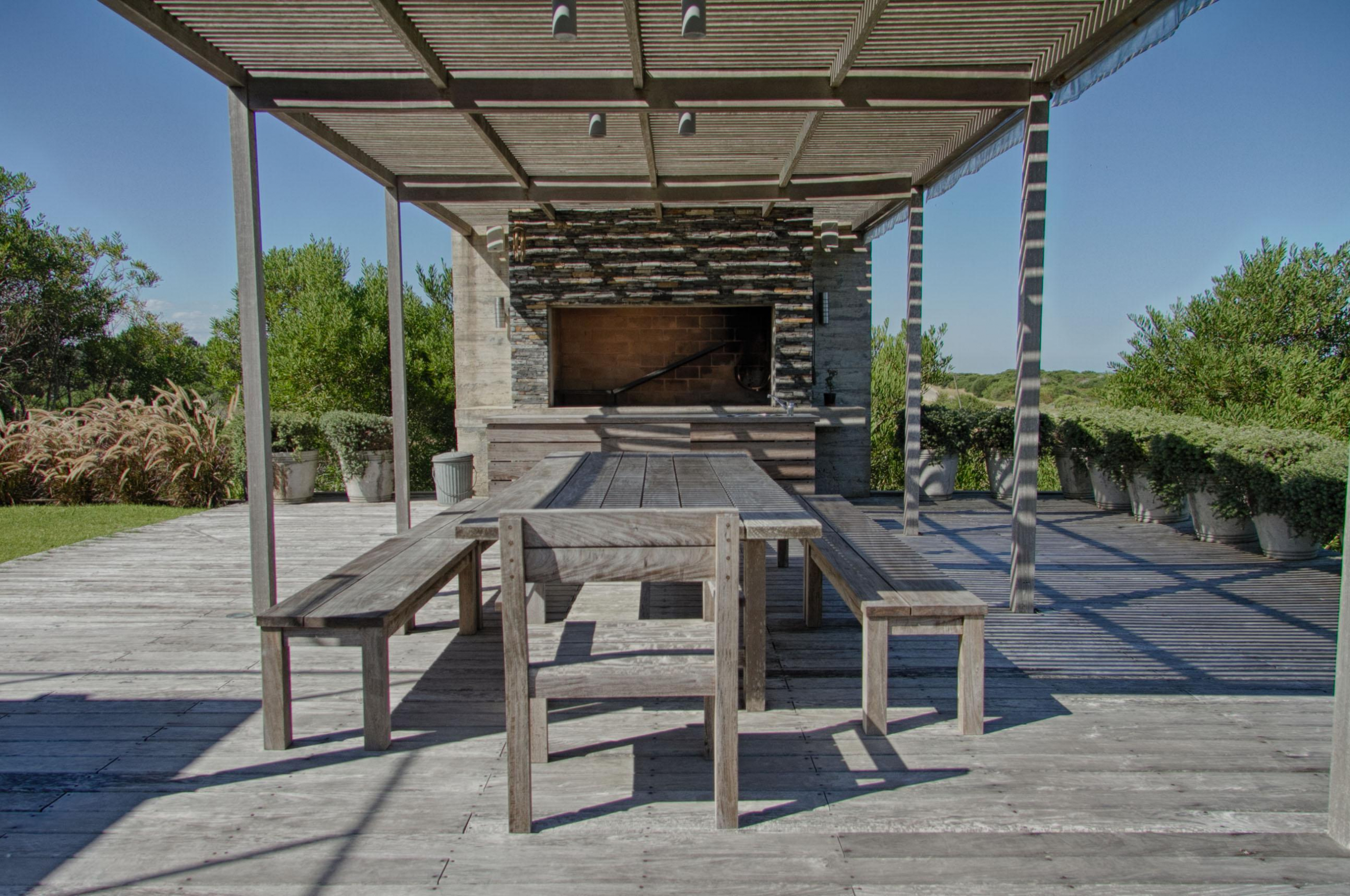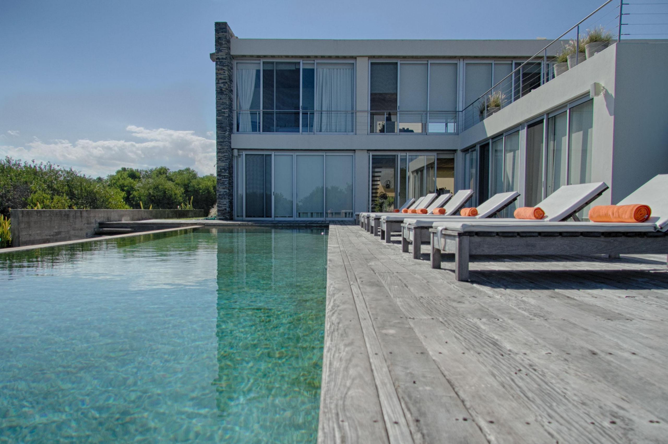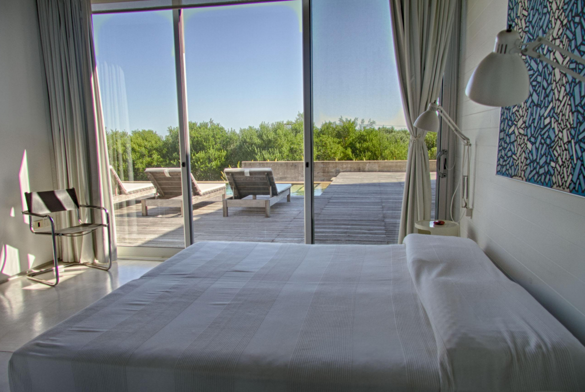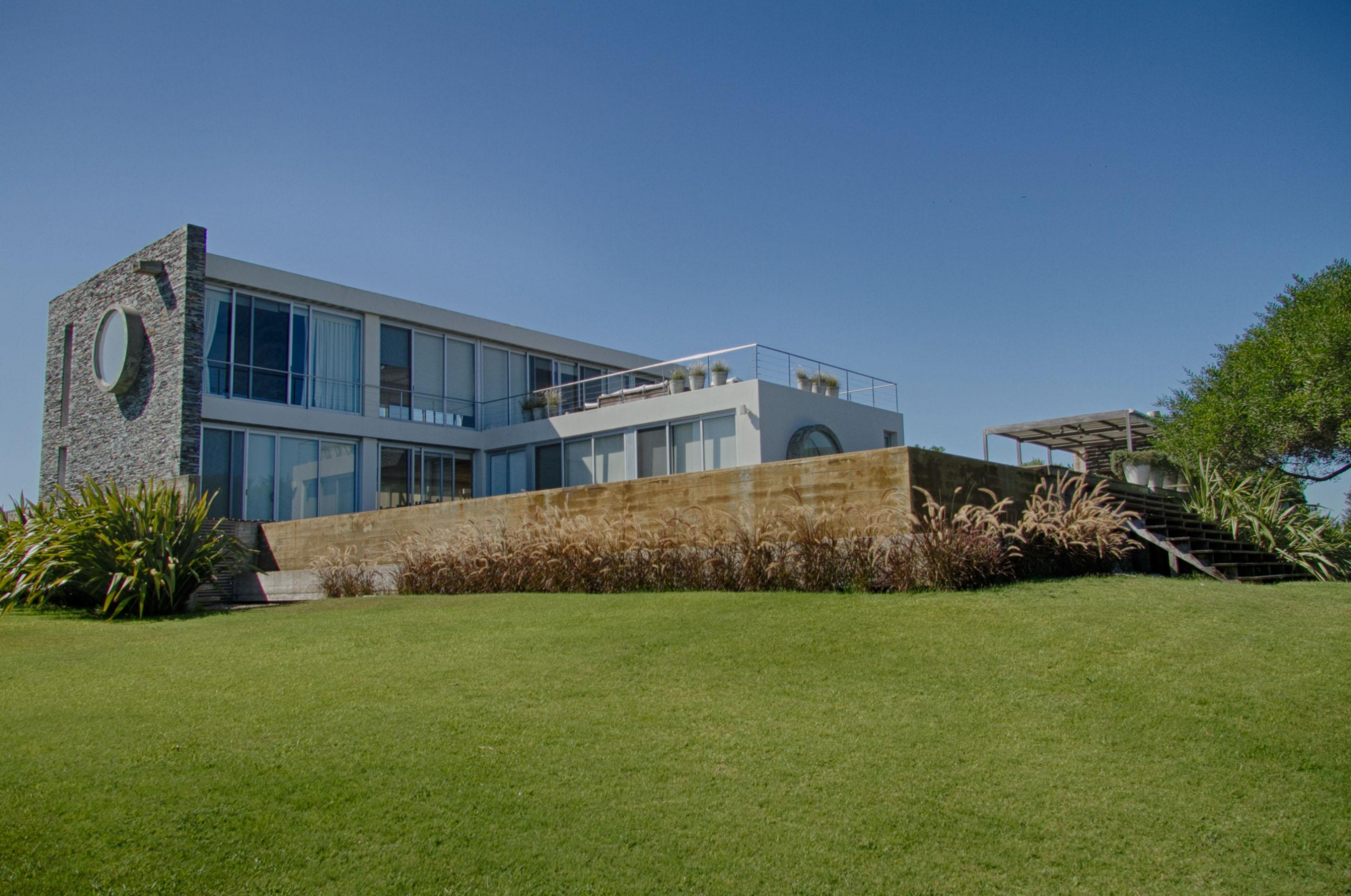 Cuenta de 4 dormitorios en suite amplios y cómodos dos en planta baja y dos en planta alta. Recepción con estudio y salida a deck y piscina. Area común en planta alta vidriada con vista al mar y al faro panorámica. Confortable living, comedor con mucha capacidad y buena cocina. Salida a deck exterior con varios sillones.
