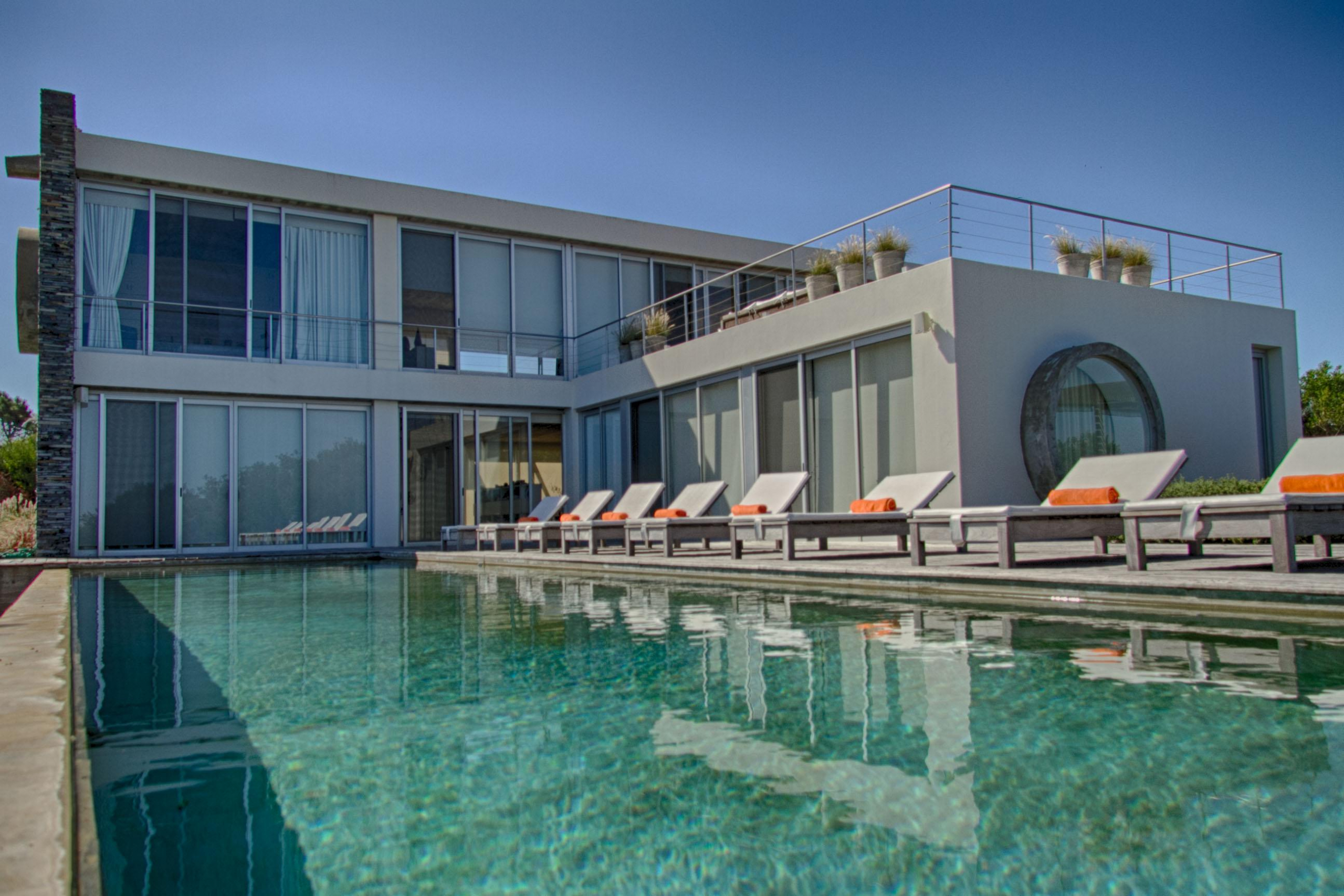 It has 4 spacious and comfortable in-suite bedrooms, two on the first floor and two upstairs. Reception with study and access to deck and swimming pool. Common area upstairs glazed with panoramic ocean and lighthouse view. Comfortable living room, dining room with plenty of capacity and good kitchen. Exit to outdoor deck with several armchairs.
