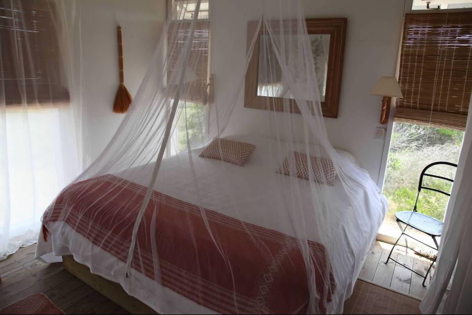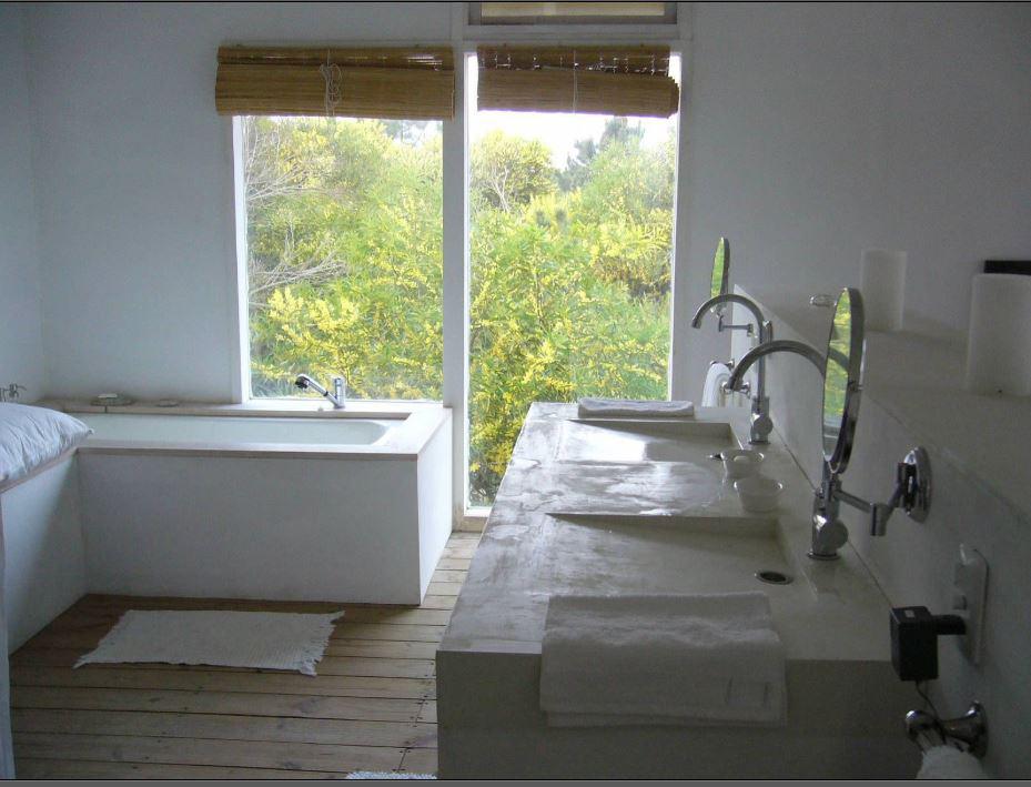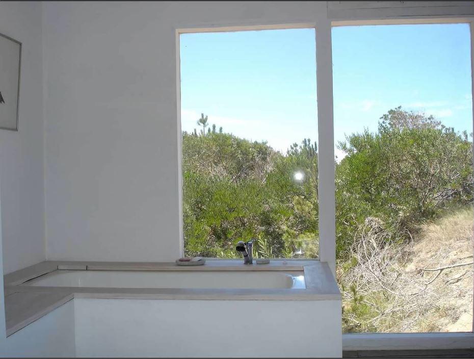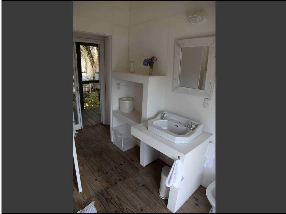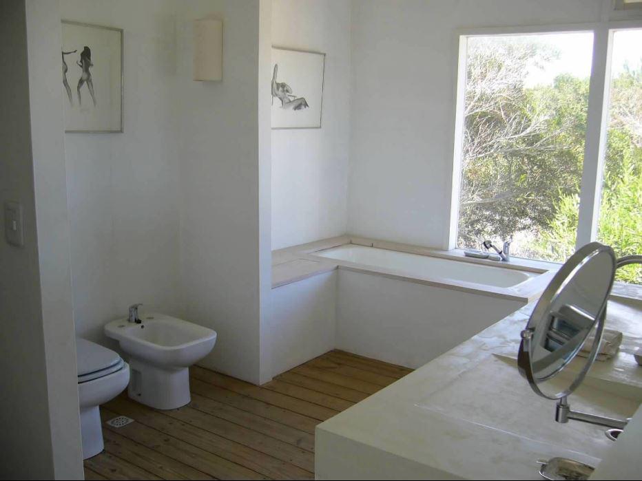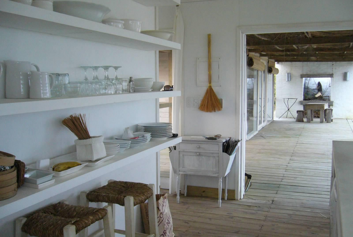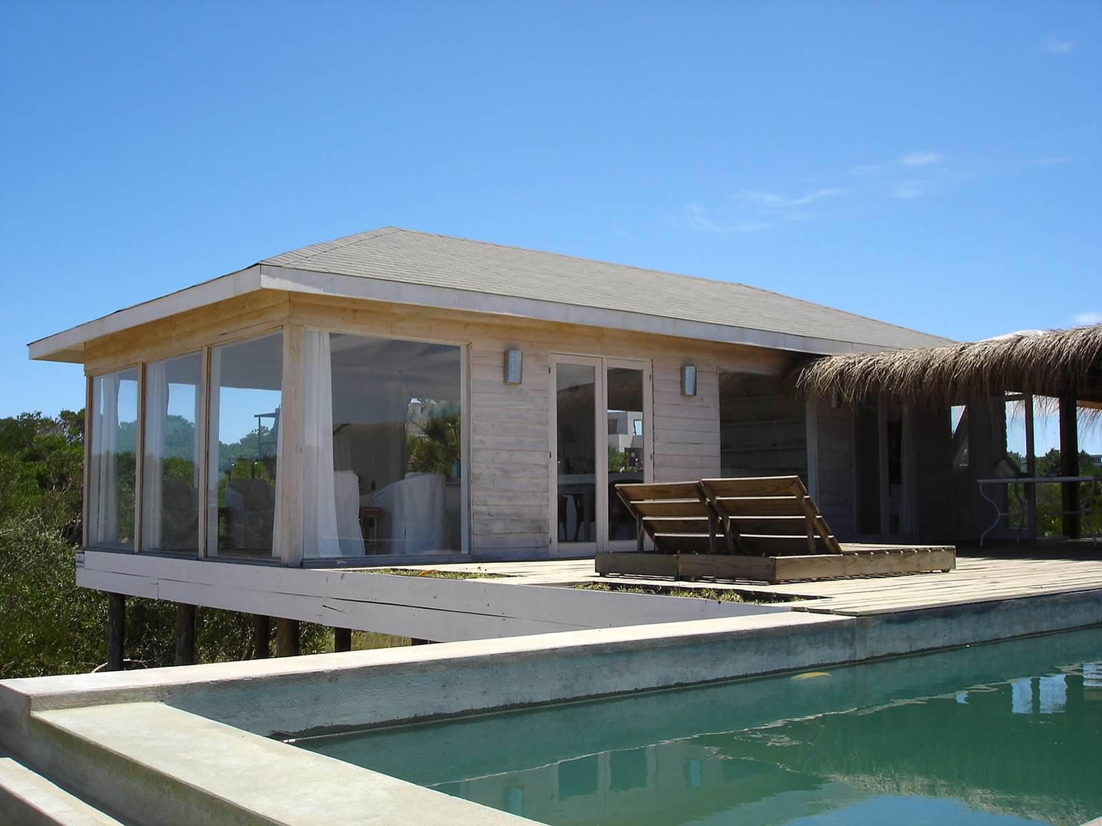 En cuanto a la casa, se compone de 3 dormitorios, uno de ellos en suite (con baño abierto e integrado a la suite) y de buen tamaño. Los restantes, en un modulo independiente, se encuentra un dormitorio de huéspedes con cama matrimonial en semisuite con el tercer dormitorio que posee dos camas singles. El estar principal integra el living comedor con la cocina, con vista al mar; toilette y lavadero.