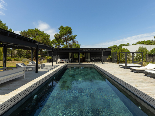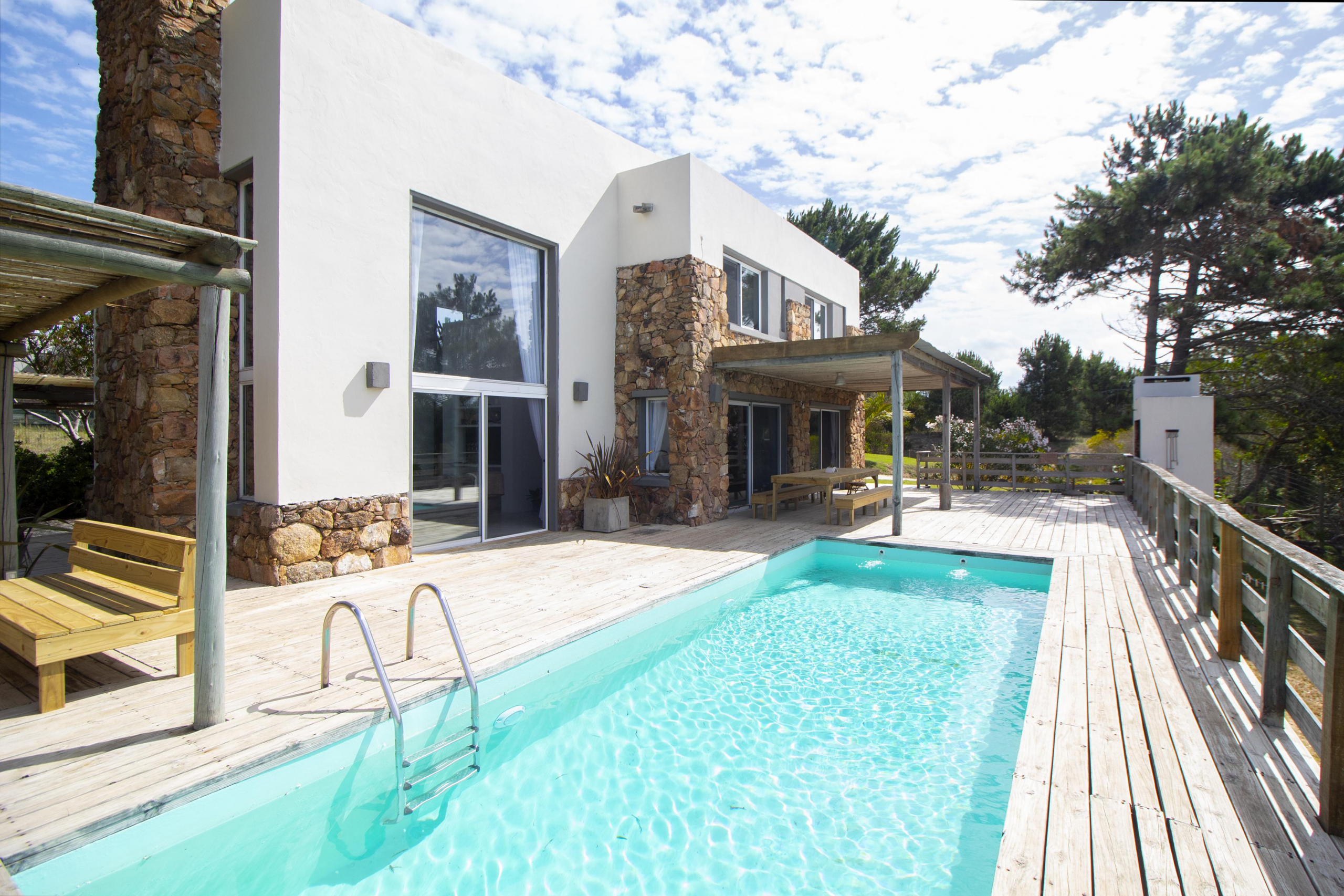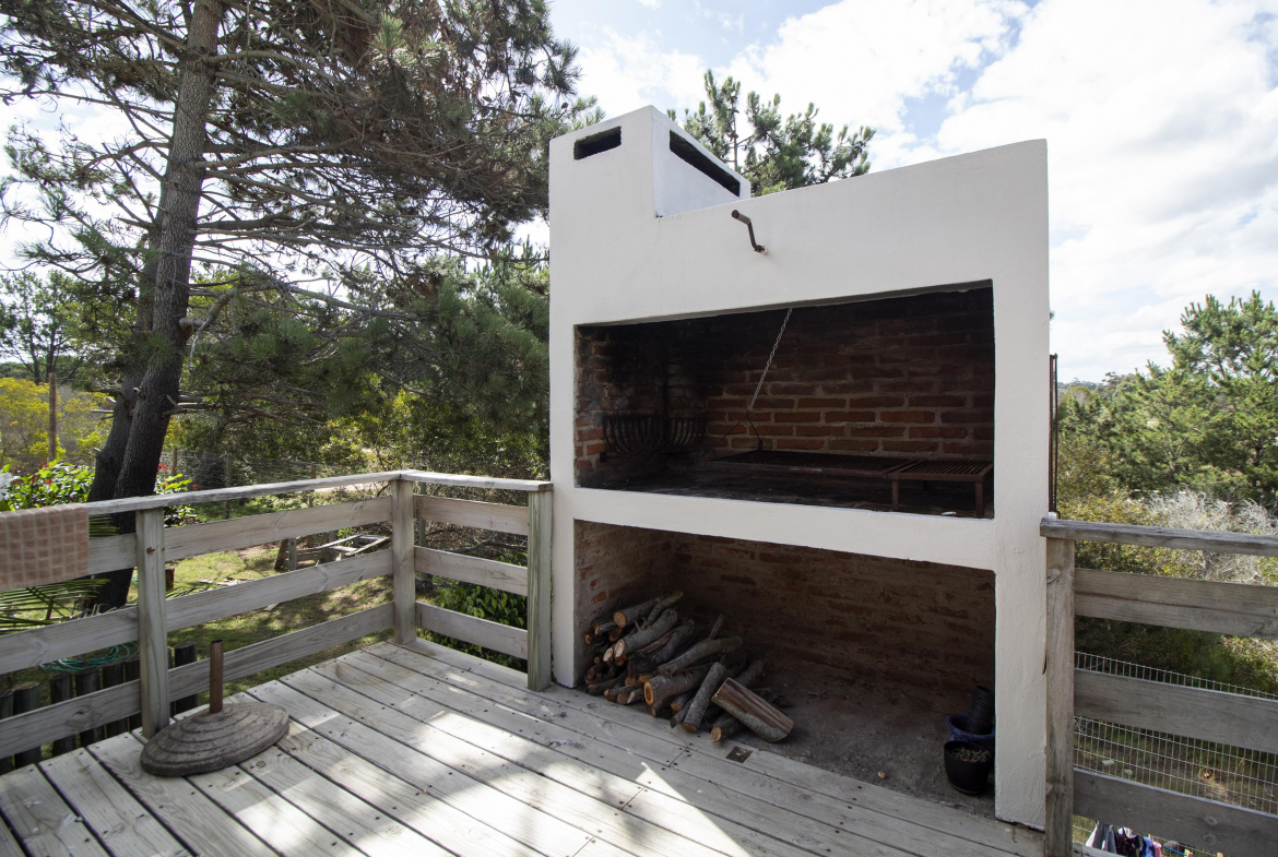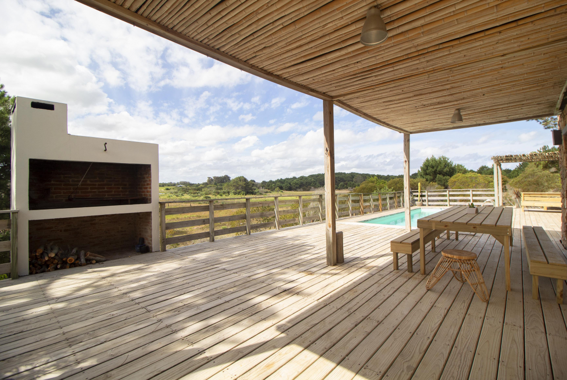 El exterior sin dudas es uno de los puntos más fuertes, por un lado la vegetación de árboles autóctonos le brinda sombra en algunos sectores y a su vez un gran deck con parrillero y pérgola que cubre una mesa de comedor, acompañan a la piscina. Desde este sector de la casa, se puede contemplar la muy linda vista a las chacras y lagos cercanos.