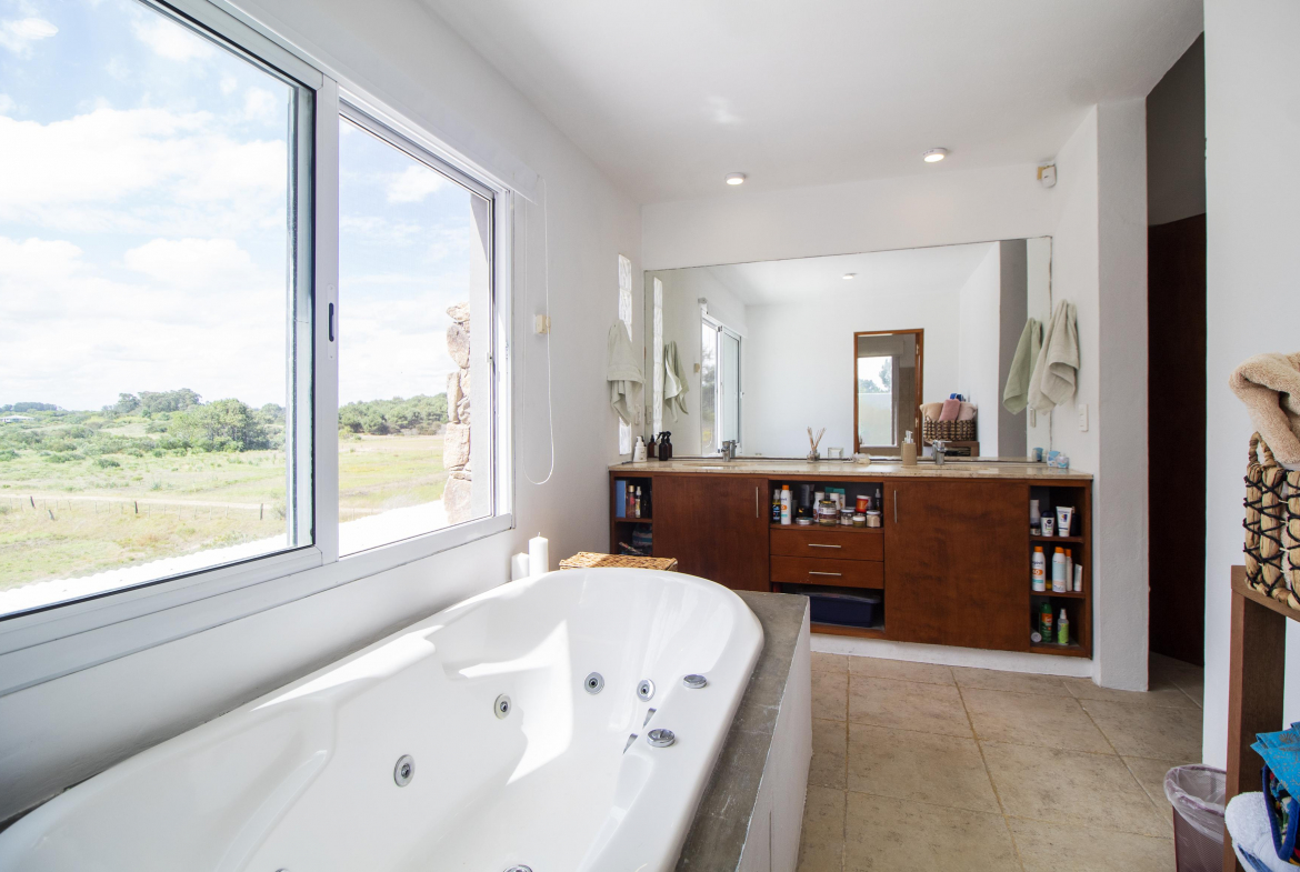 Muy linda casa, rodeada de un entorno natural y de vistas poco conocidas en la zona este de José Ignacio. Posee 3 dormitorios uno de ellos en planta baja, como también el living, comedor y cocina súper equipada. En planta alta, tenemos un escritorio y los restantes dos dormitorios, uno de ellos pertenece a la máster suite, Diseñada en un espacio integrado de dormitorio y amplio toilette con bañera, quedando la ducha y el resto del baño independiente.