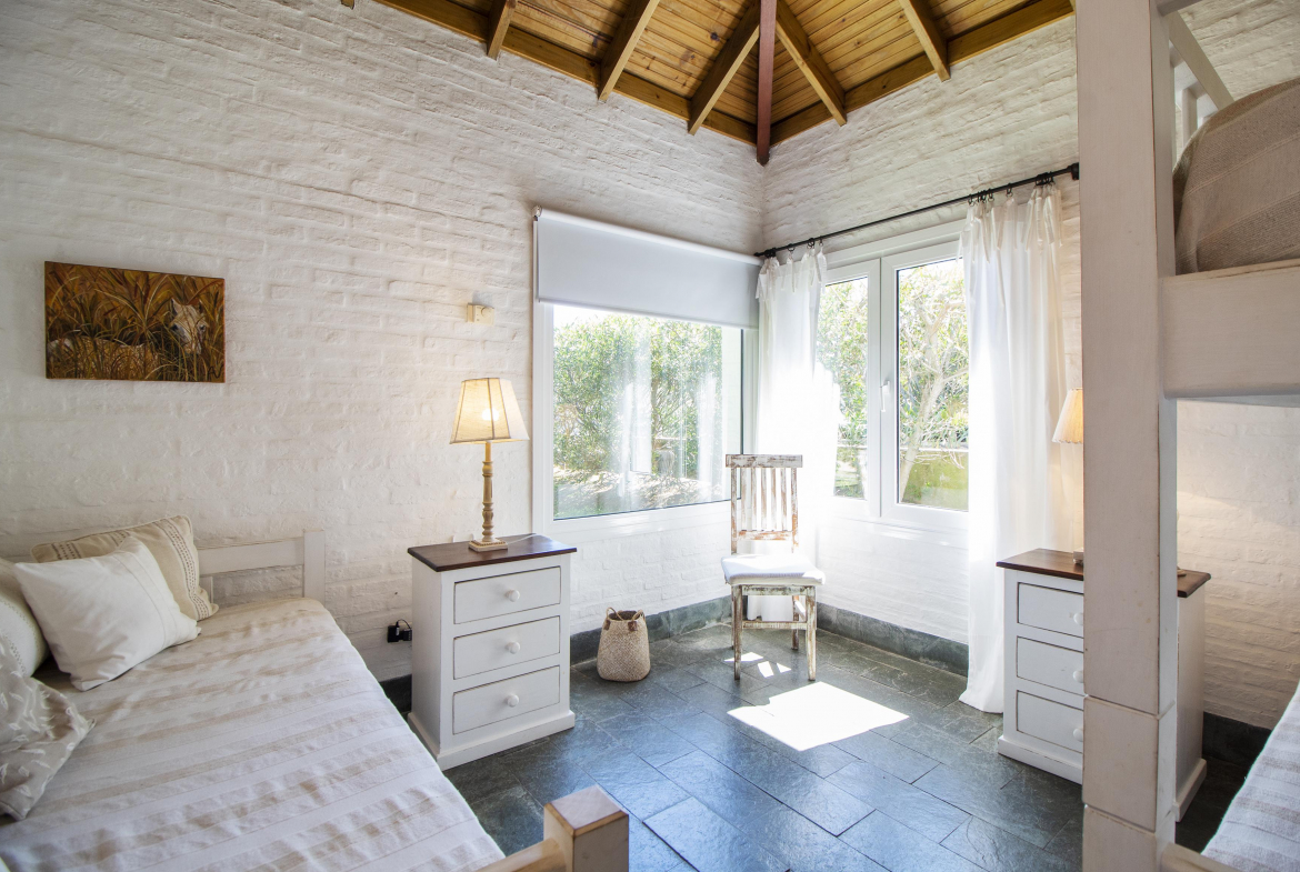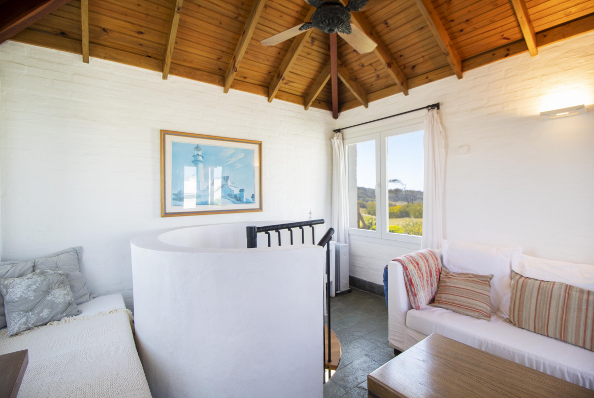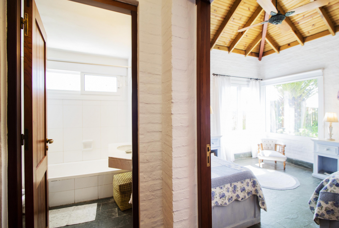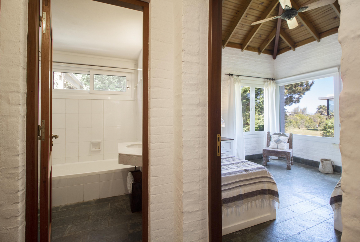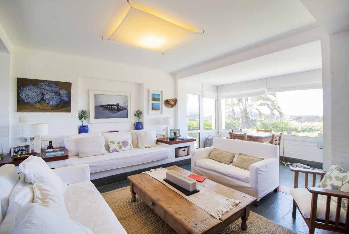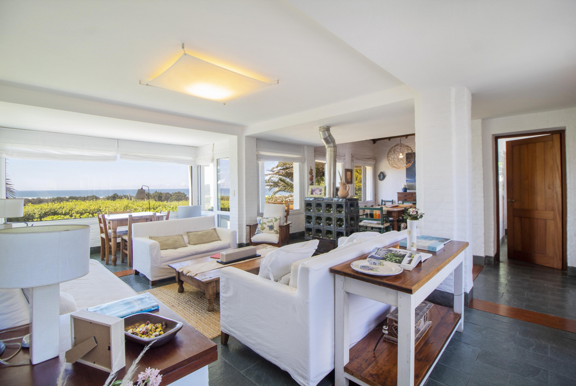 En la parte mas alta del Club, con excelente vista a la playa brava, se encuentra esta propiedad desarrollada casi en su totalidad en planta baja.