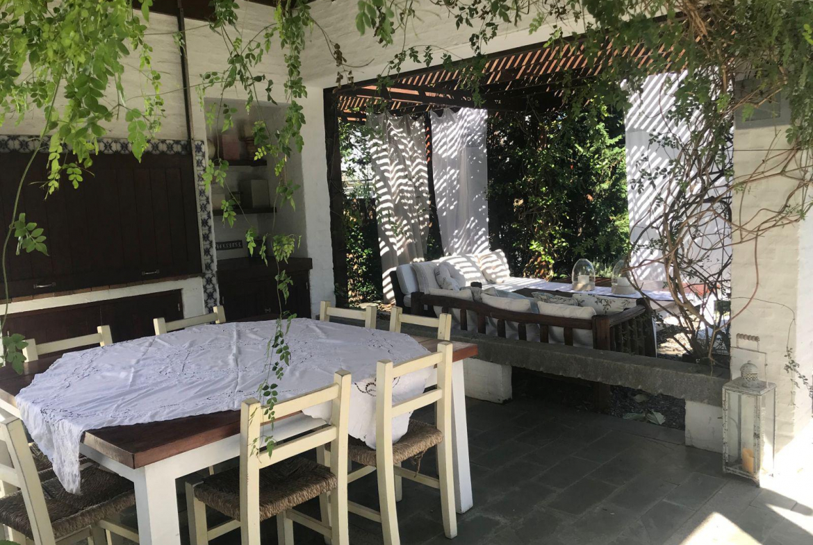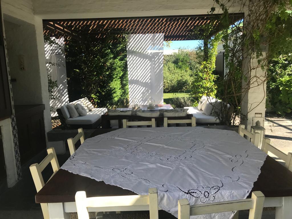Hermoso y acogedor jardin nos dan la bienvenida a la casa, parrilla cubierta con living exterior.