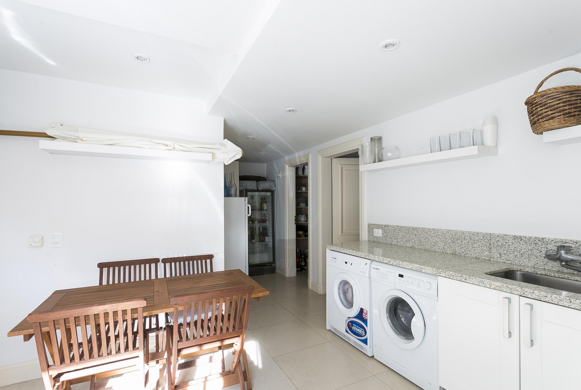 Cocina totalmente definida, con lavadero equipado de primera y alacena. Junto a ésta se encuentra una dependencia de servicios con habitacion, baño completo y comedor.