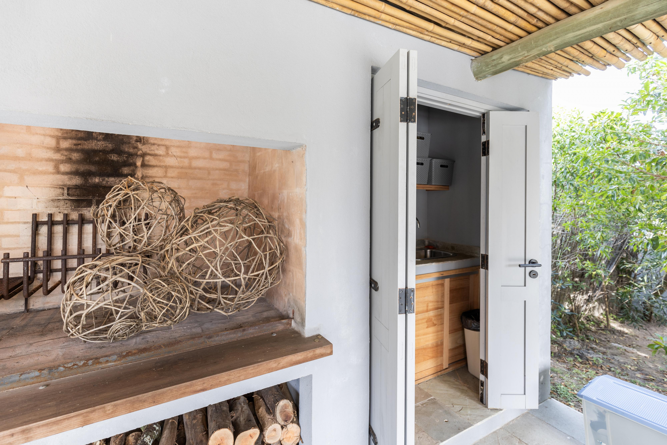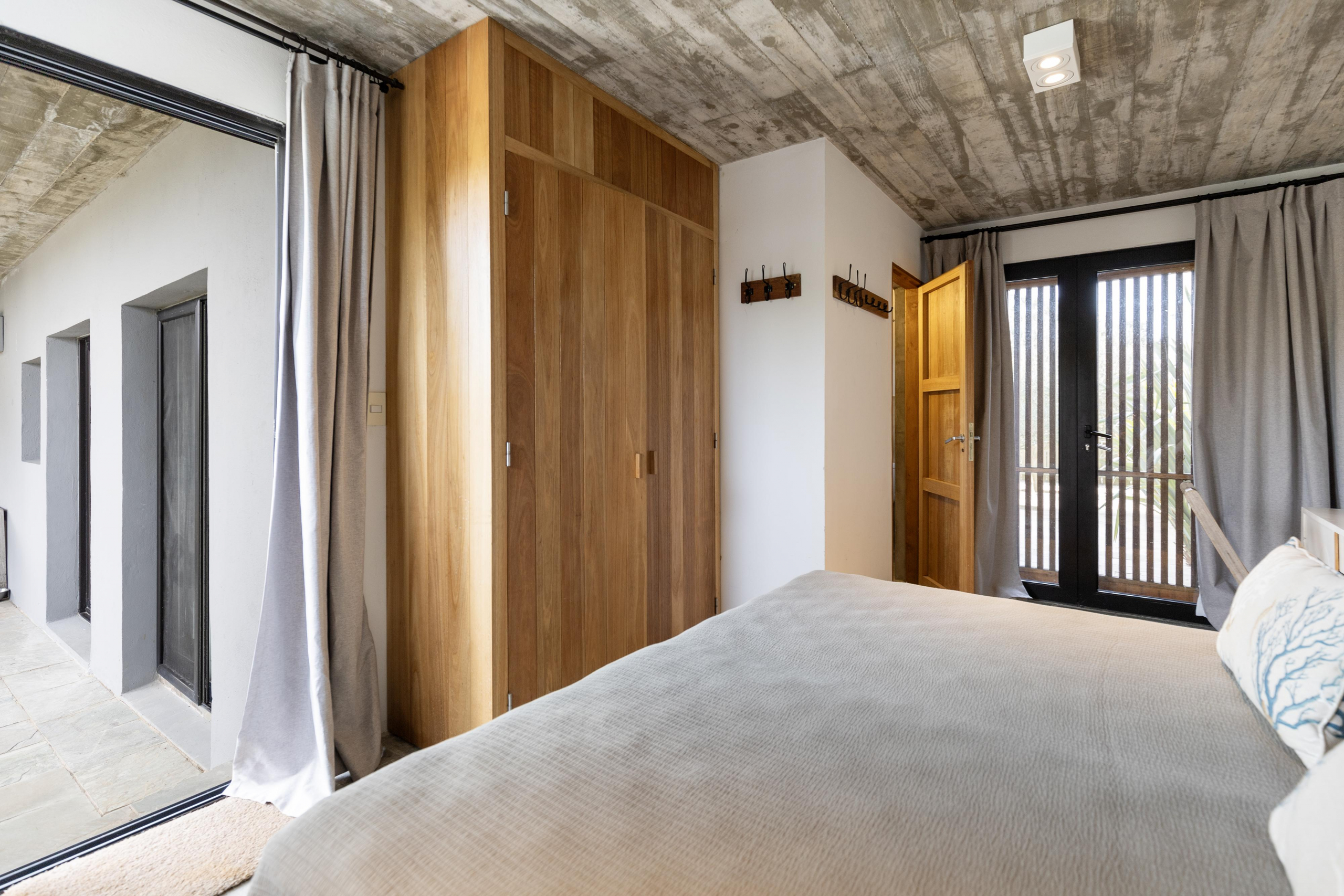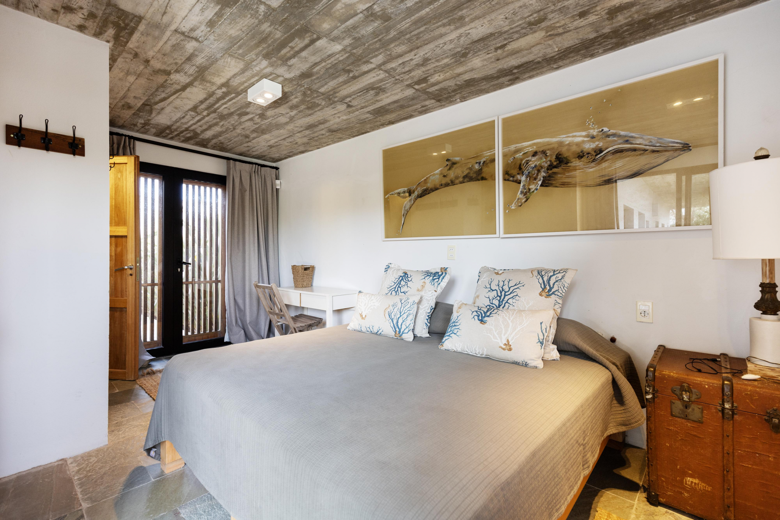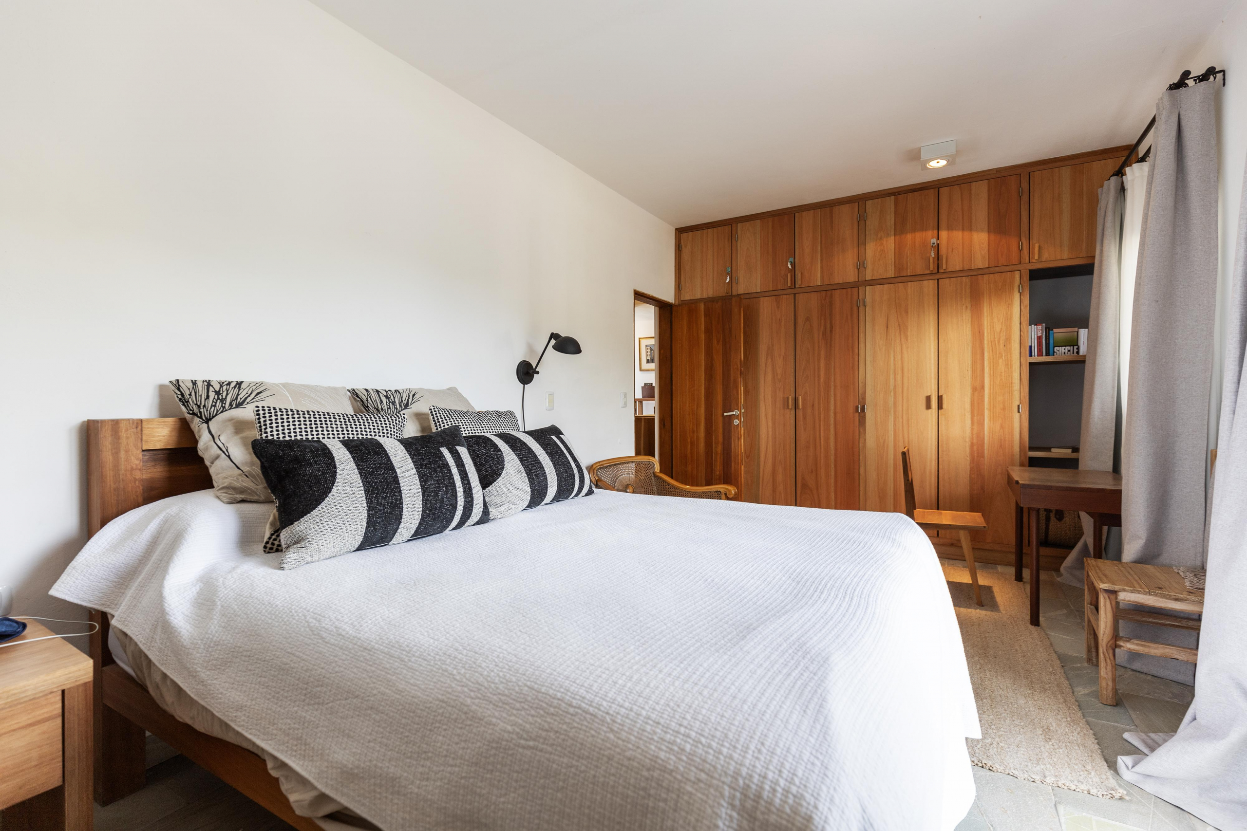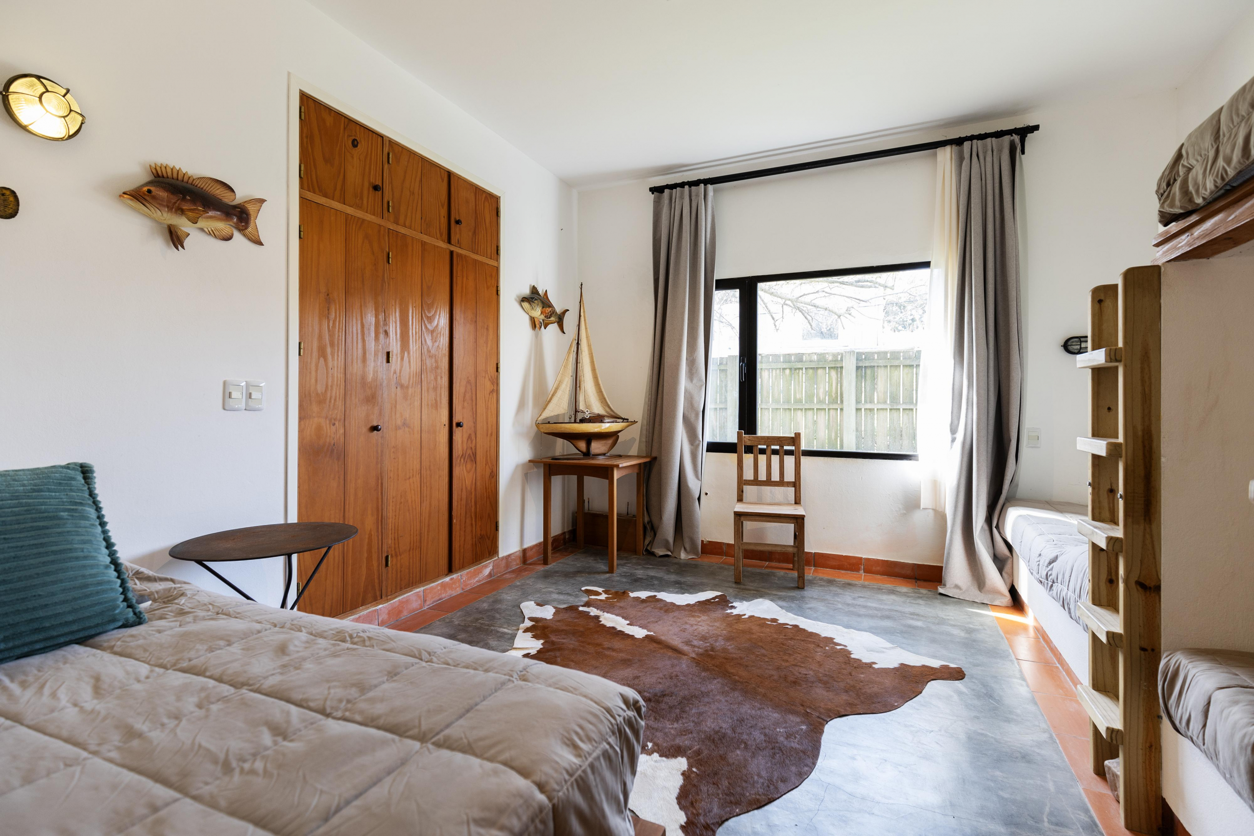 Two bedrooms in semi suite, master suite and dependence or small guest bedroom. Upstairs, living room, kitchen dining room and living room with TV corner. Covered veranda, with outdoor table, overlooking the mansa. Staircase that connects the outside to the garden and pool. Intimate and cozy house, fully fenced.