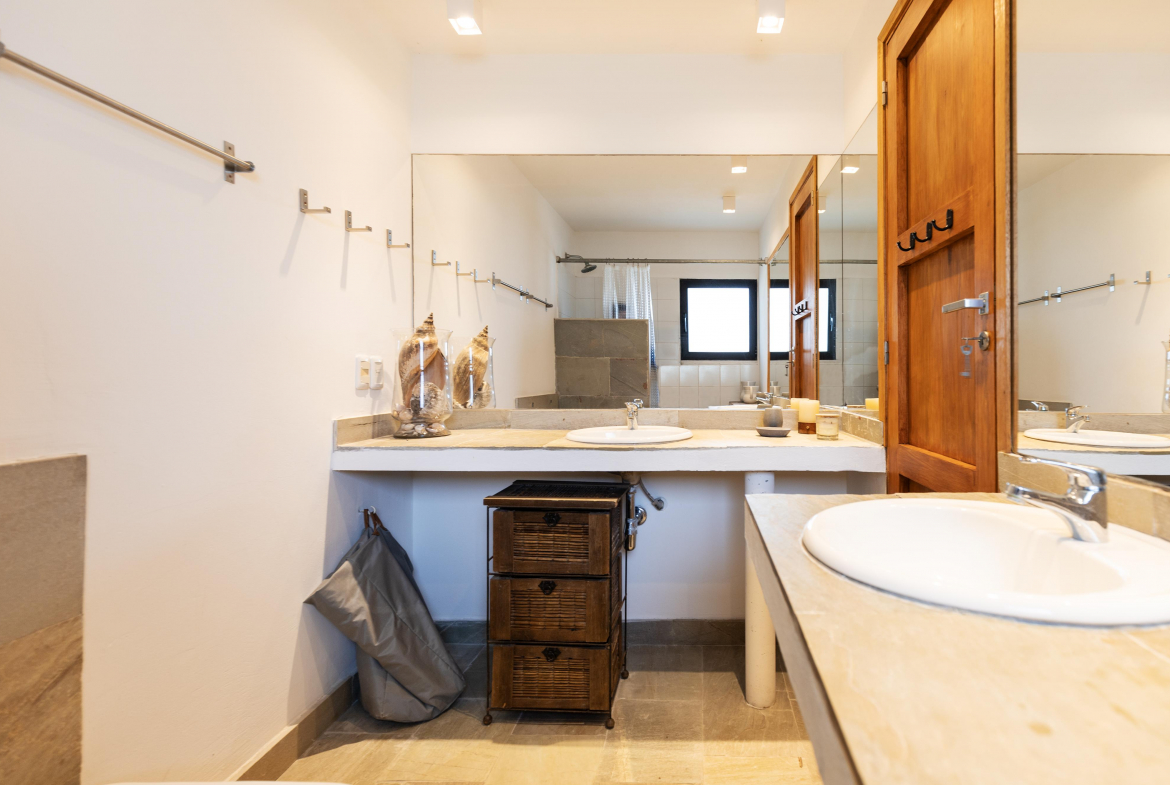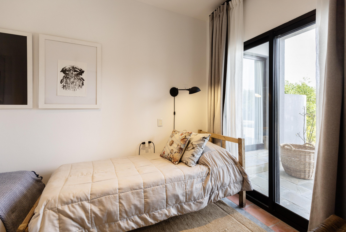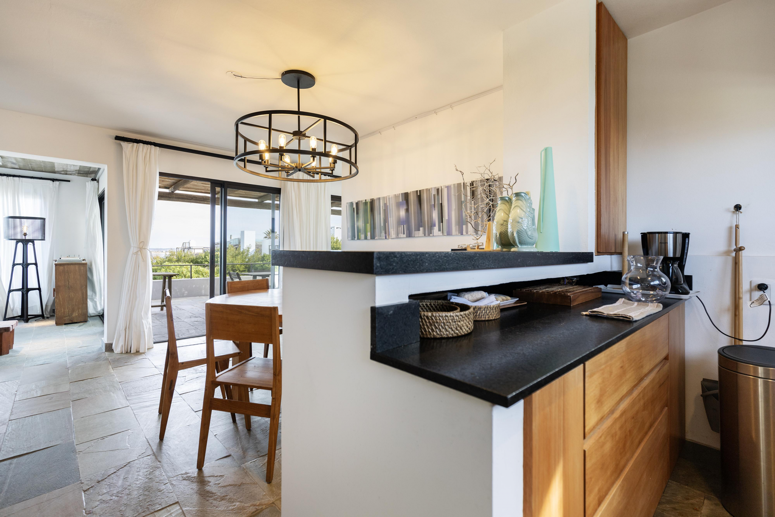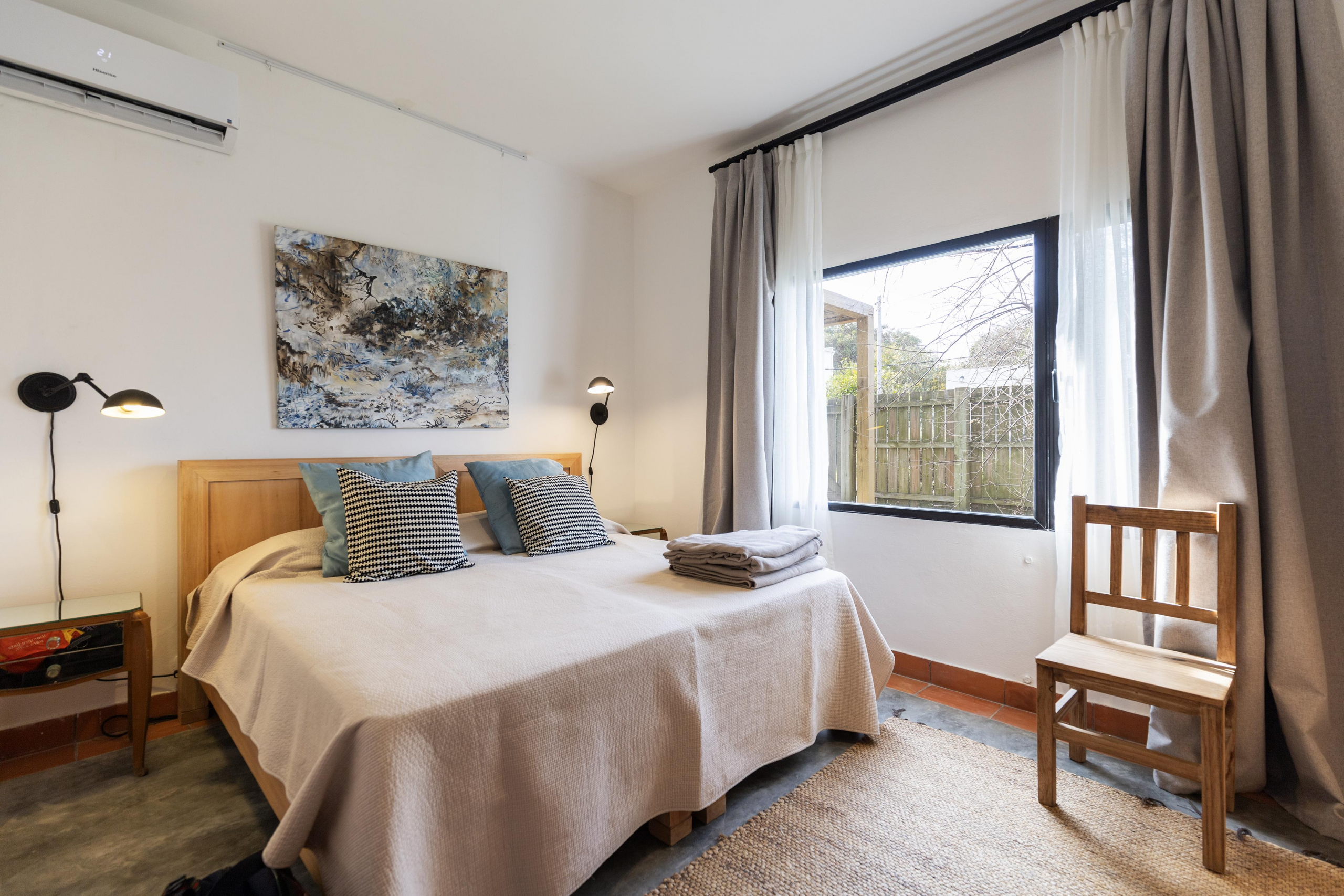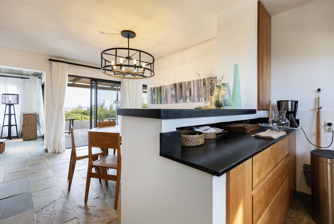 Two bedrooms in semi suite, master suite and dependence or small guest bedroom. Upstairs, living room, kitchen dining room and living room with TV corner. Covered veranda, with outdoor table, overlooking the mansa. Staircase that connects the outside to the garden and pool. Intimate and cozy house, fully fenced.