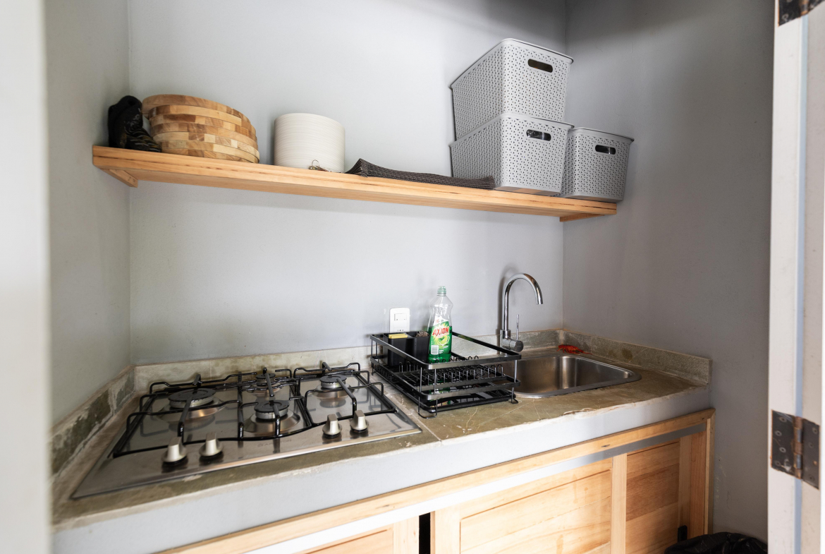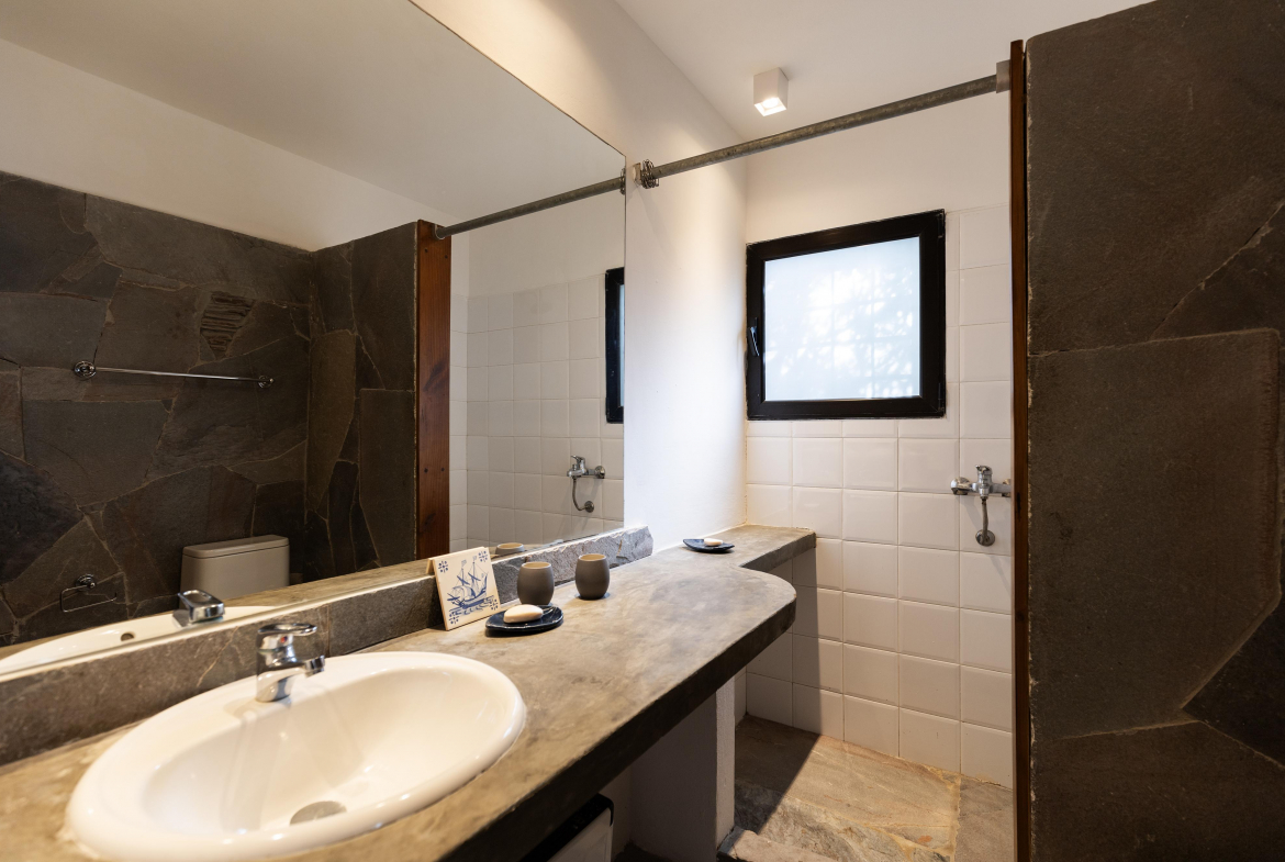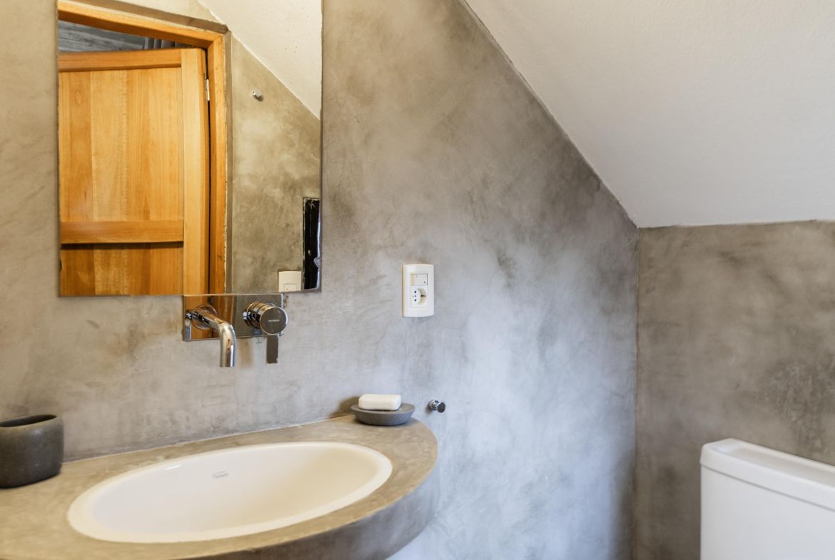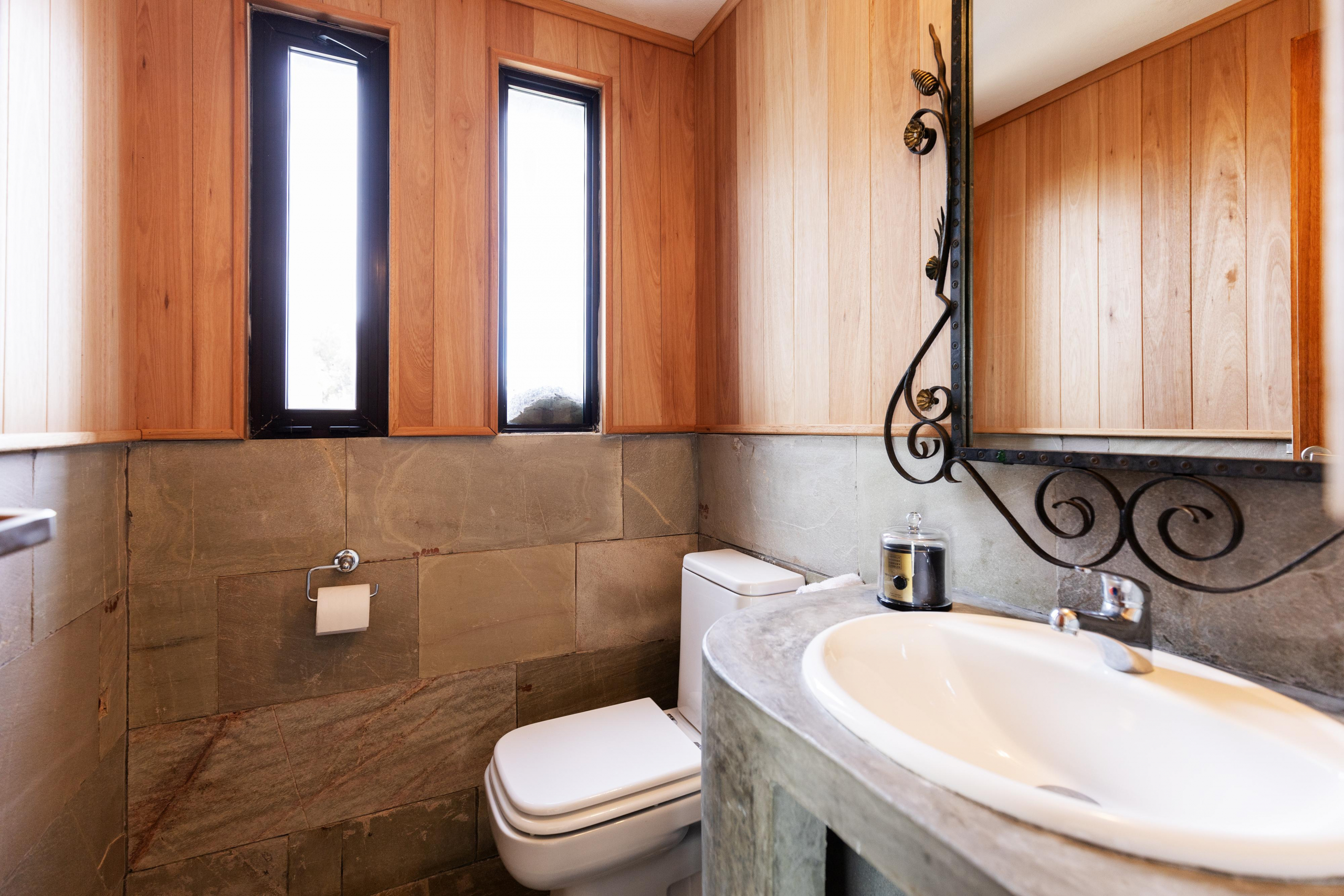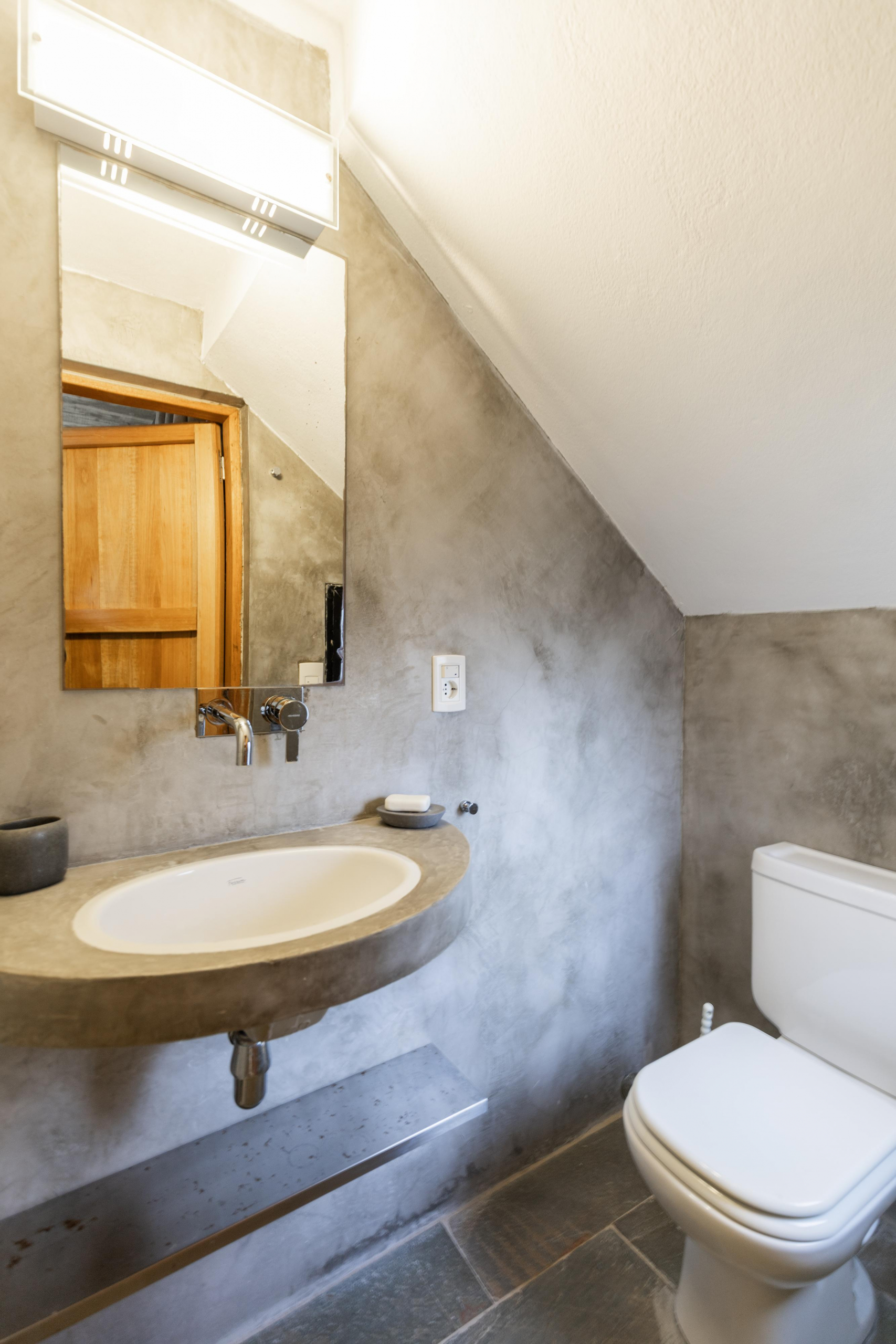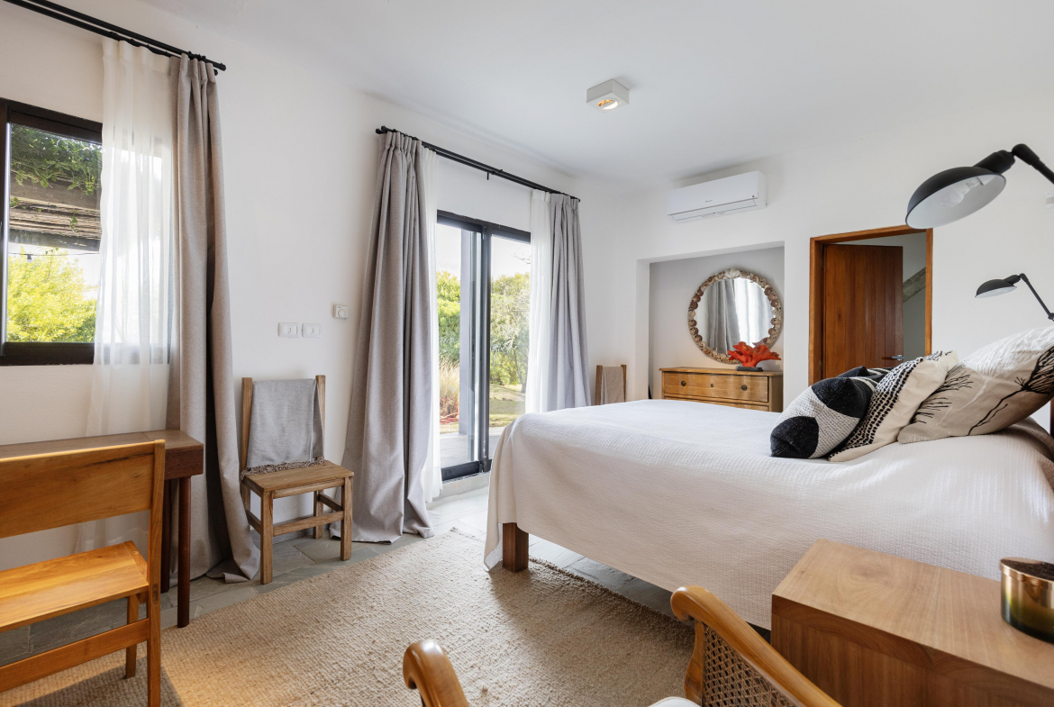 Two bedrooms in semi suite, master suite and dependence or small guest bedroom. Upstairs, living room, kitchen dining room and living room with TV corner. Covered veranda, with outdoor table, overlooking the mansa. Staircase that connects the outside to the garden and pool. Intimate and cozy house, fully fenced.